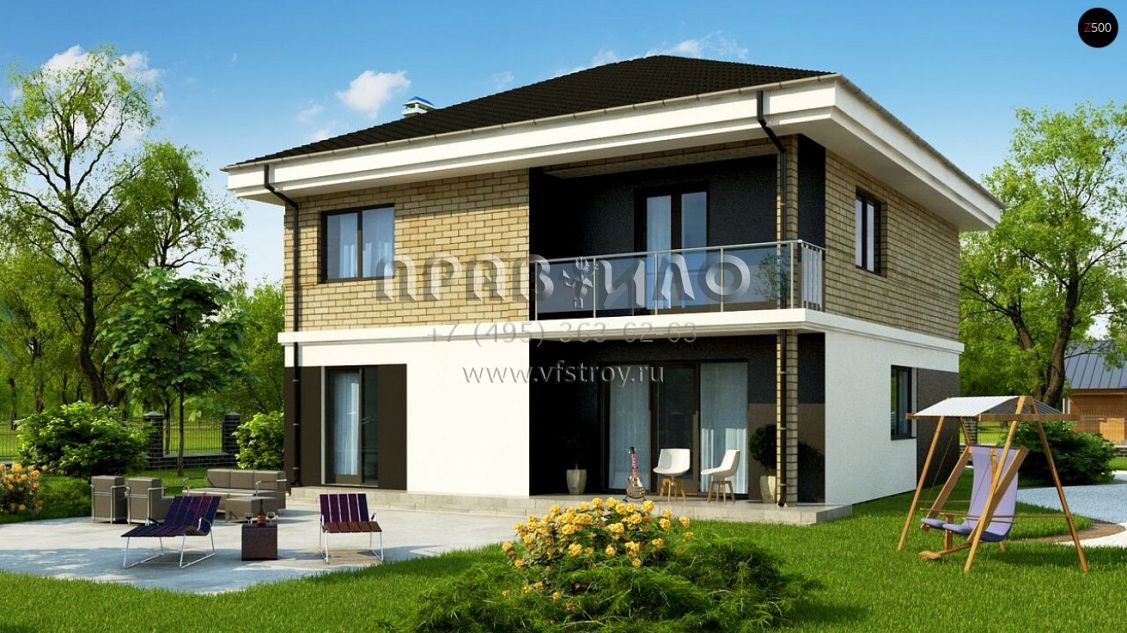 Проект двухэтажного дома с современным дизайном и удобной внутренней планировкой S3-170-5 (Zz1 a)