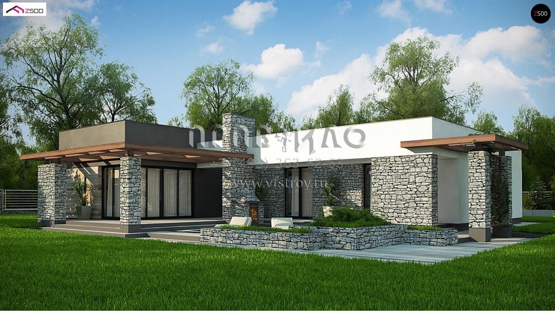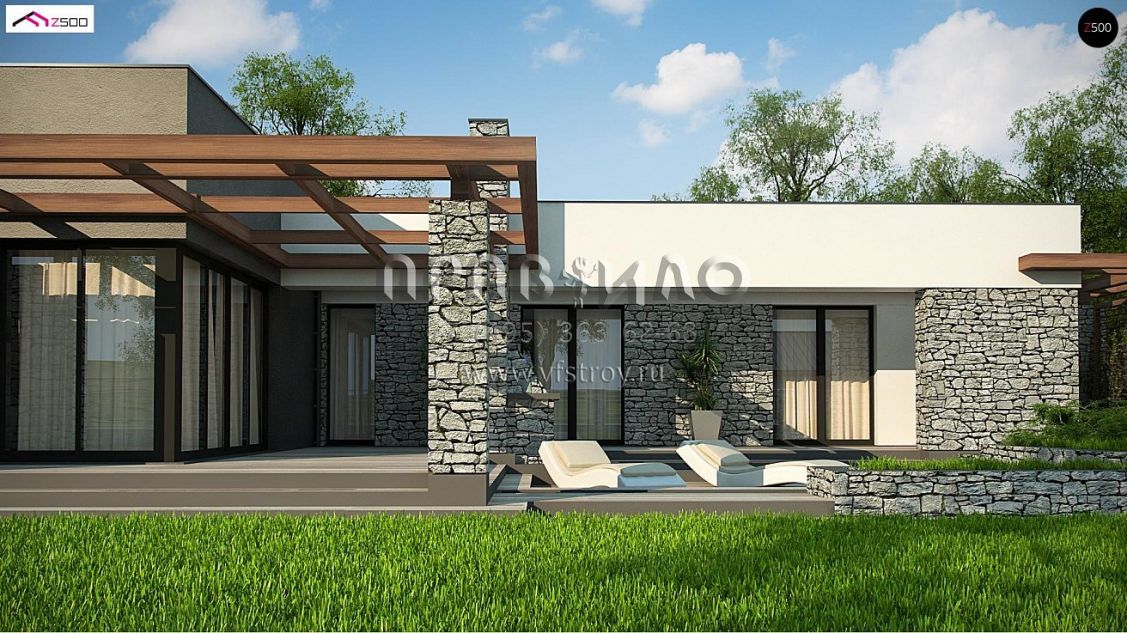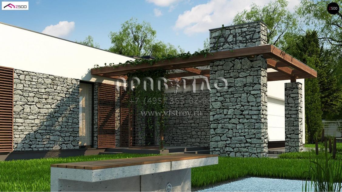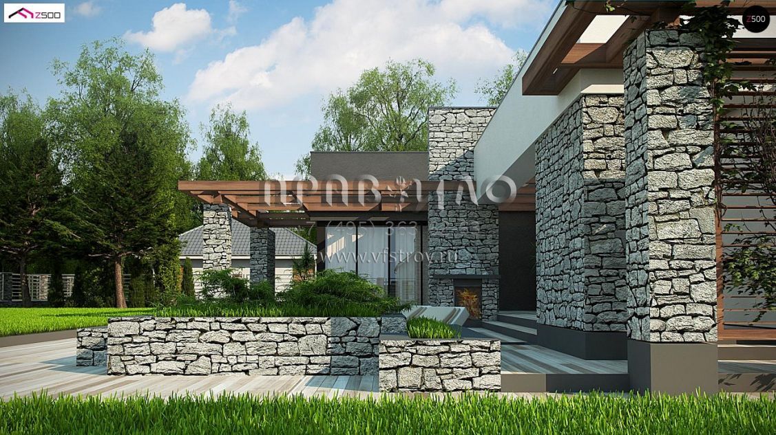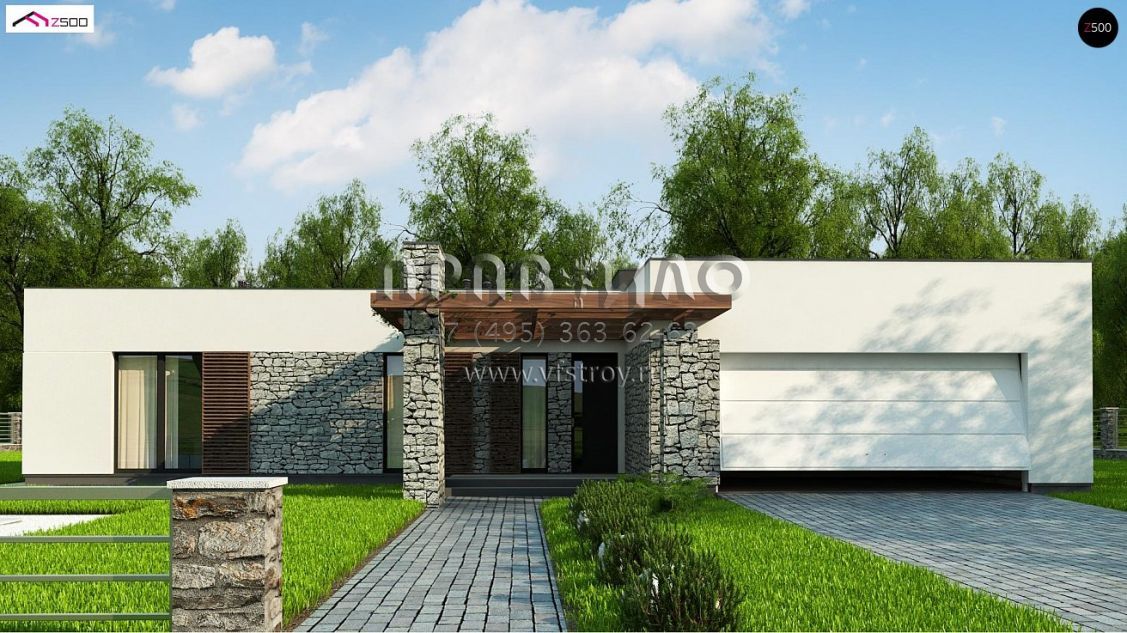Проект современного одноэтажного дома с большим гаражом и с внешним камином S3-171-4 (Zx137)