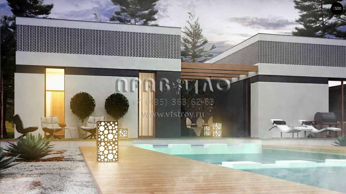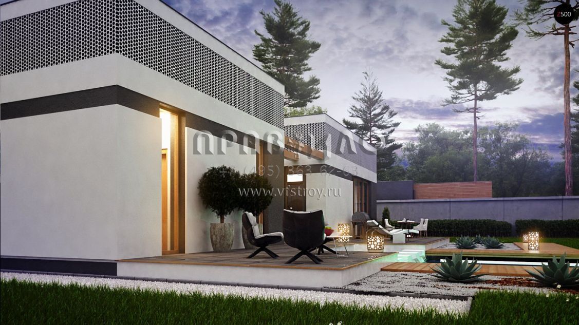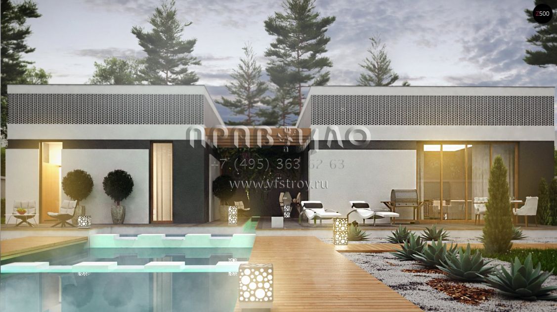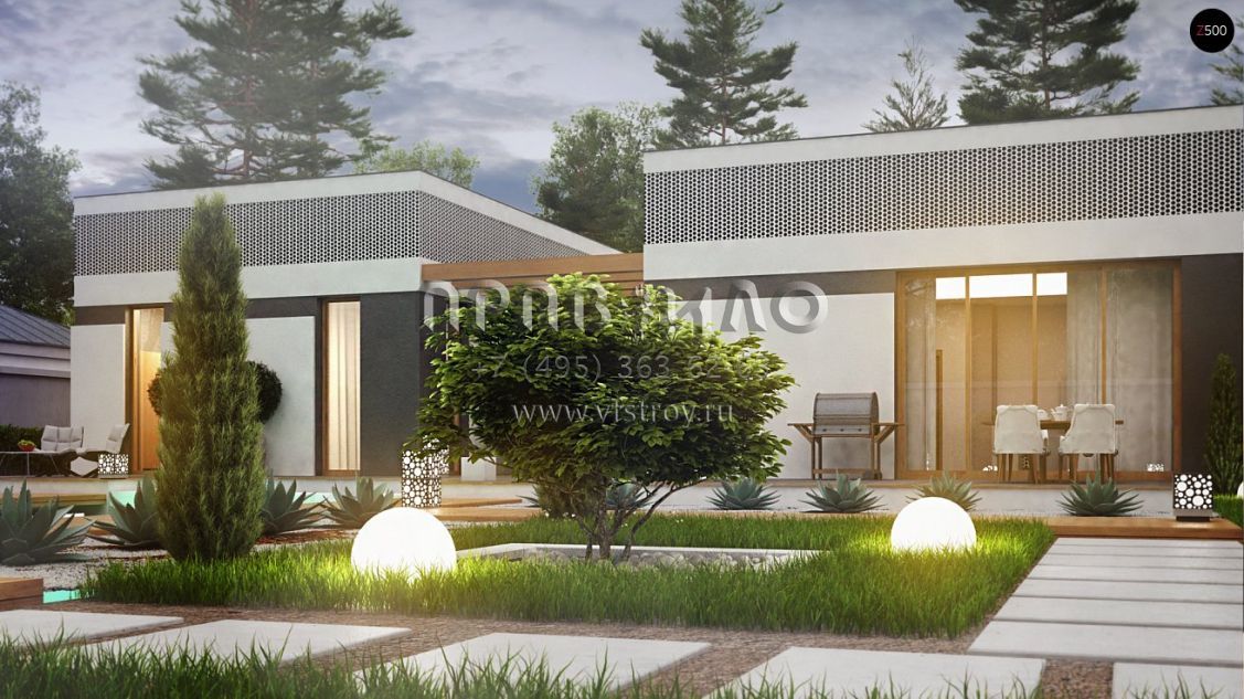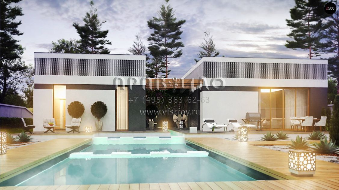 Проект одноэтажного дома П-образной формы в стиле хай-тек S3-172-2 (Zx119)