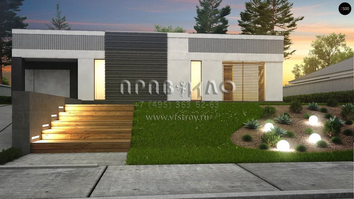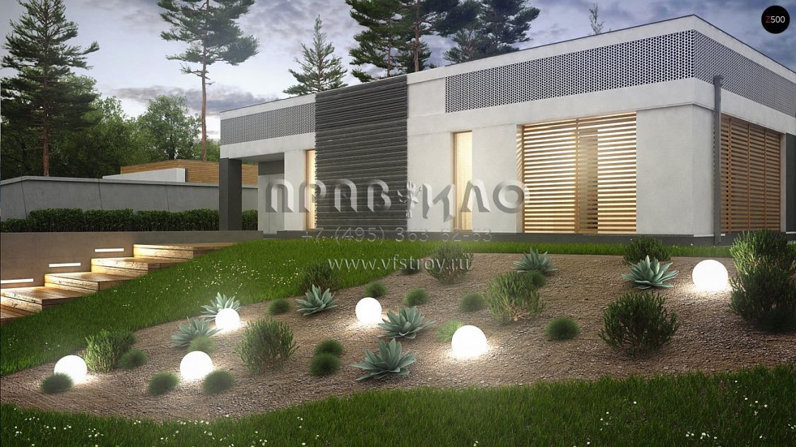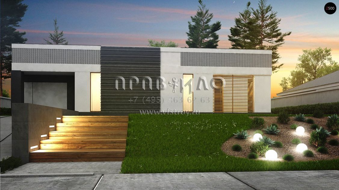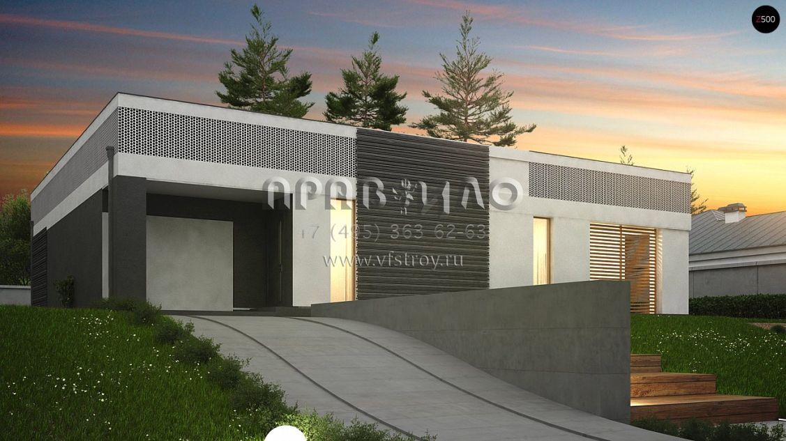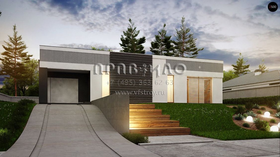 Проект одноэтажного дома П-образной формы в стиле хай-тек S3-172-2 (Zx119)
