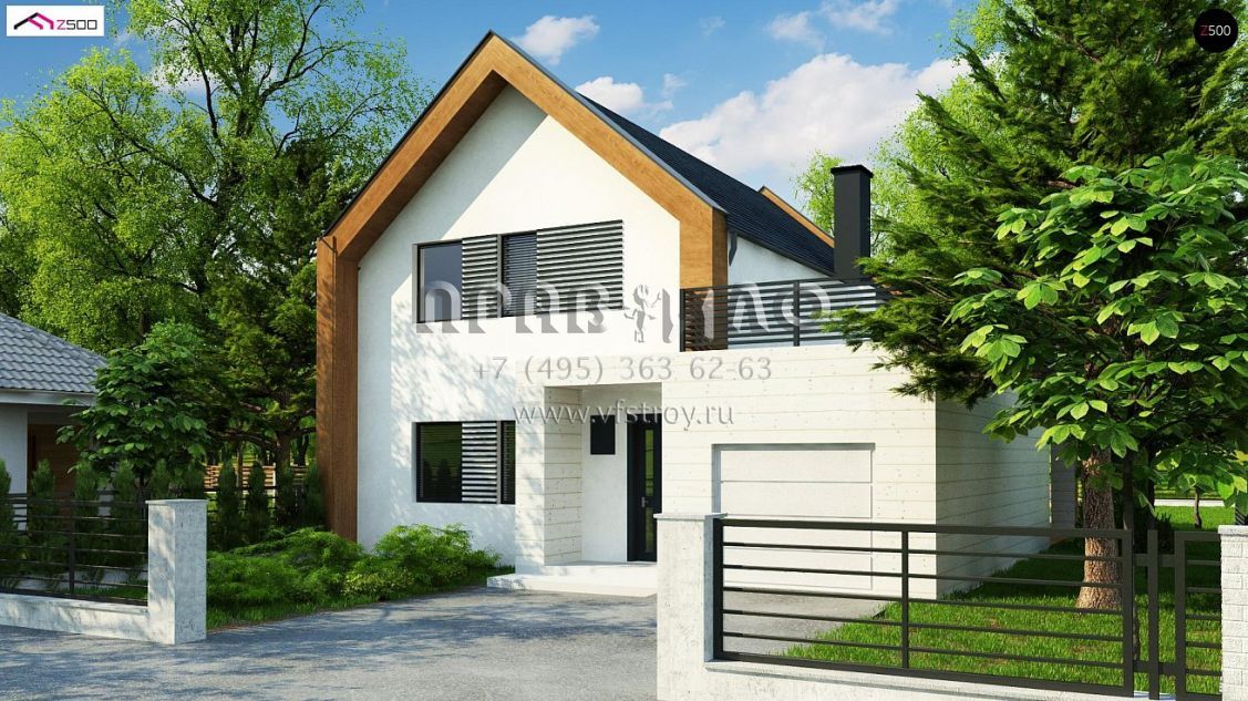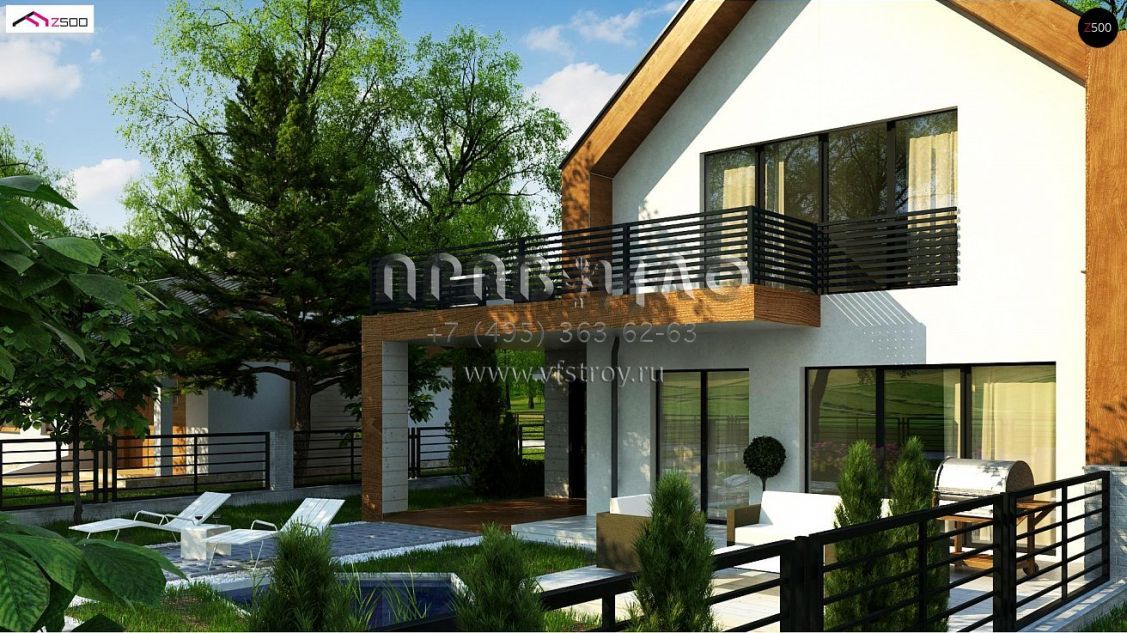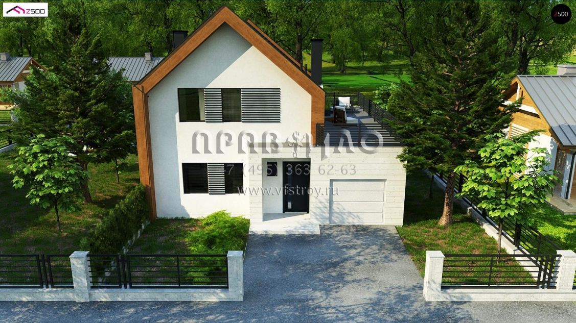 Проект современного двухуровневого коттеджа с пристроенным гаражом и террасой над ним S3-173-2 (Z424)