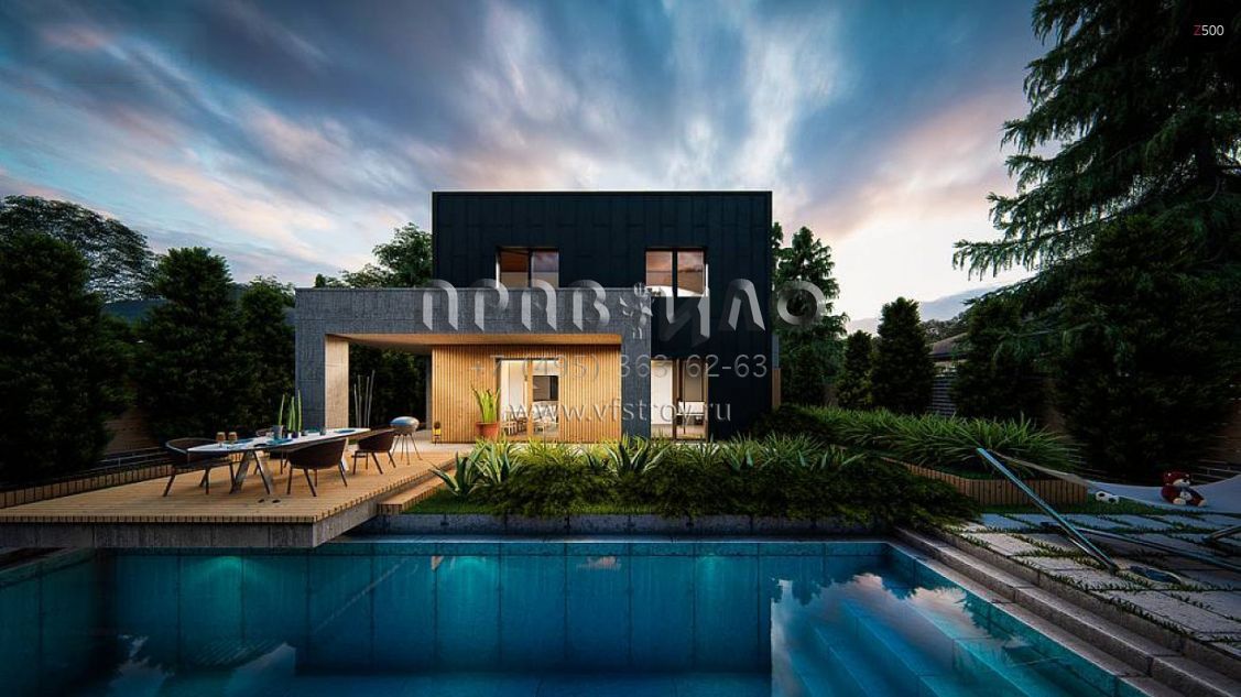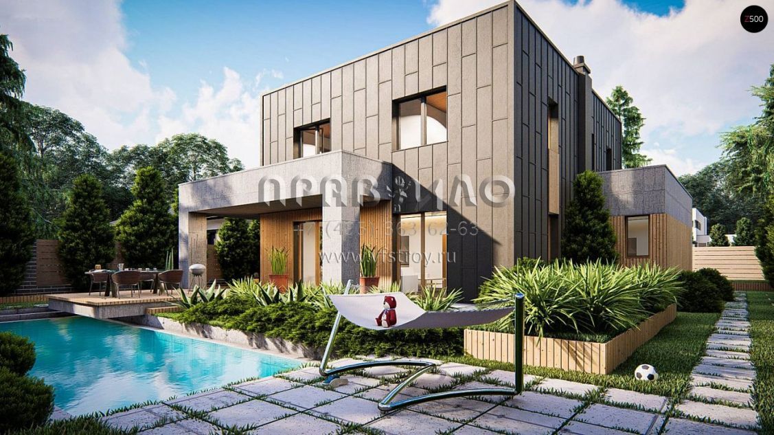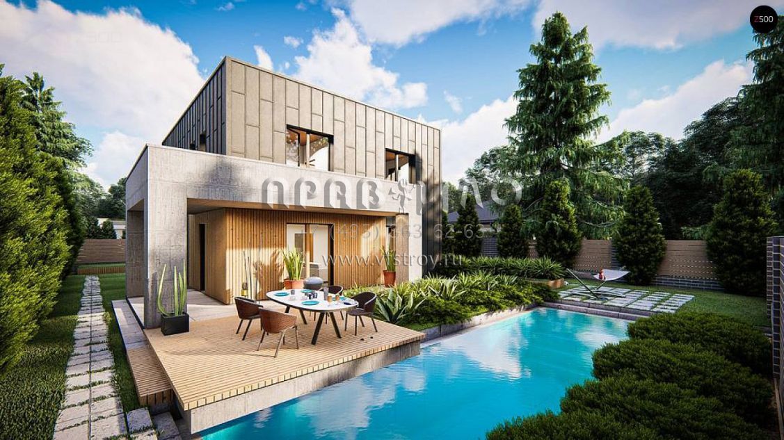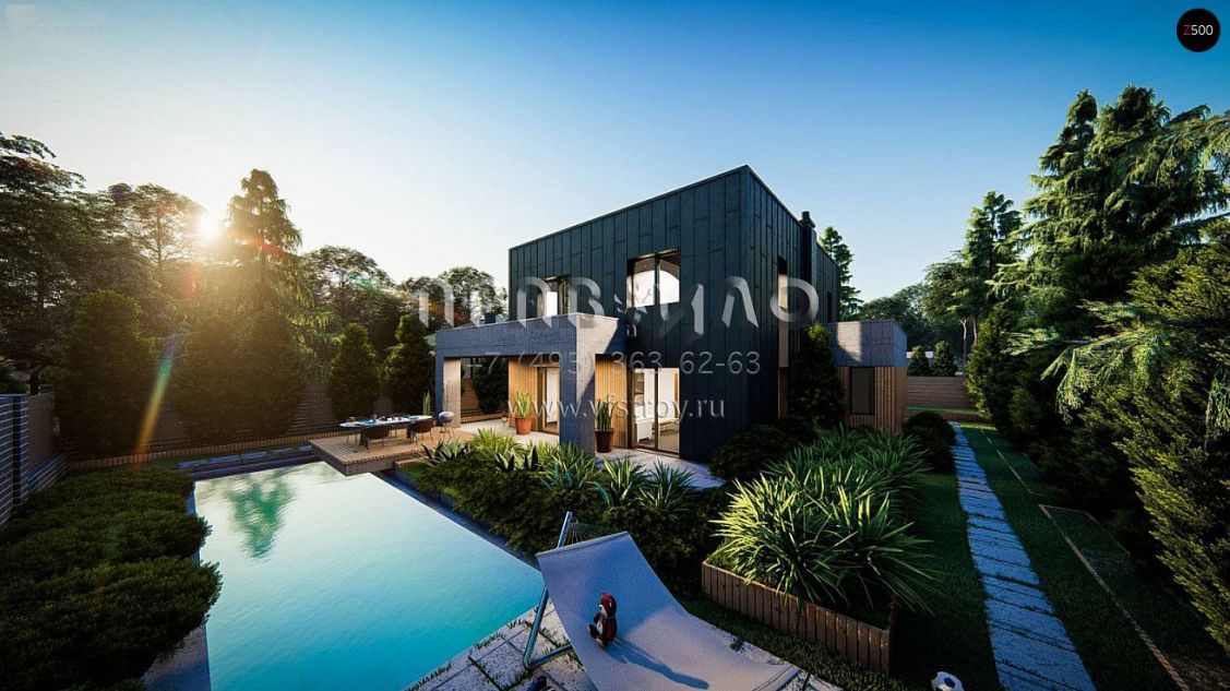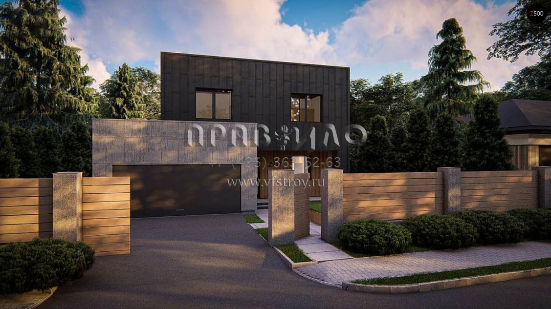 Проект двухэтажного дома в стиле хай-тек с четырьмя спальнями, гаражом и террасой S3-173-6 (zx171)