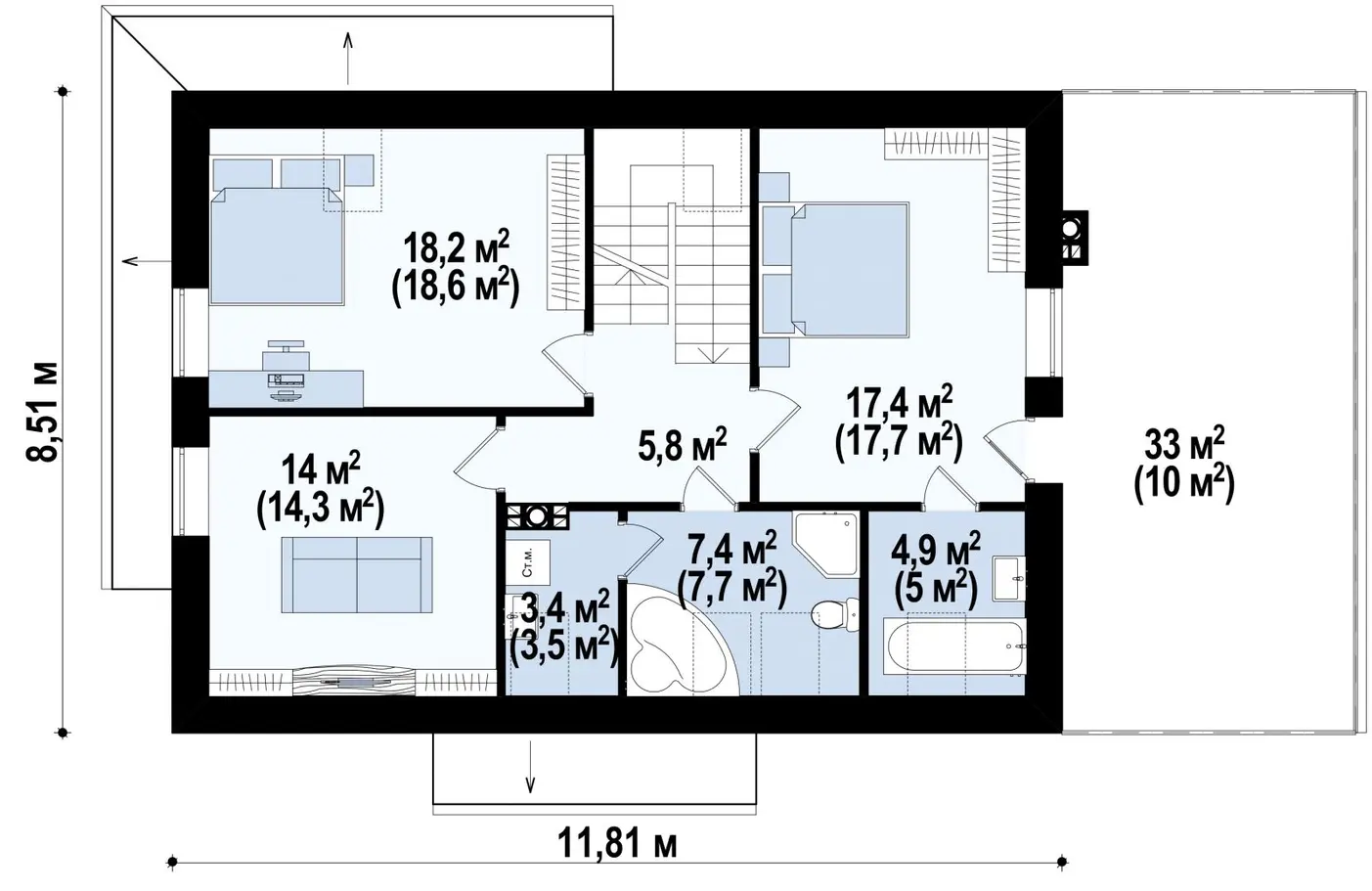 | Возможный материал кровли | металлочерепица, гибкая черепица, керамическая черепица, композитная черепица, цементно-песчаная черепица, фальцевая кровля |