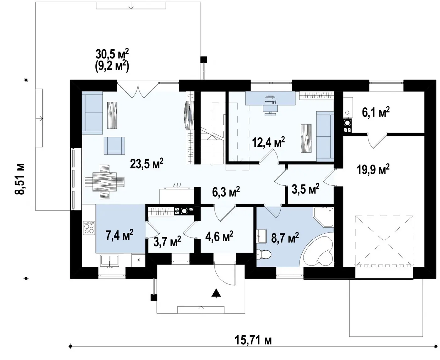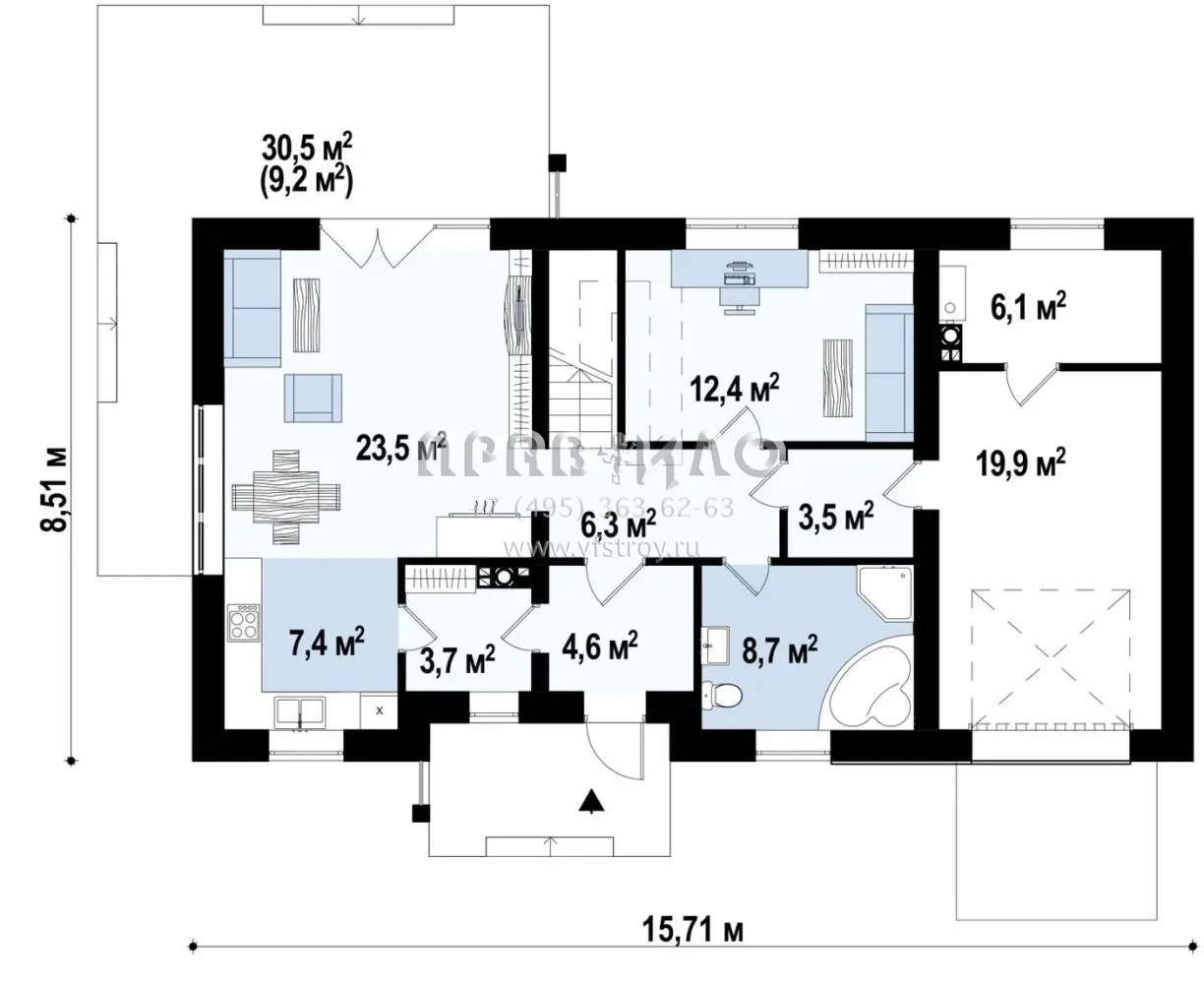 Проект дома с гаражом с правой стороны S3-174-1 (Z244 GP)