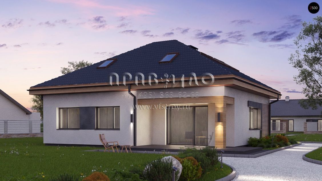 Проект одноэтажного дома с мансардным этажом и с крытой террасой S3-177-3 (Z273 Ph+ st)