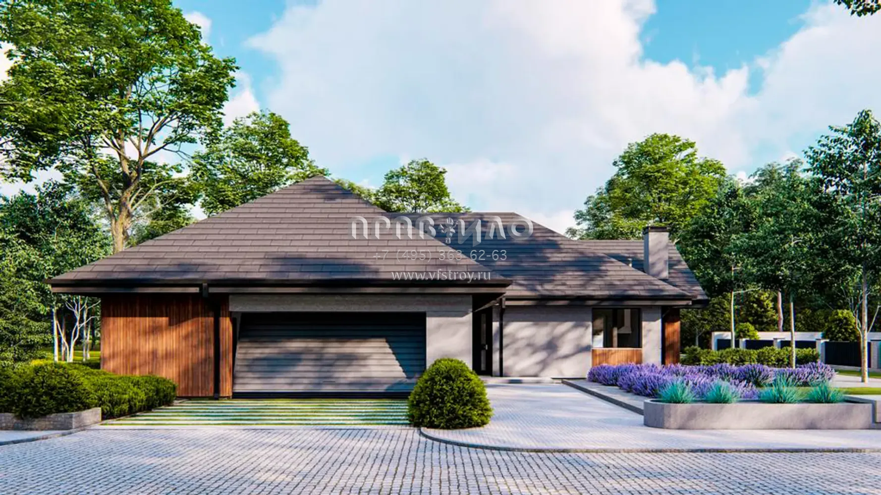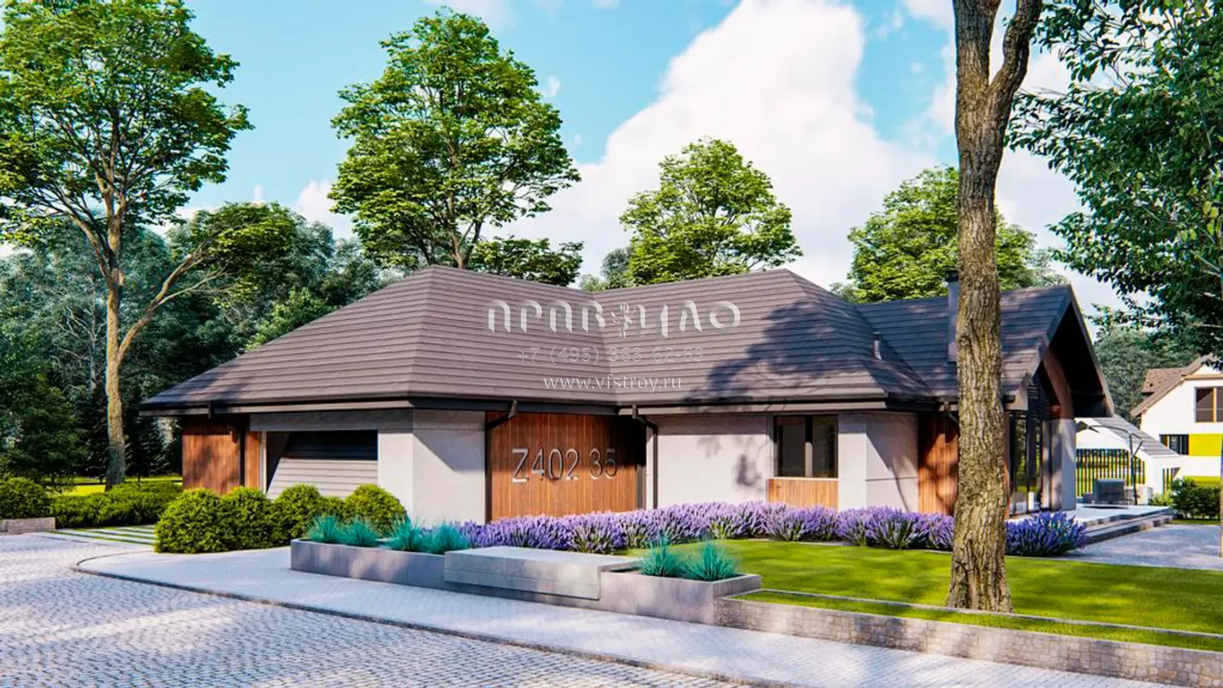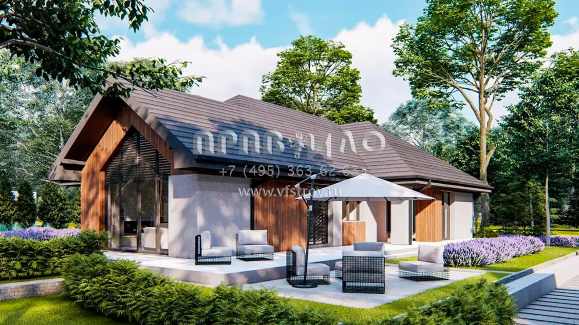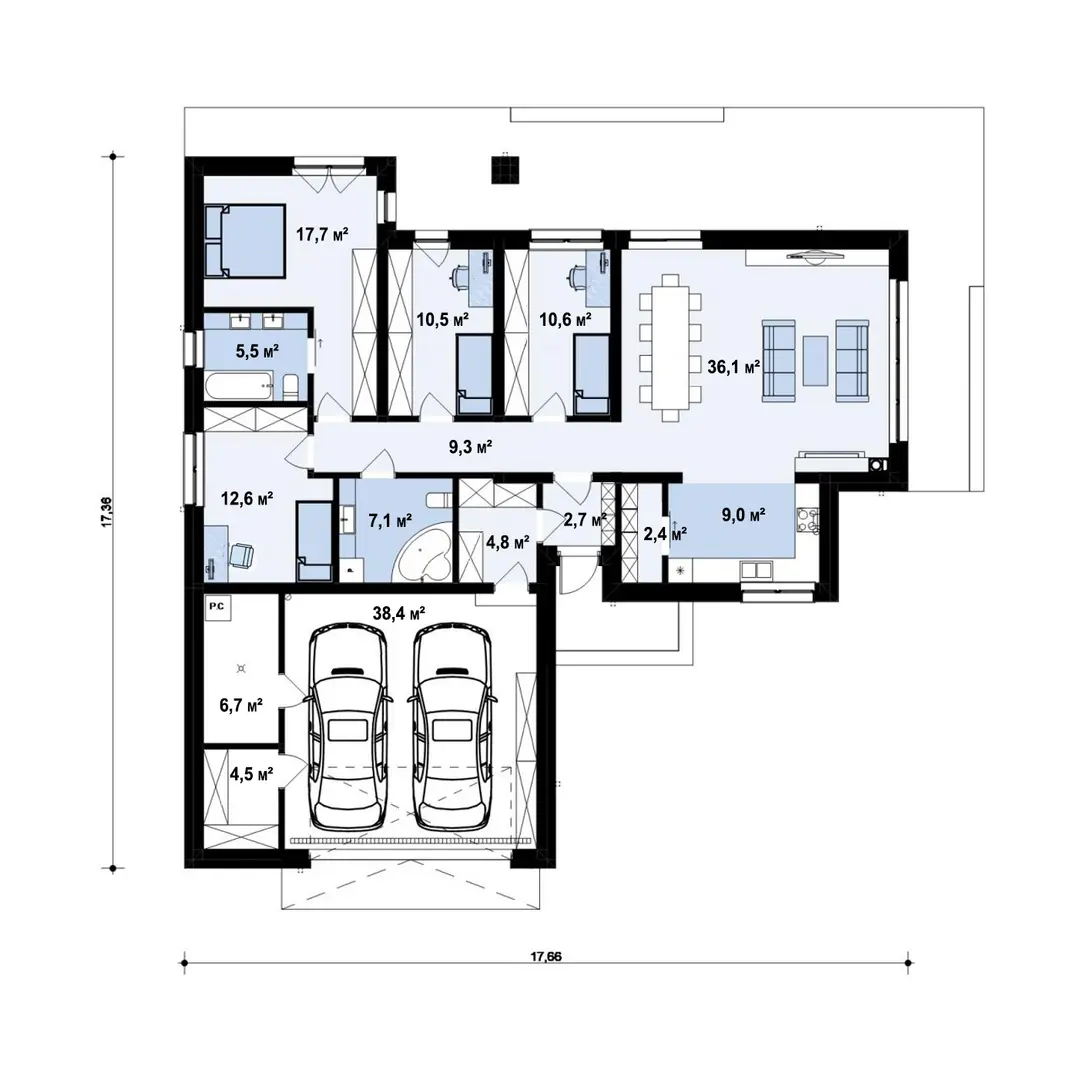 Проект одноэтажного дома с гаражом на 2 машины и 4 спальнями S3-178 (Z402 35)