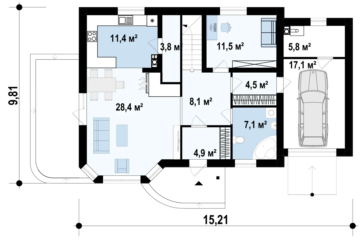 Проект современного функционального дома с камином S3-179-3 (Z117)