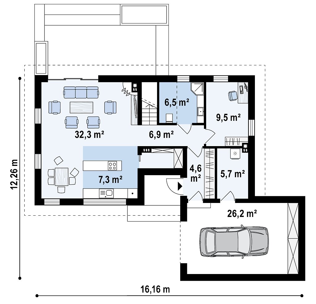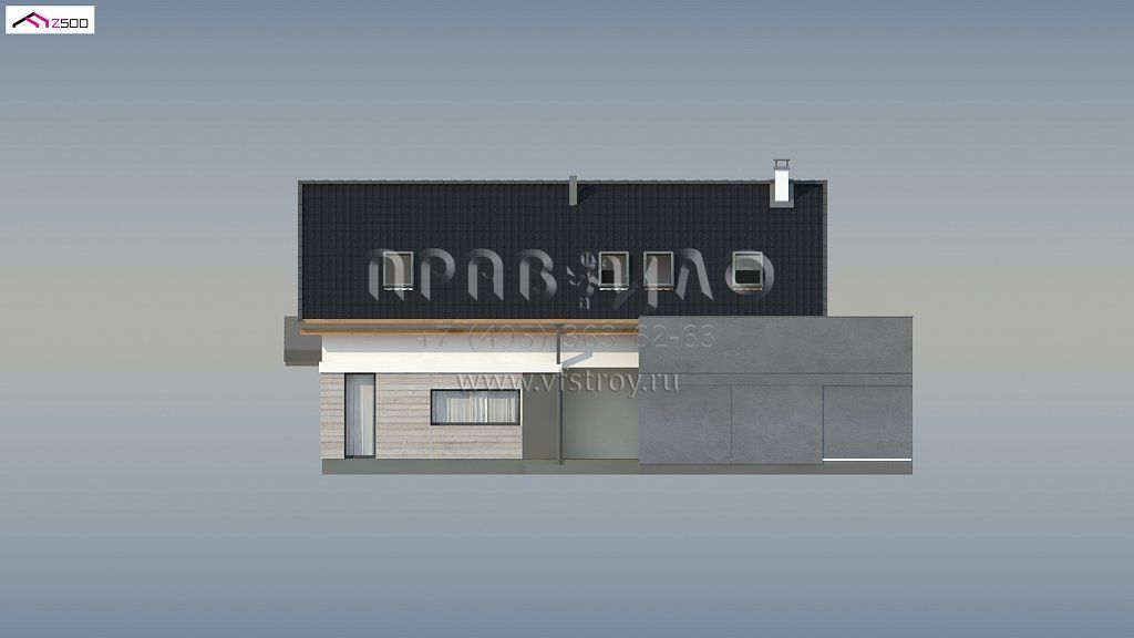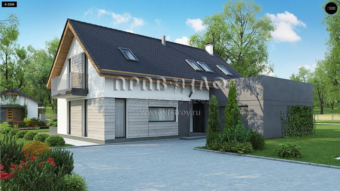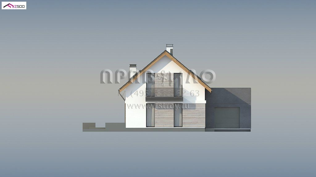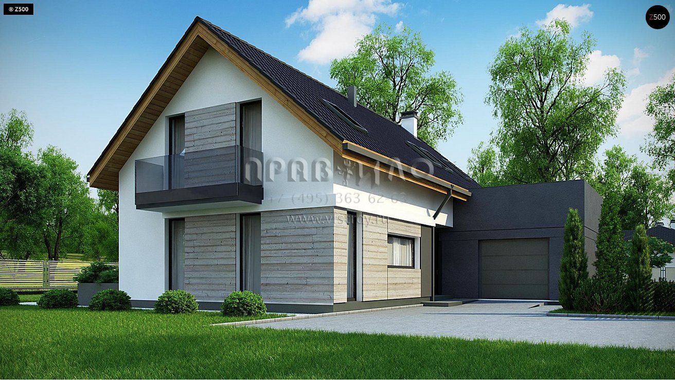 Проект мансардного коттеджа с пристроенным гаражом на один автомобиль S3-179-6 (Z370)