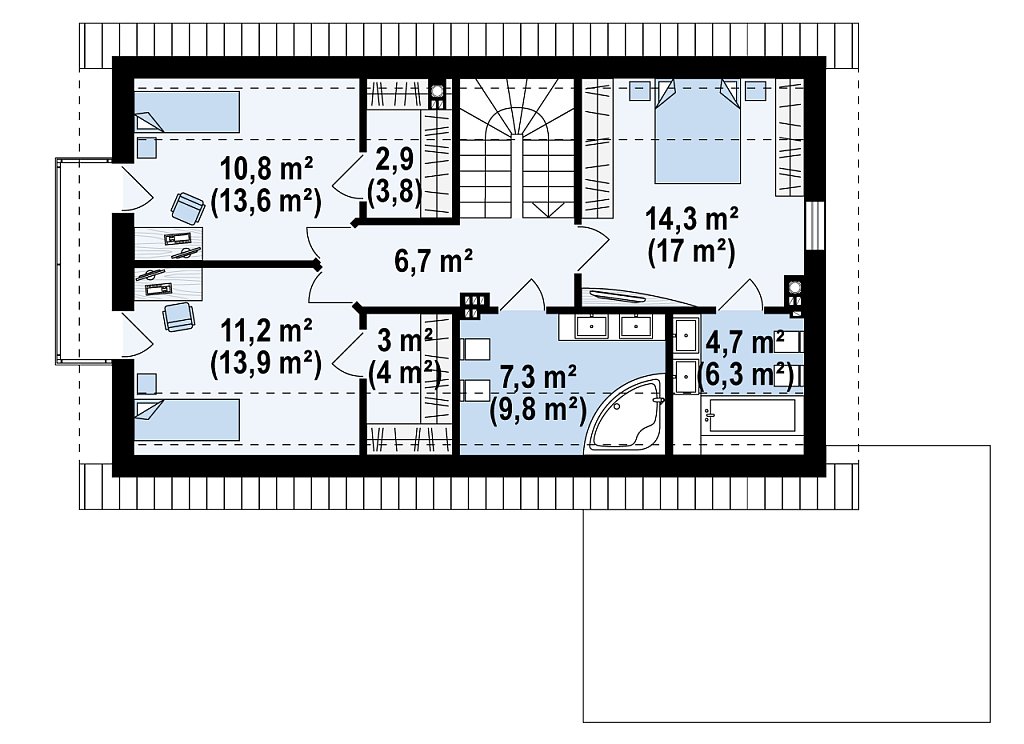 | Возможный материал кровли | металлочерепица, гибкая черепица, керамическая черепица, композитная черепица, цементно-песчаная черепица, фальцевая кровля |