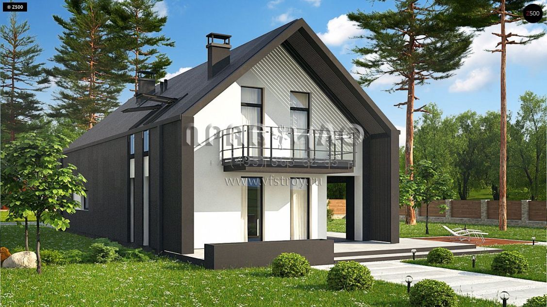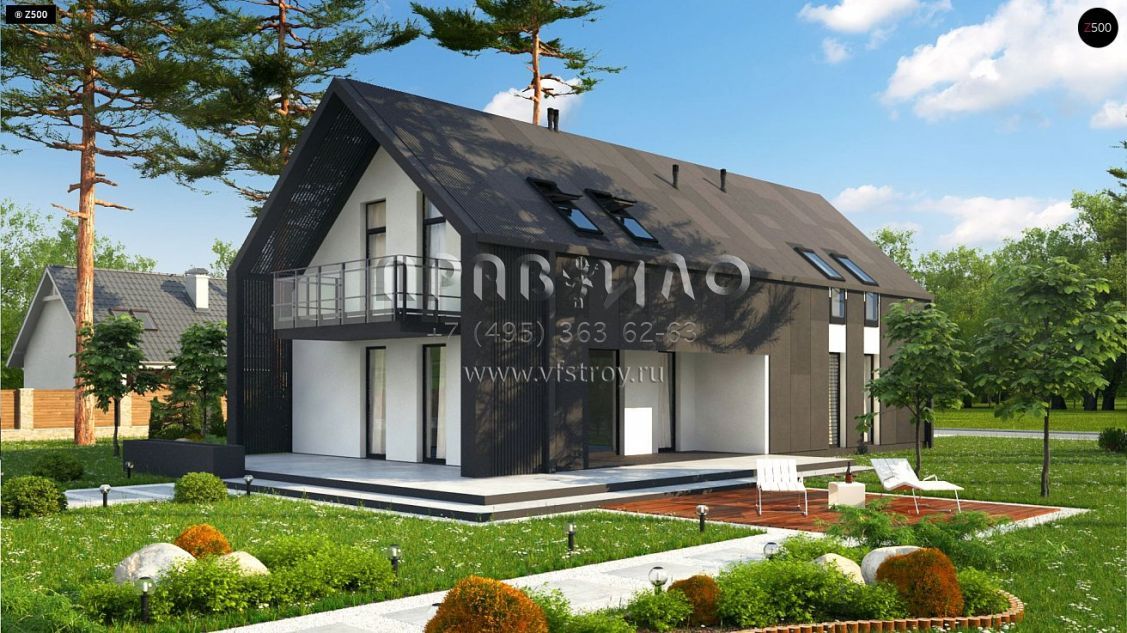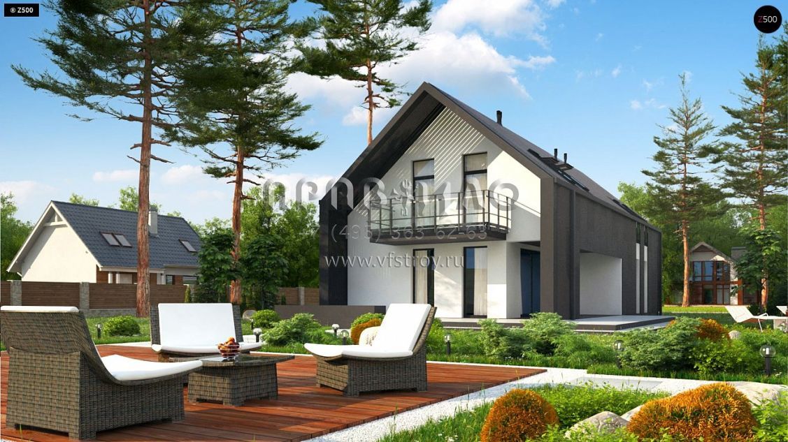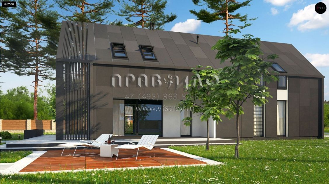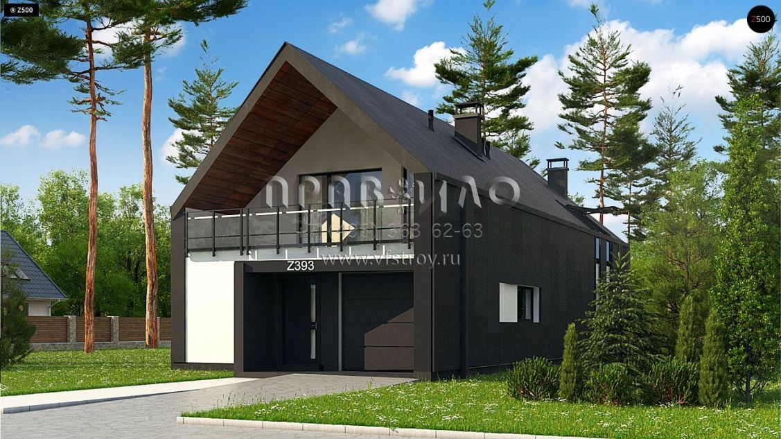 Проект стильного загородного дома с встроенным гаражом и с крытой террасой S3-182-6 (Z393)