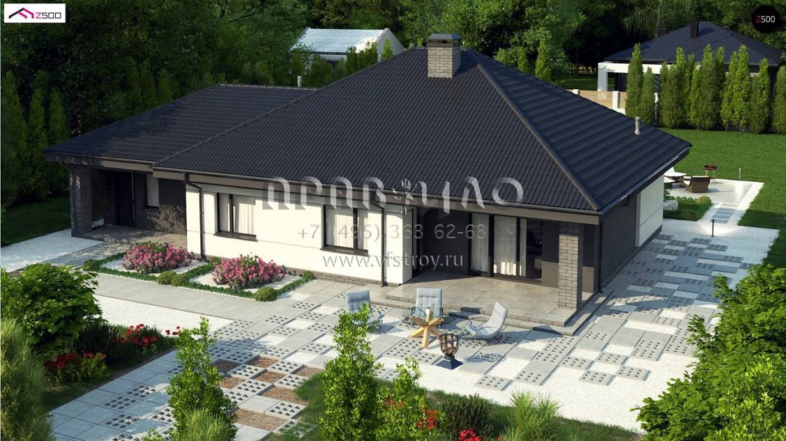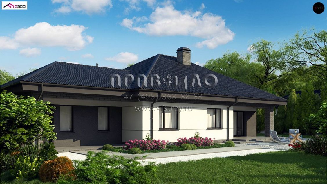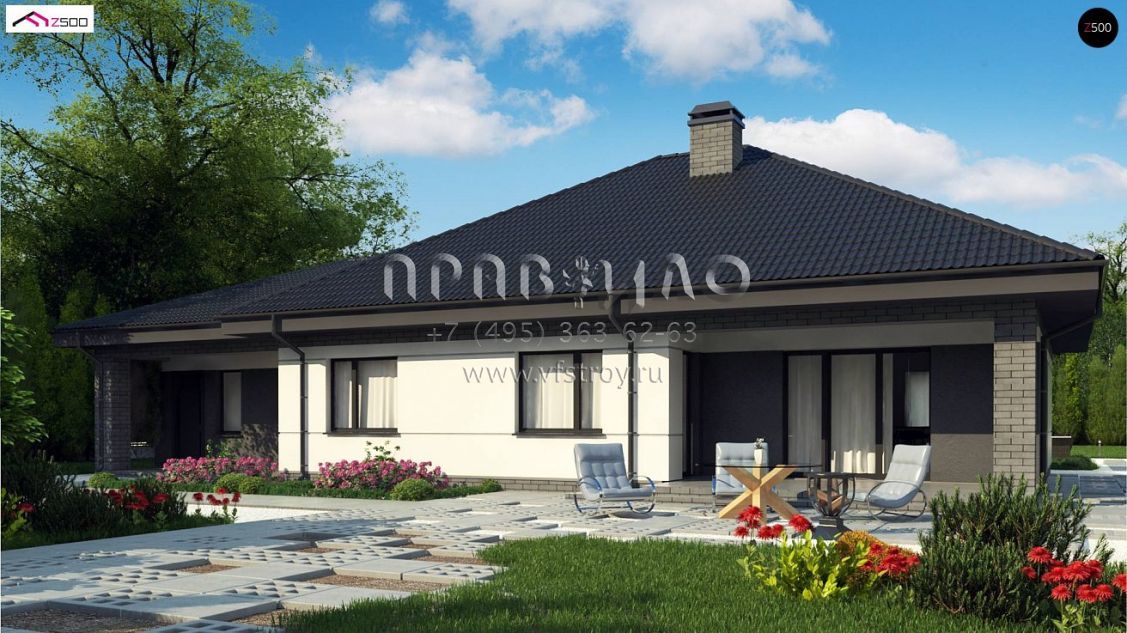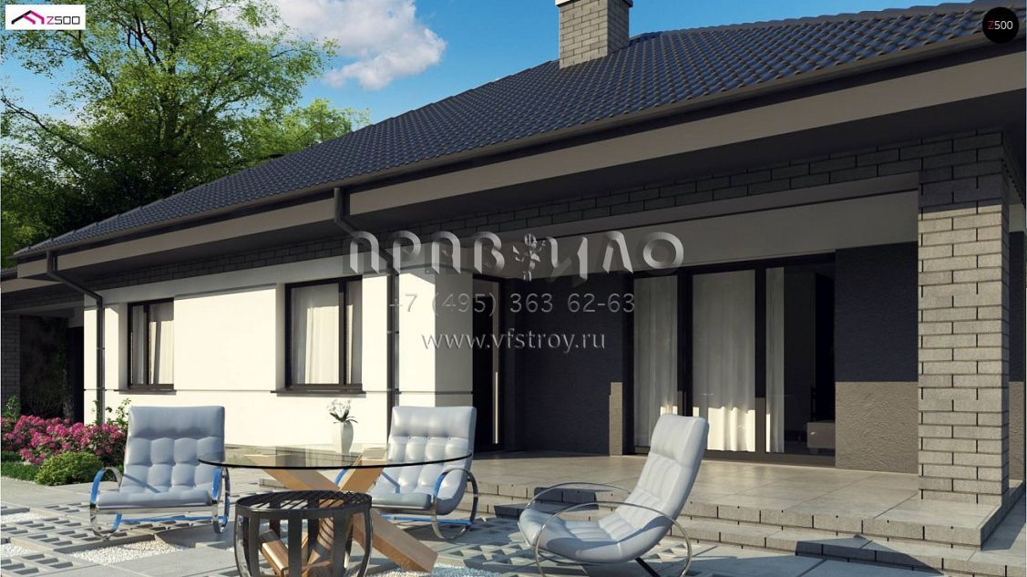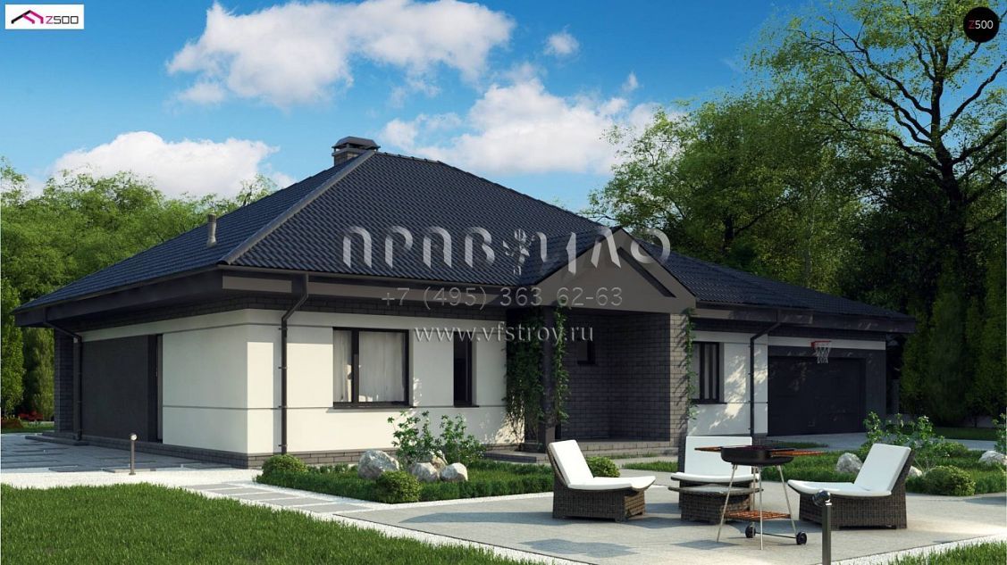 Проект современного одноэтажного дома с большим гаражом и с террасой S3-184-10 (Z86 A)