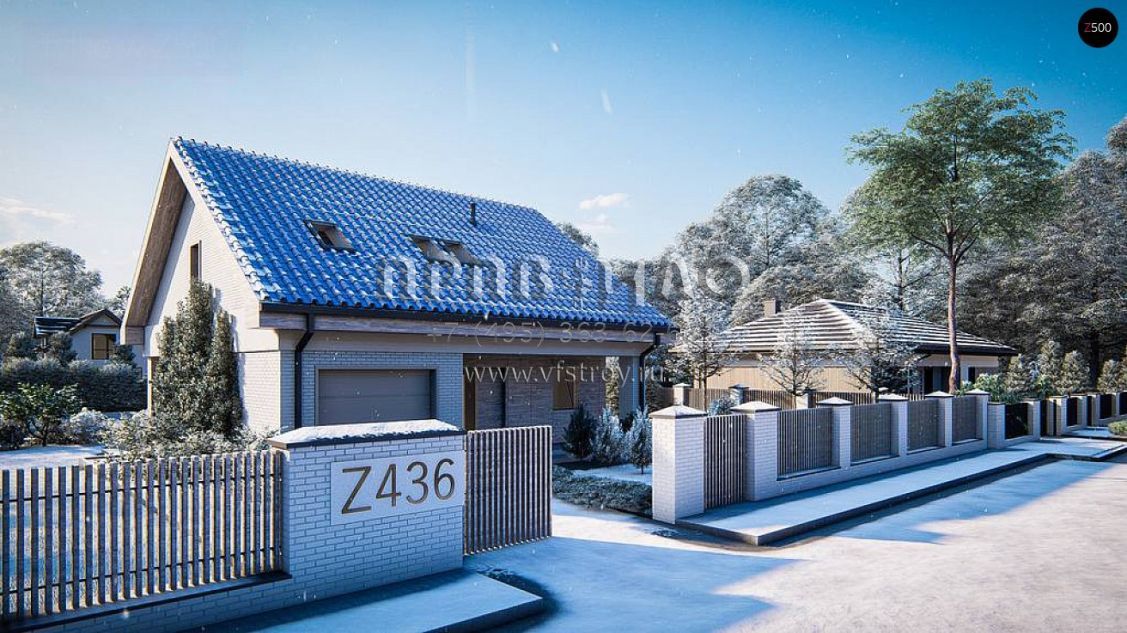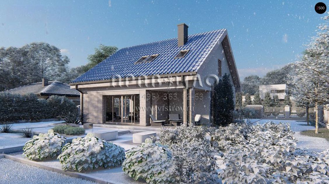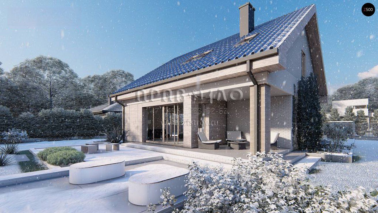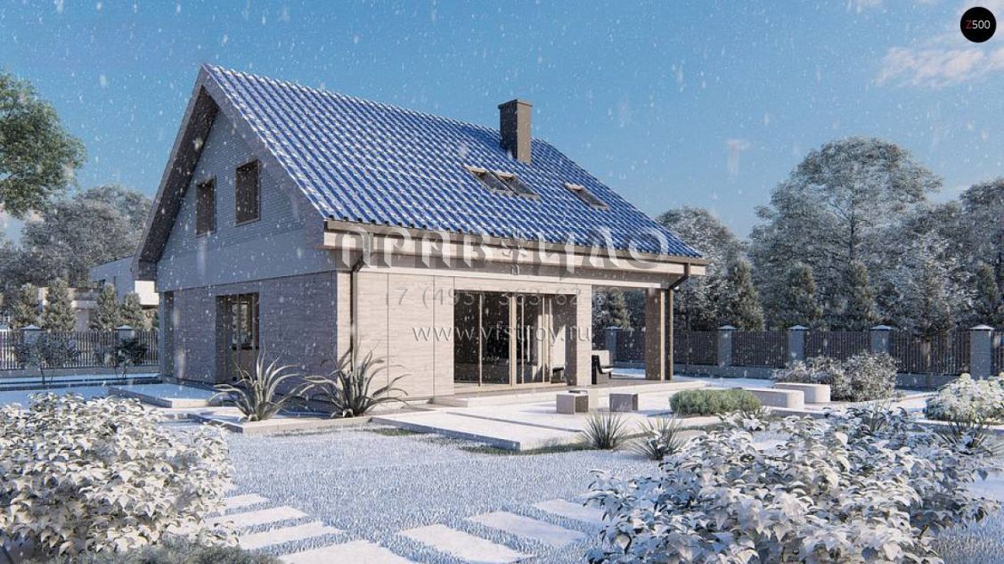 Проект функционального дома с мансардой, двускатной кровлей и террасой S3-184-12 (z436)