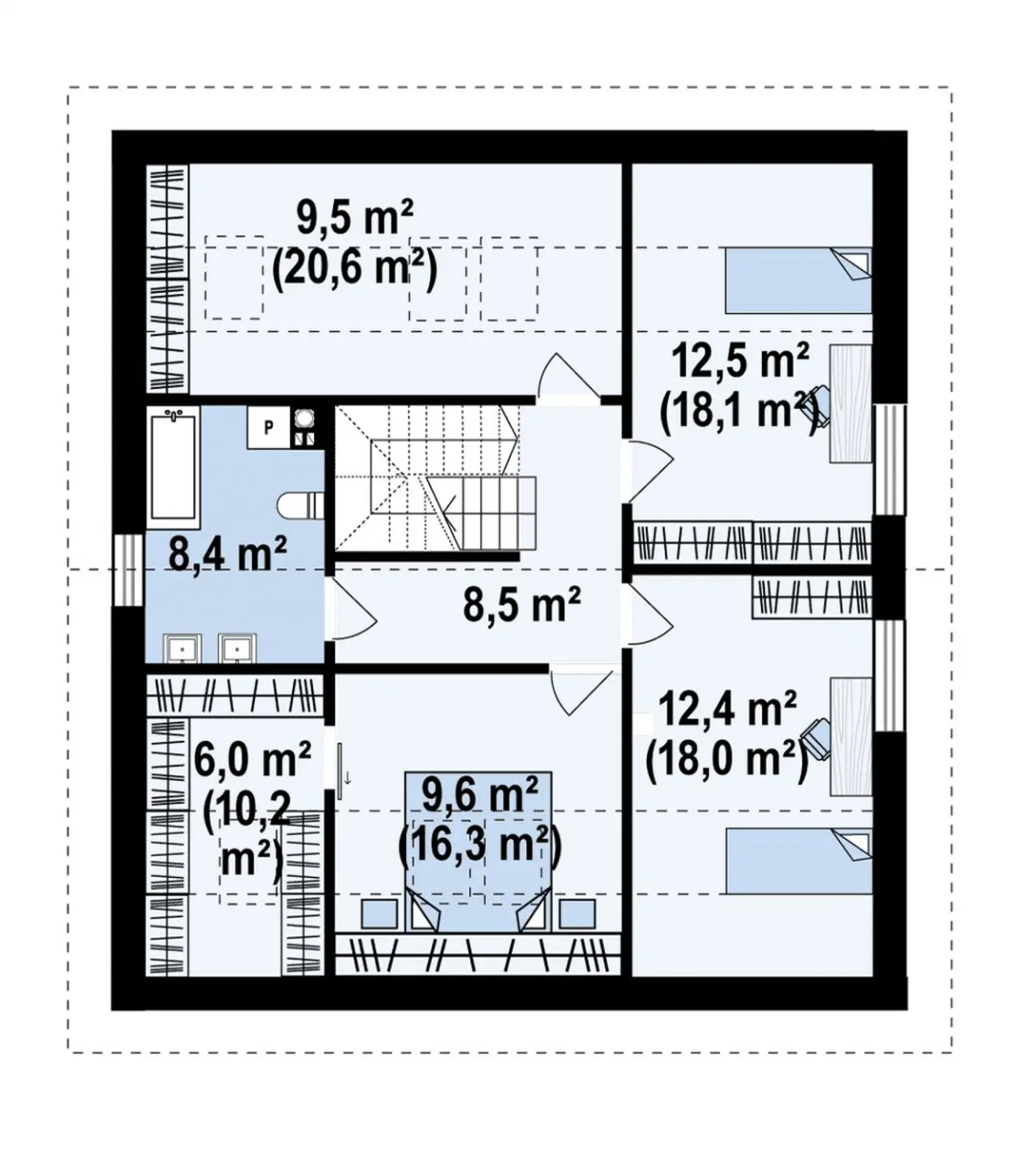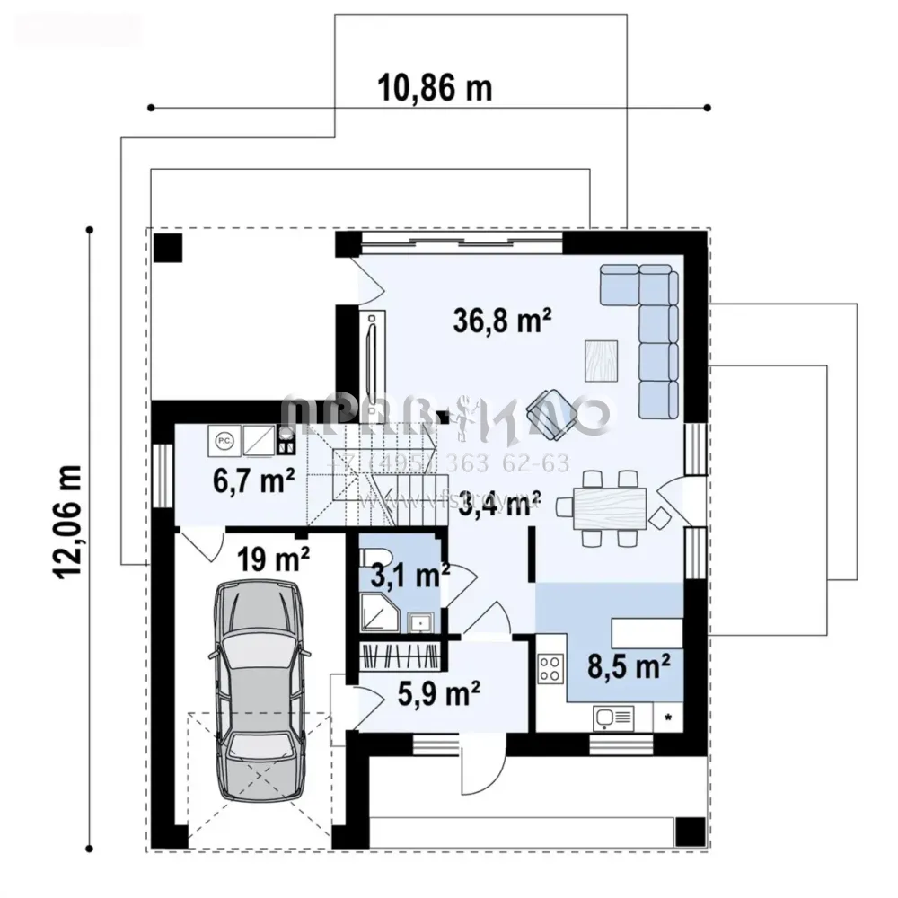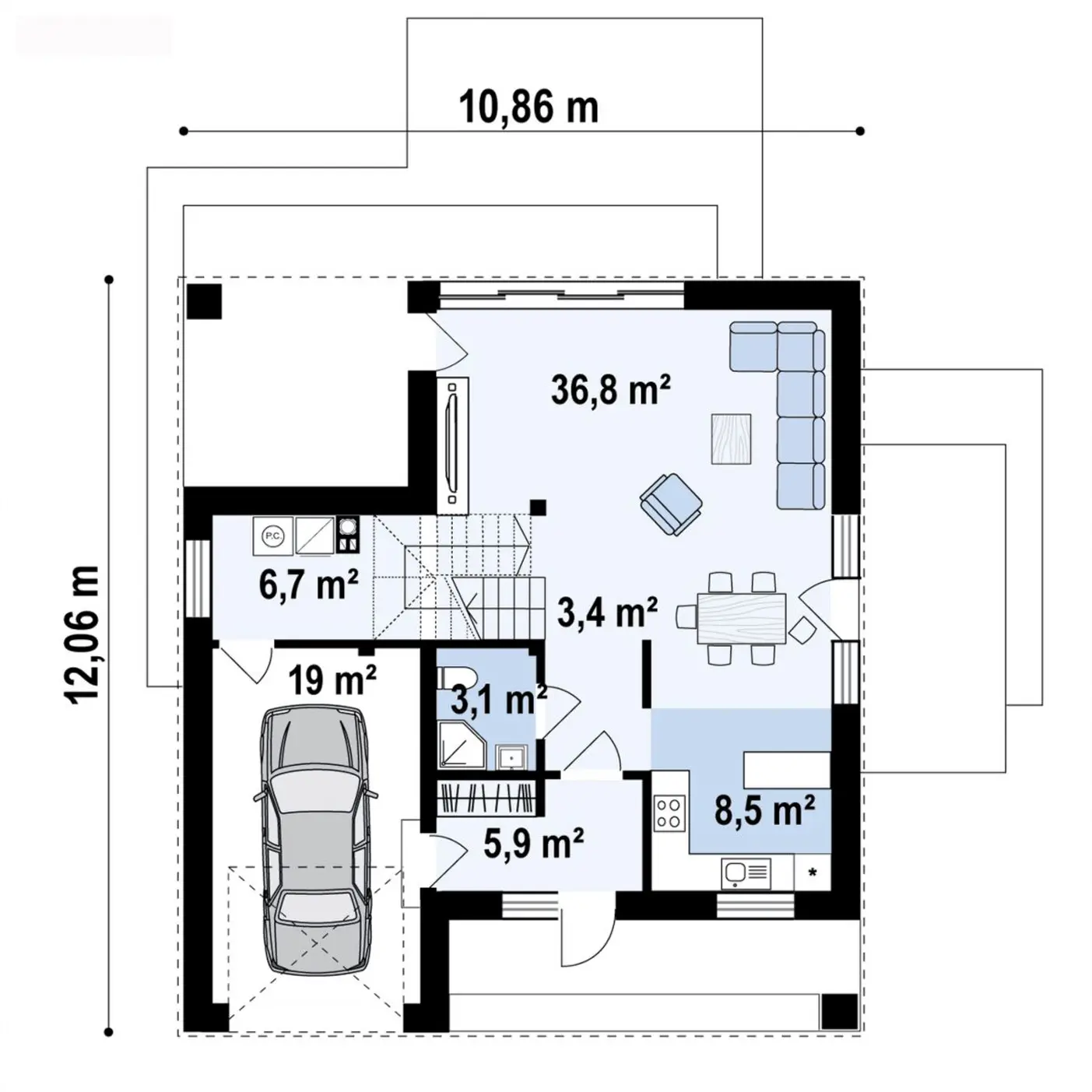 Проект функционального дома с мансардой, двускатной кровлей и террасой S3-184-12 (z436)