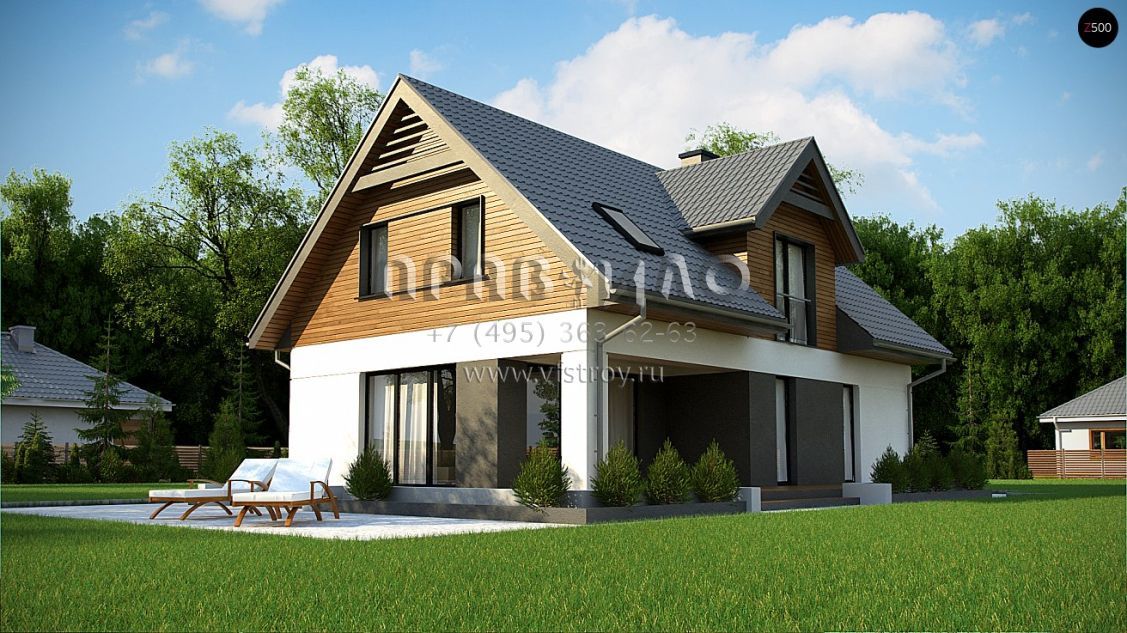 Проект оригинального загородного дома с просторной жилой мансардой s3-184-6 (Z365)