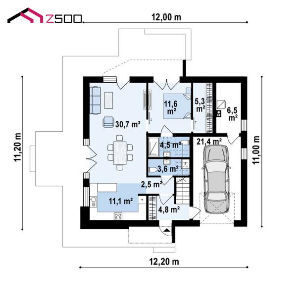 Проект двухэтажного дома в стиле хай-тек с одноместным гаражом и четырьмя спальнями S3-185-6 (Zx175)