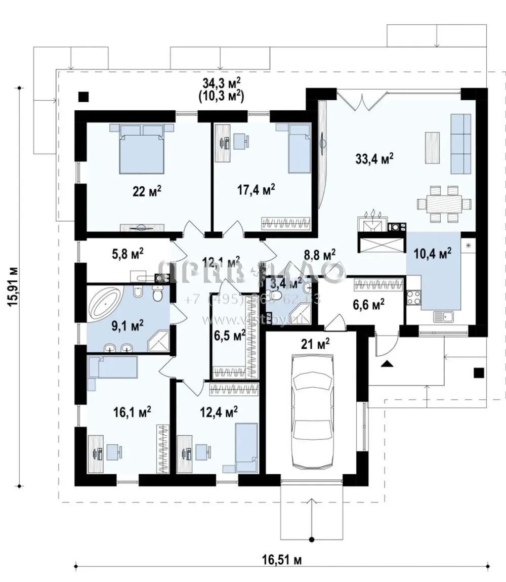 | Общая площадь | 185 м2 |