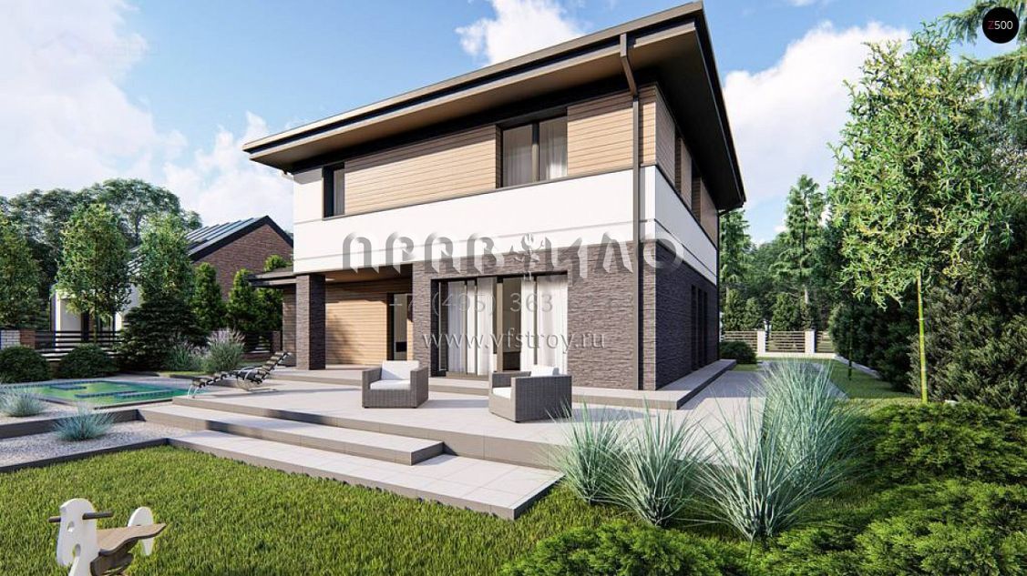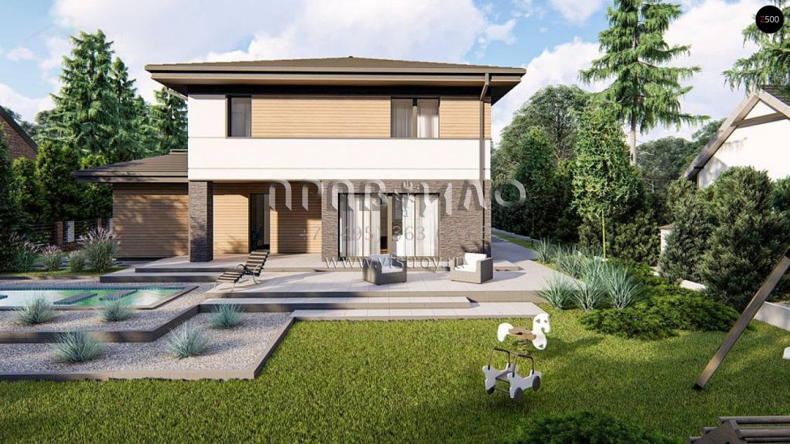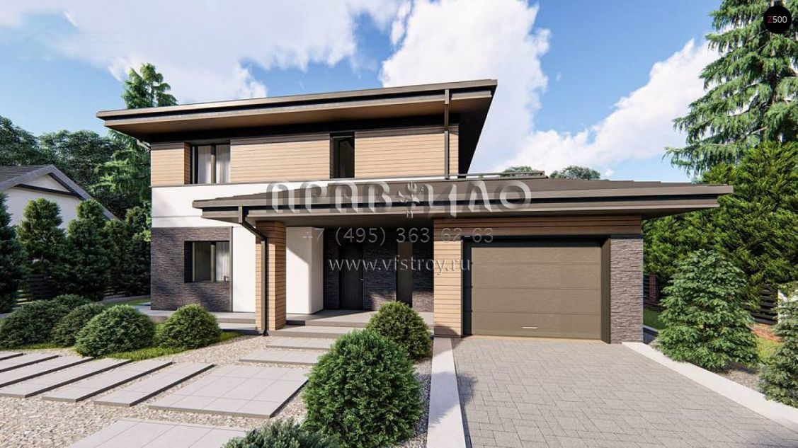 Проект современного двухэтажного дома с террасой и гаражом на один автомобиль S3-186-10 (Z421)