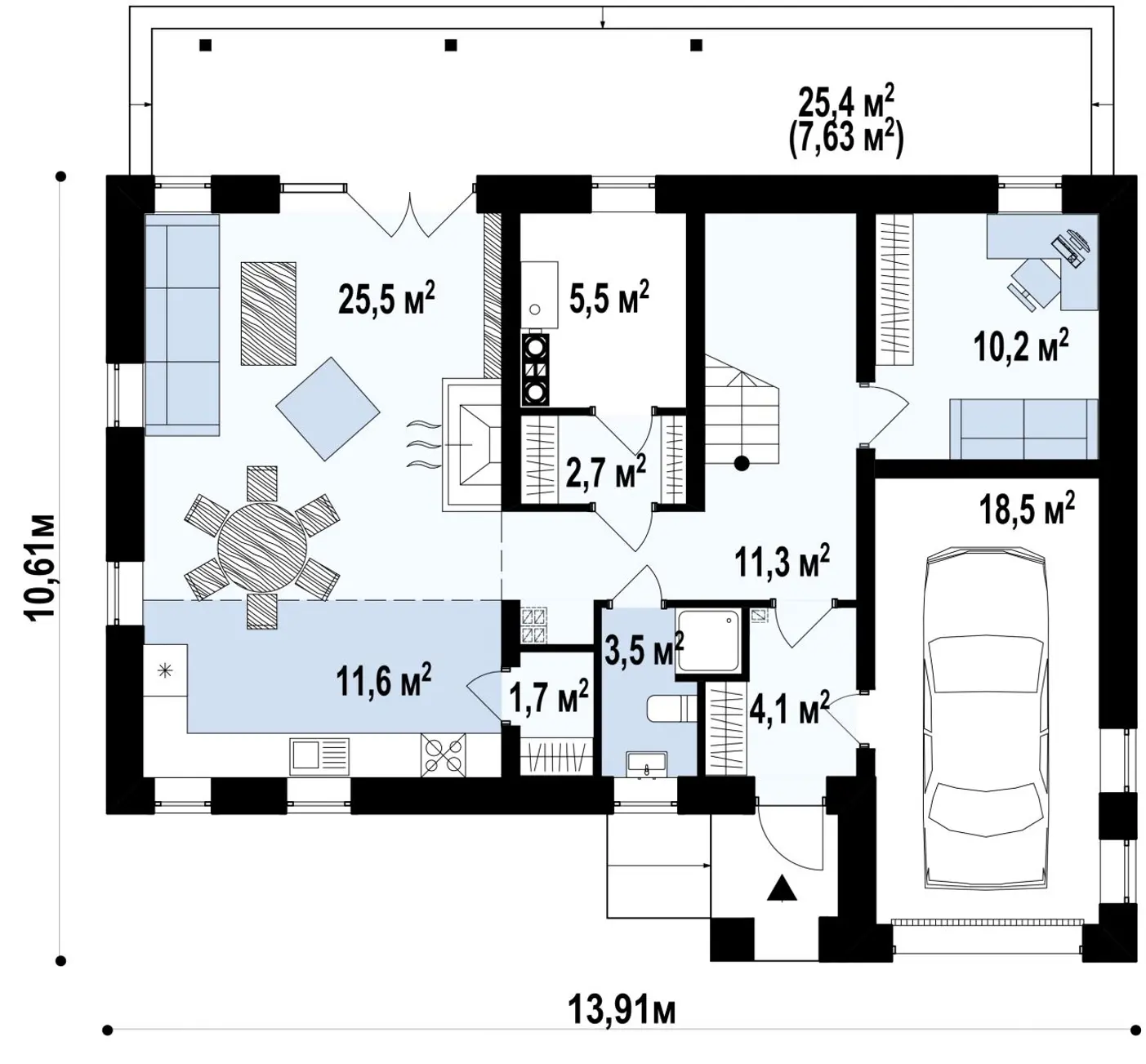 | Гараж | 1 машина |