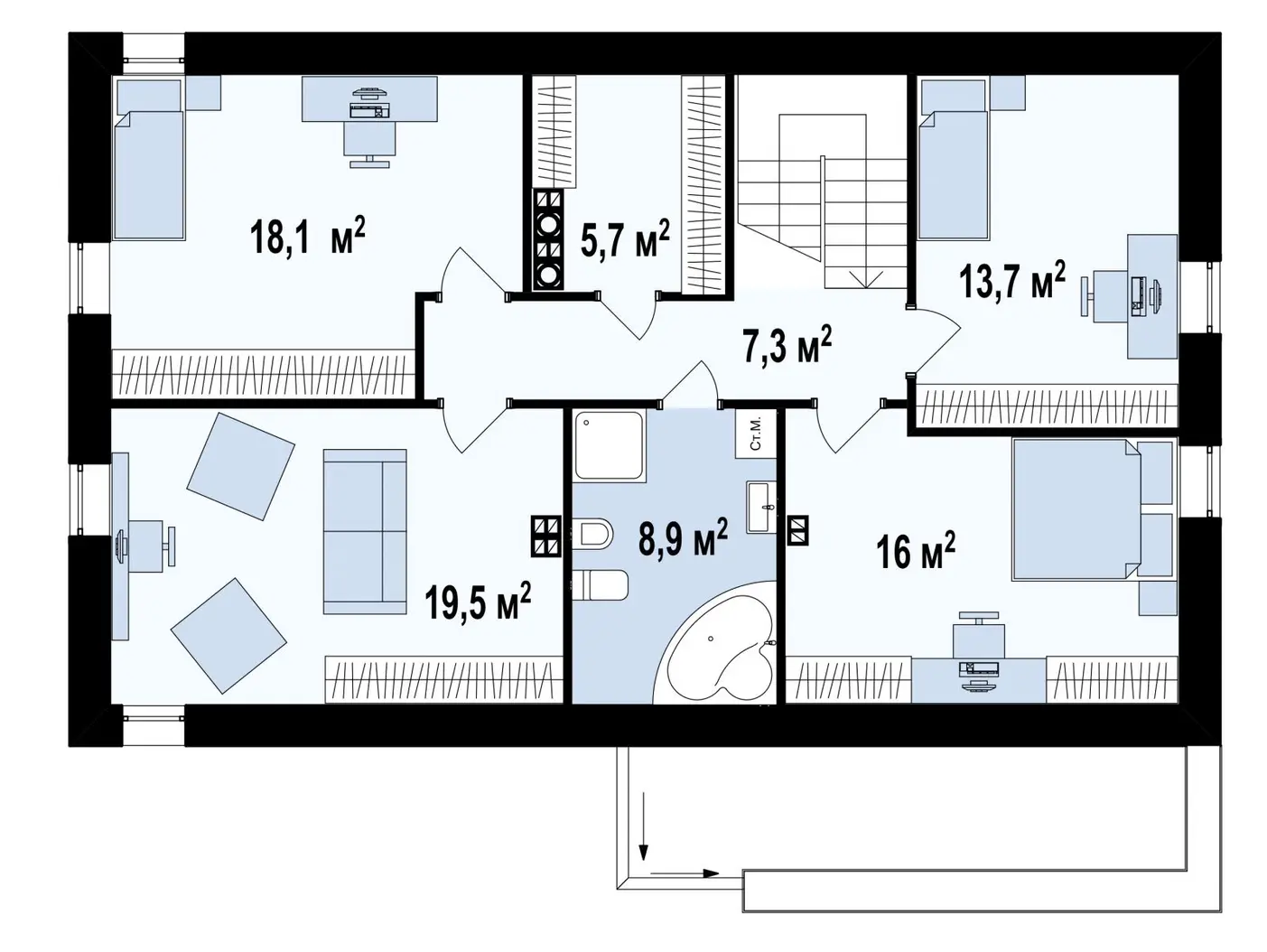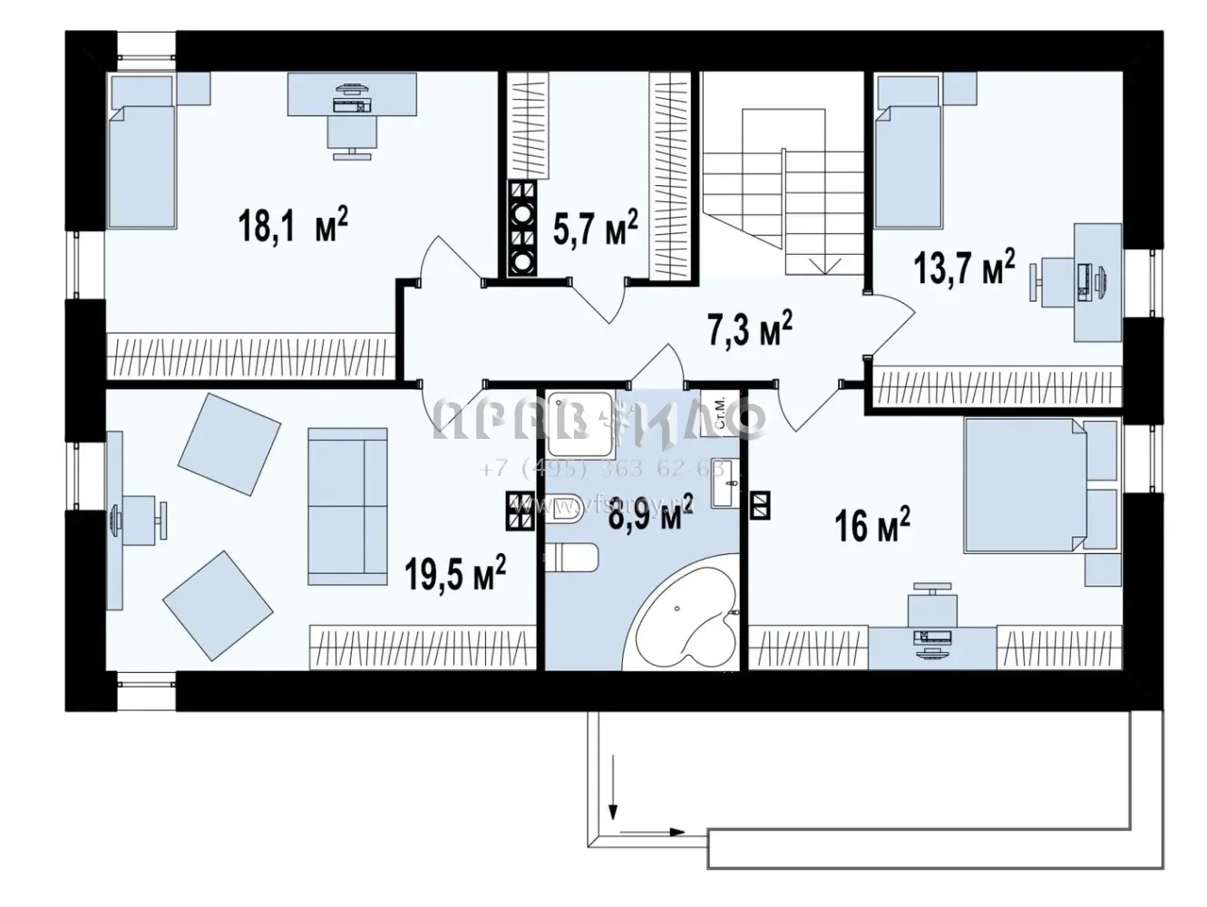 Проект двухэтажного дома с двускатной крышей без карниза S3-187-2 (Zx38)