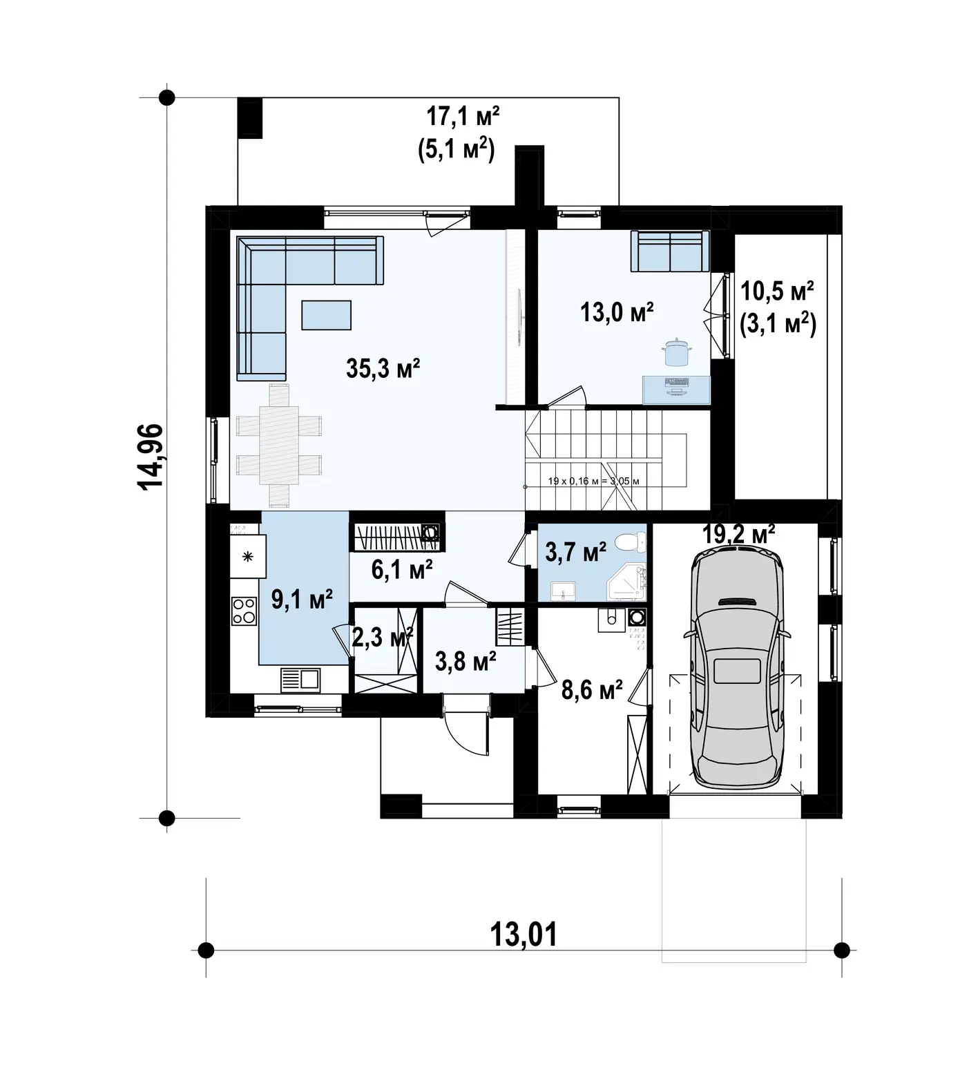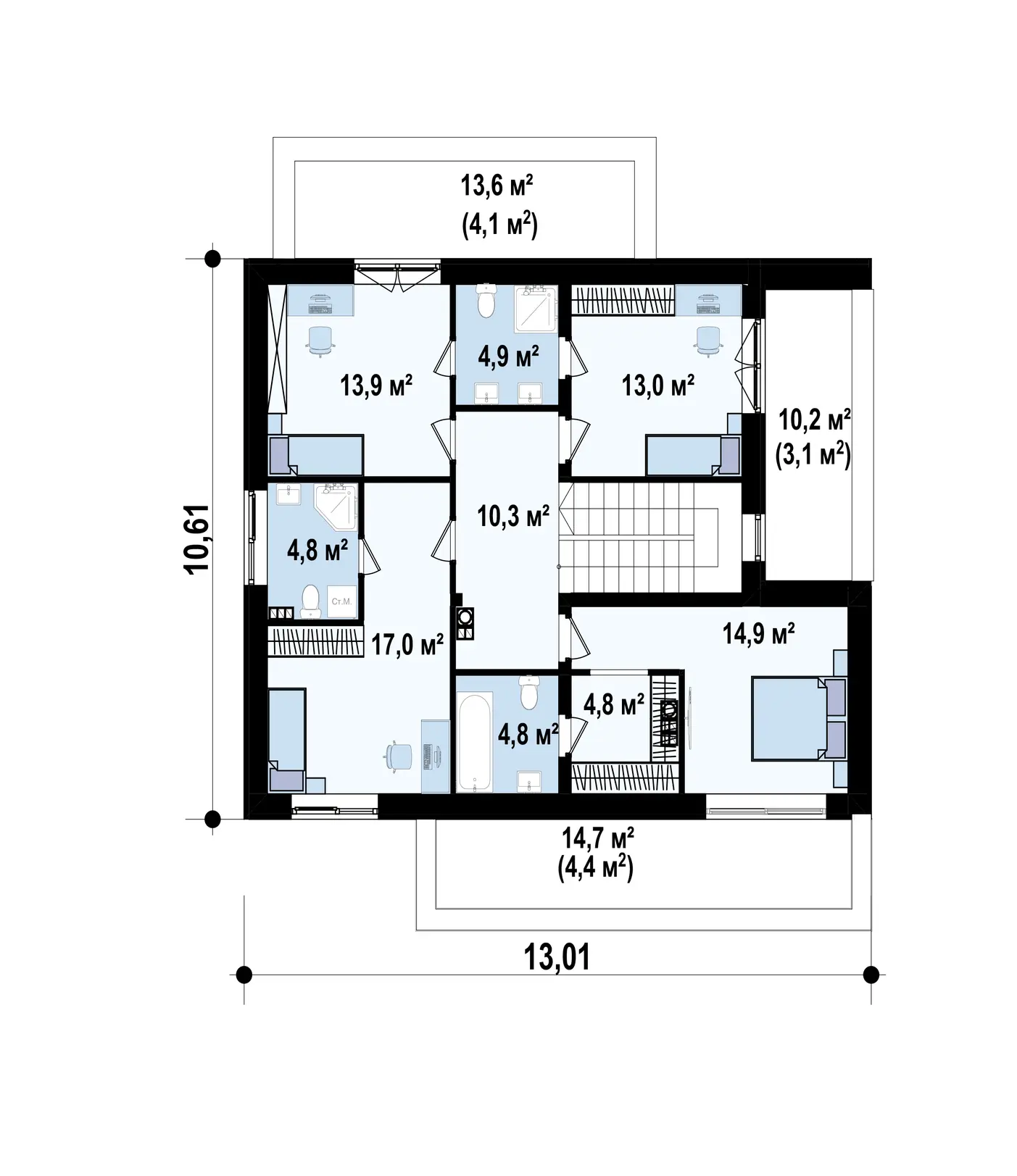 Проект современного двухэтажного коттеджа для большой семьи s3-188-4 (Zx4 A)