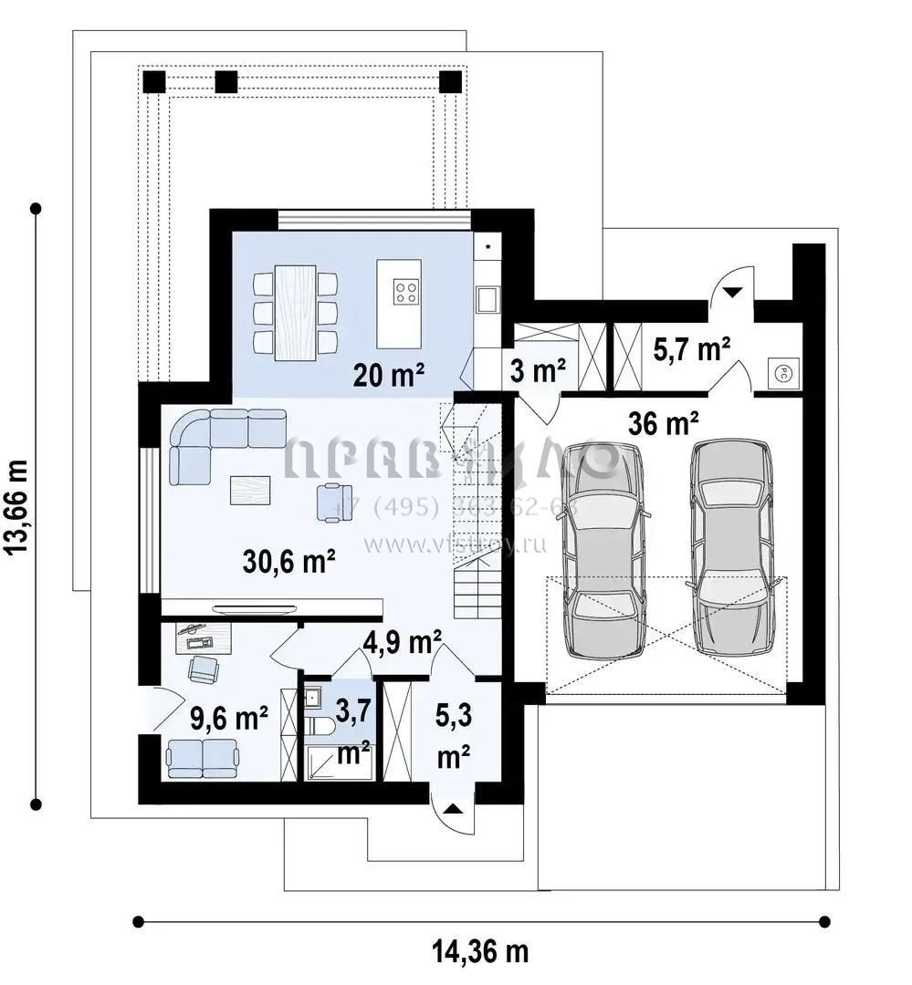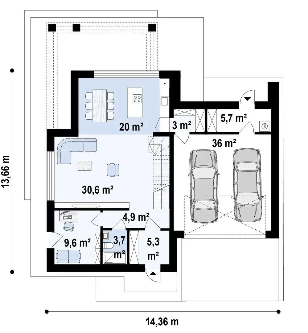 Проект двухэтажного дома в минималистичном стиле с террасой над гаражом S3-188 (Z503)