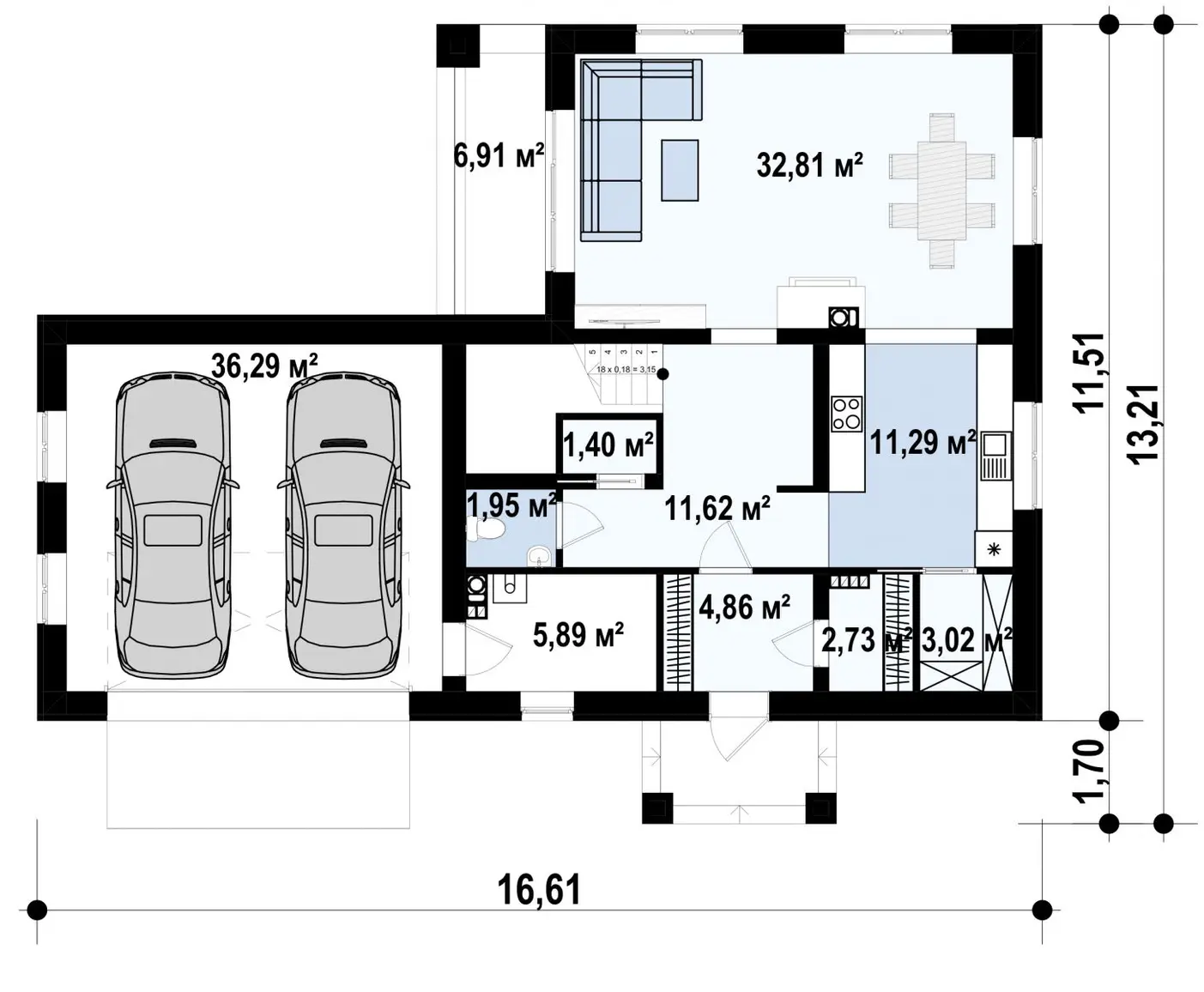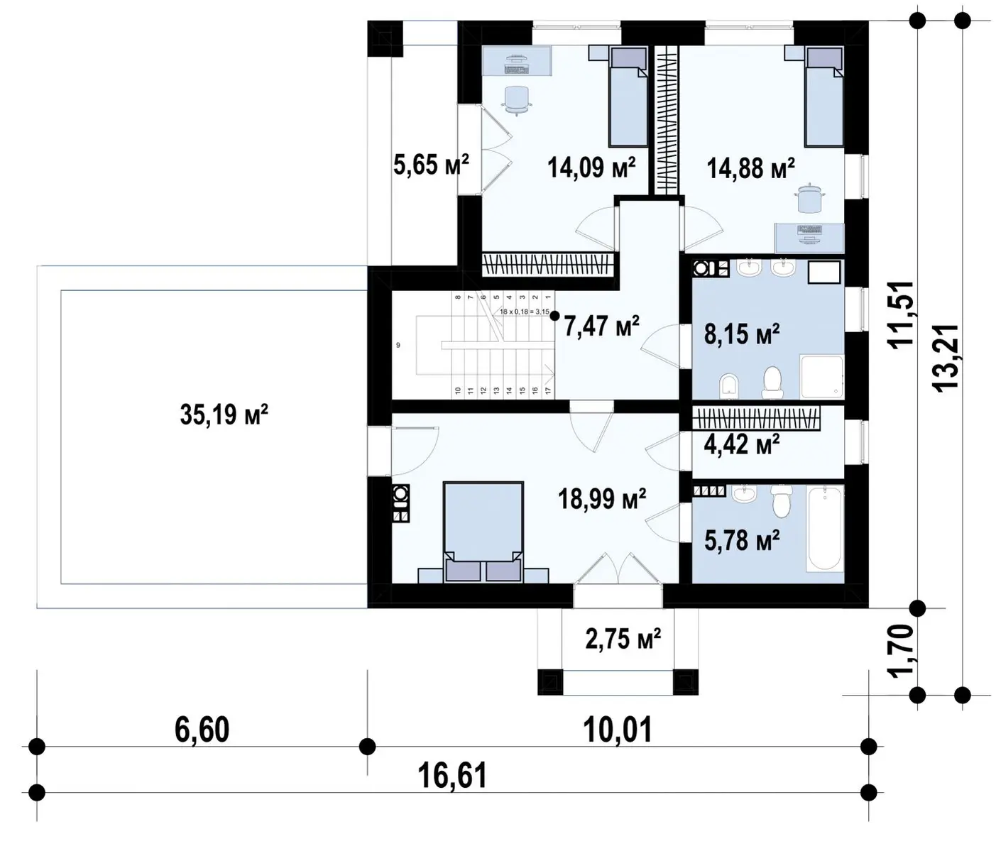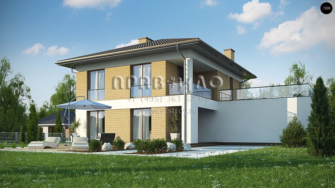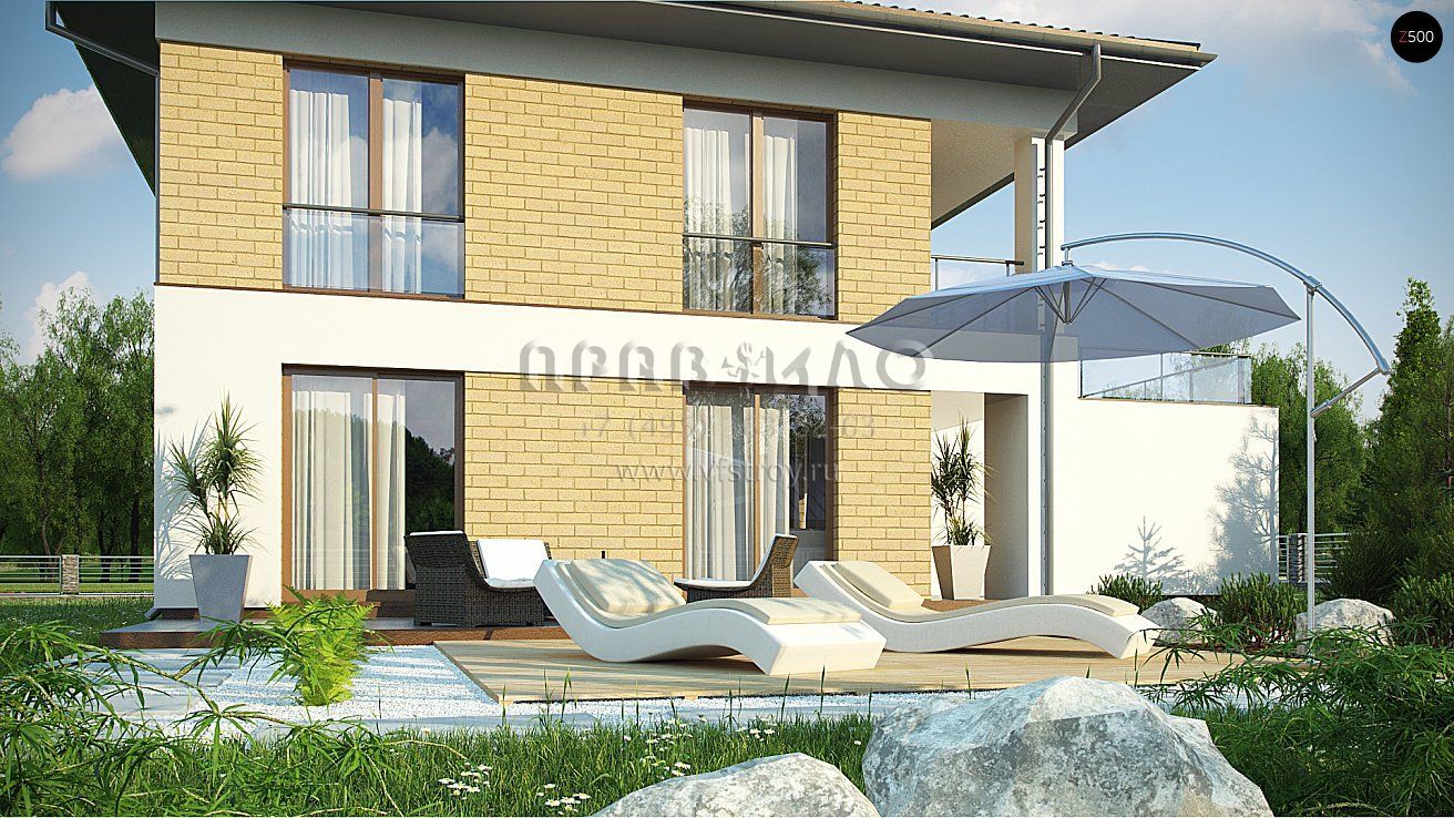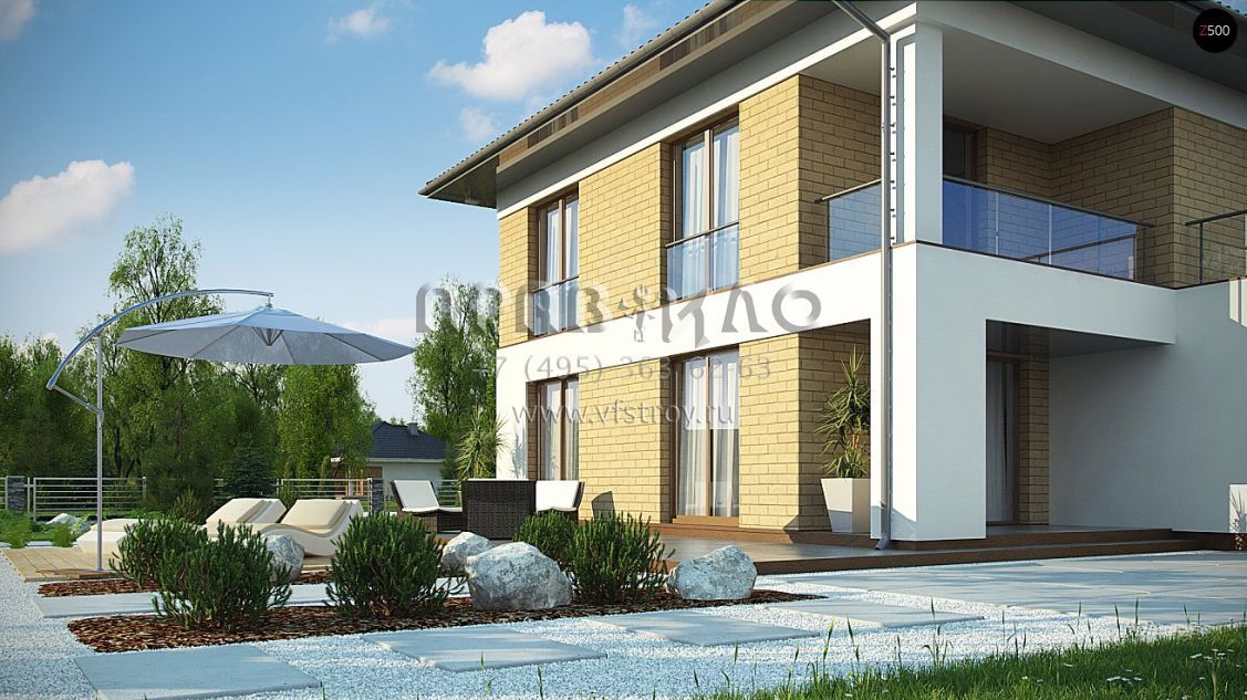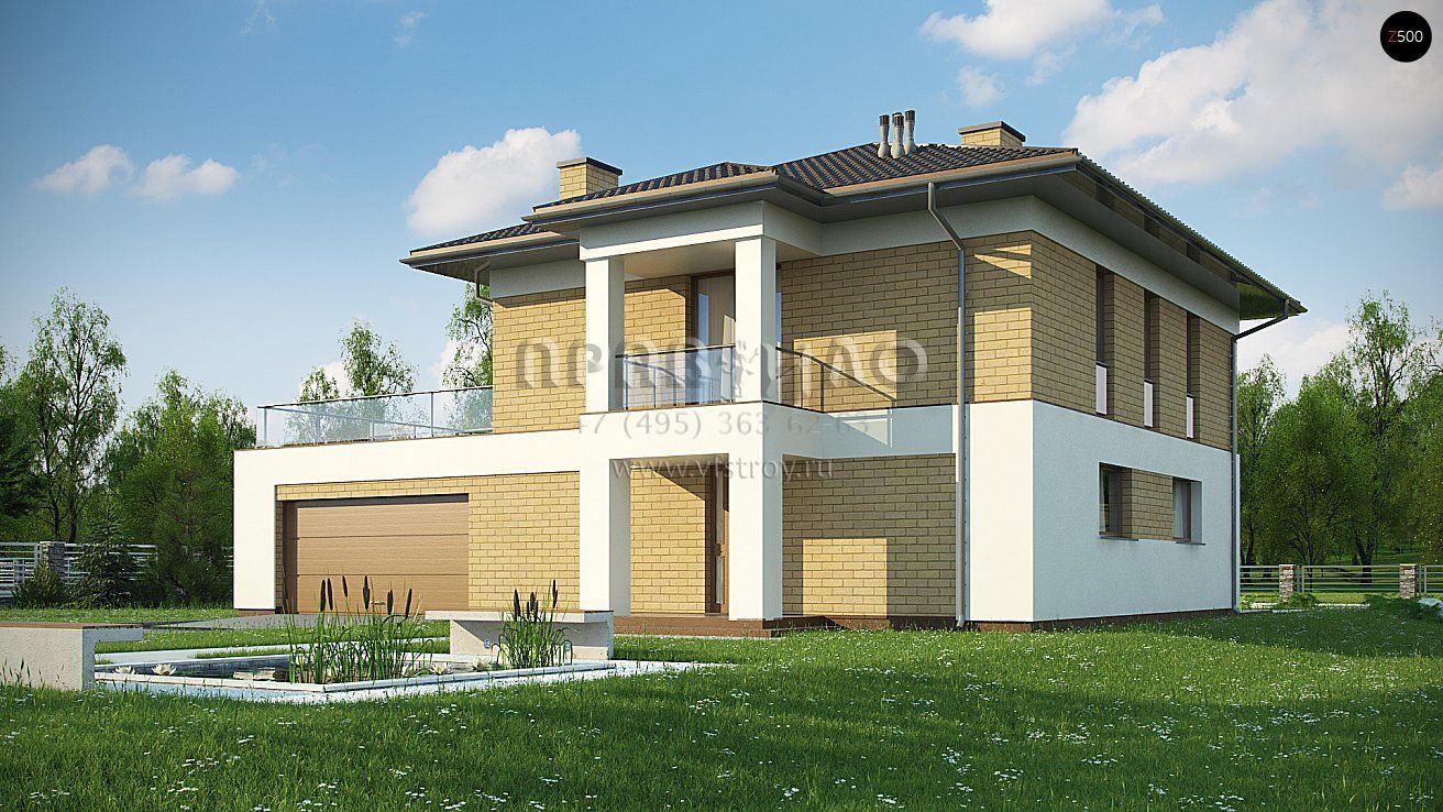 Проект двухэтажного дома с гаражом на две машины и балконом-террасой на втором уровне s3-190-3 (Zx136)