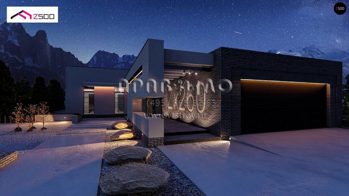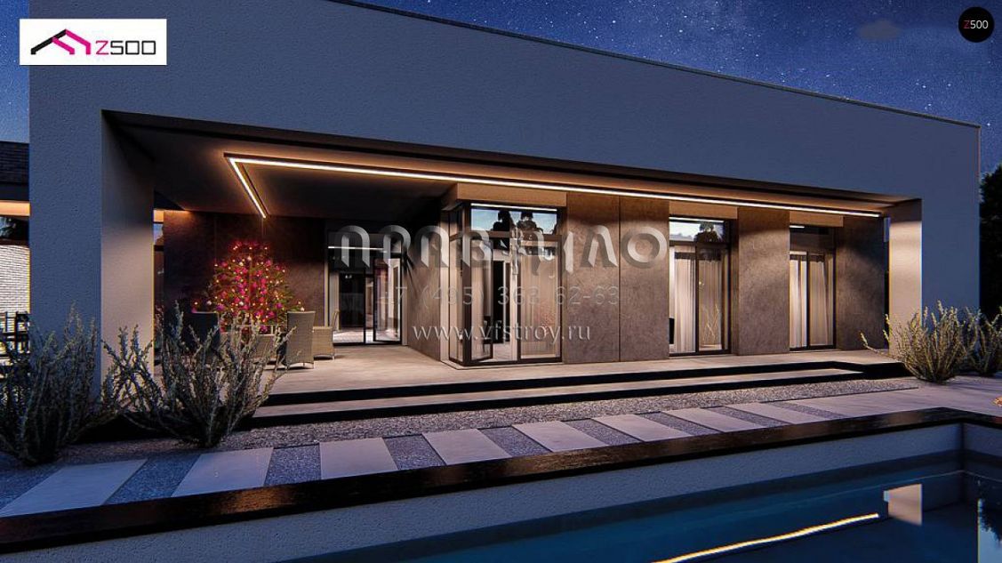 Проект одноэтажного хай-тек дома с оригинальной архитектурой S3-192-6 (Zx260)