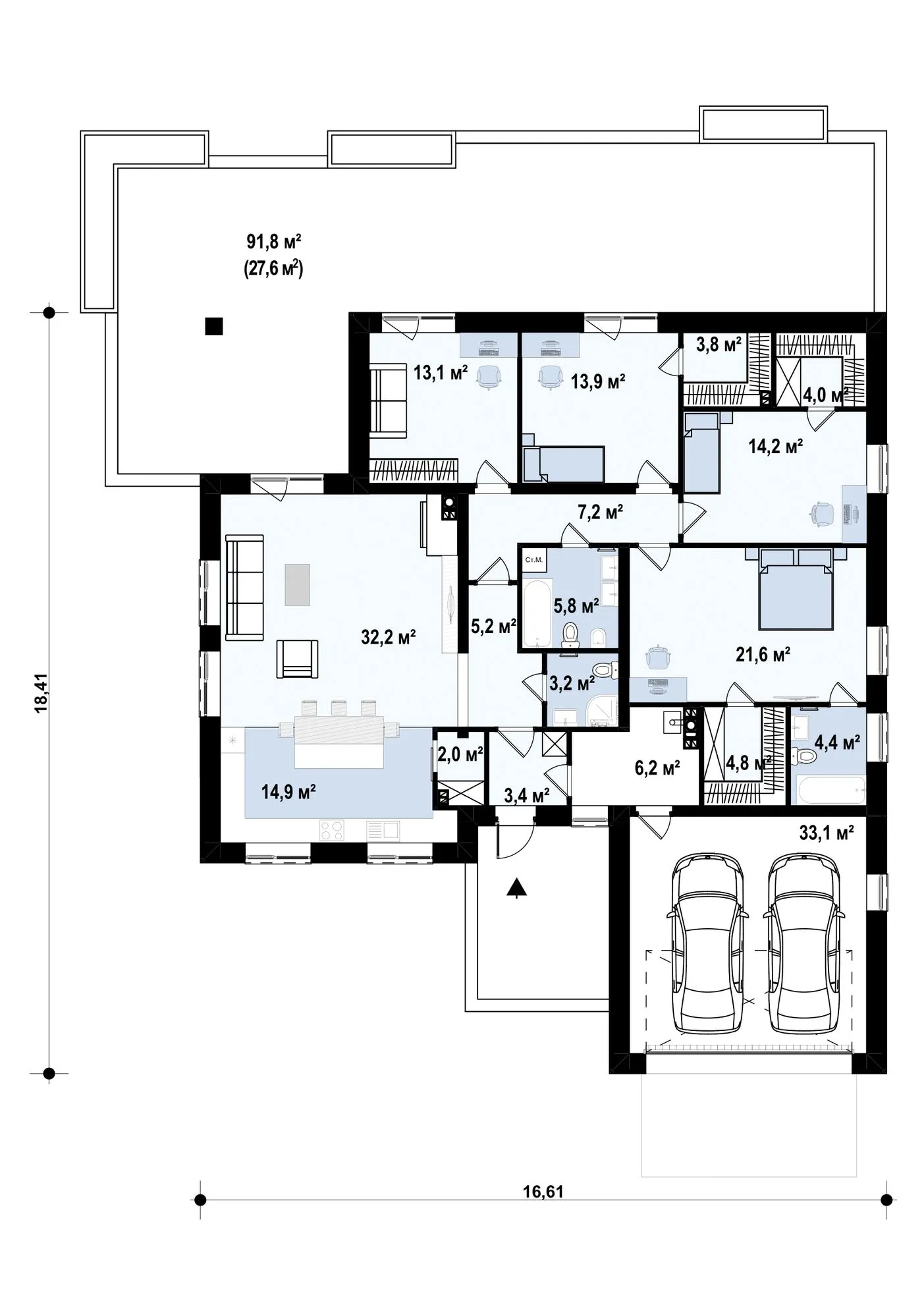 Проект коттеджа с фронтальным гаражом на два автомобиля S3-193-2 (Z301)