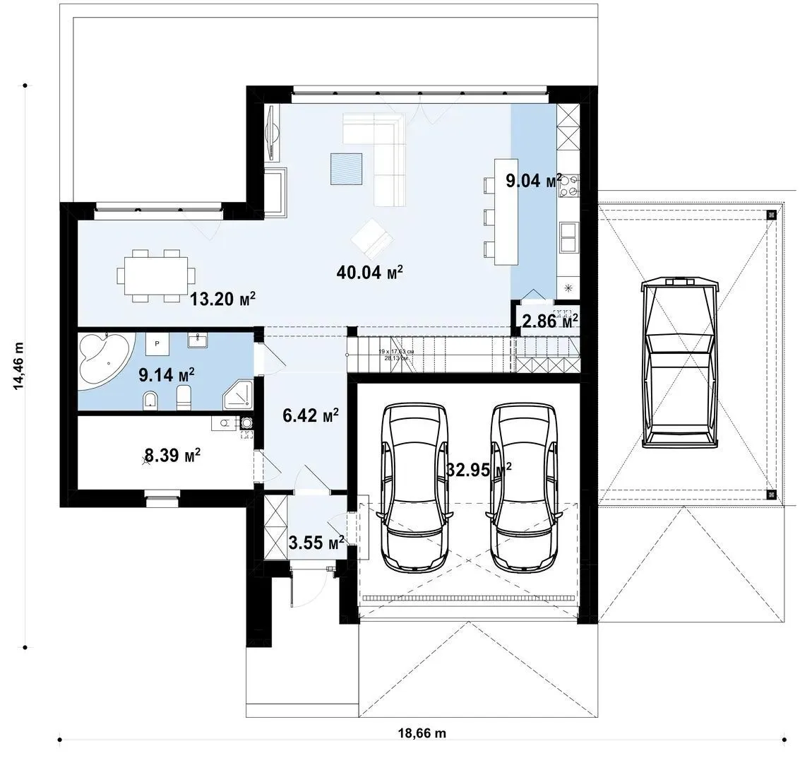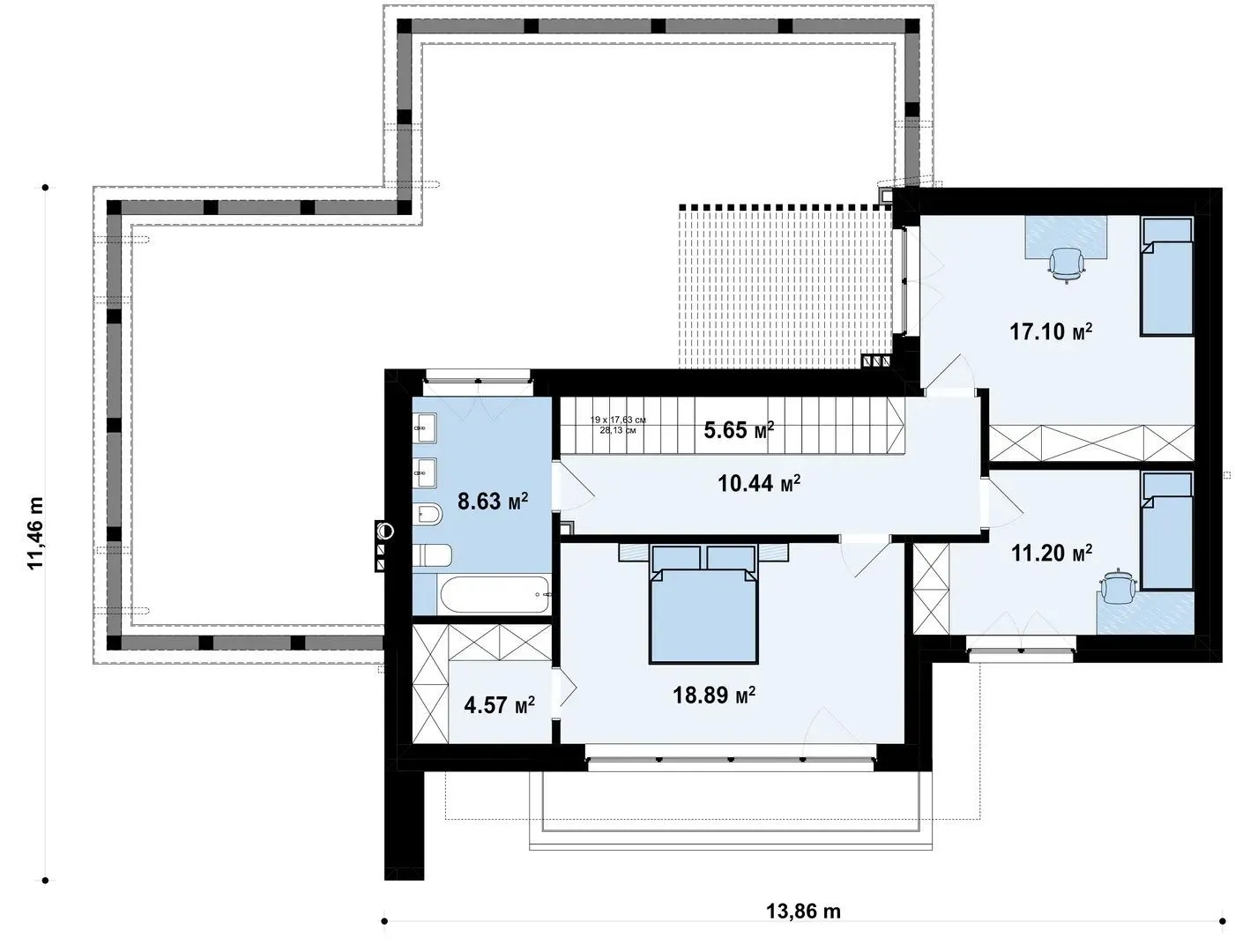 Проект дома с измененной планировкой и односкатной кровлей S3-193 (Zx204 B30)