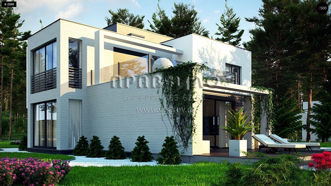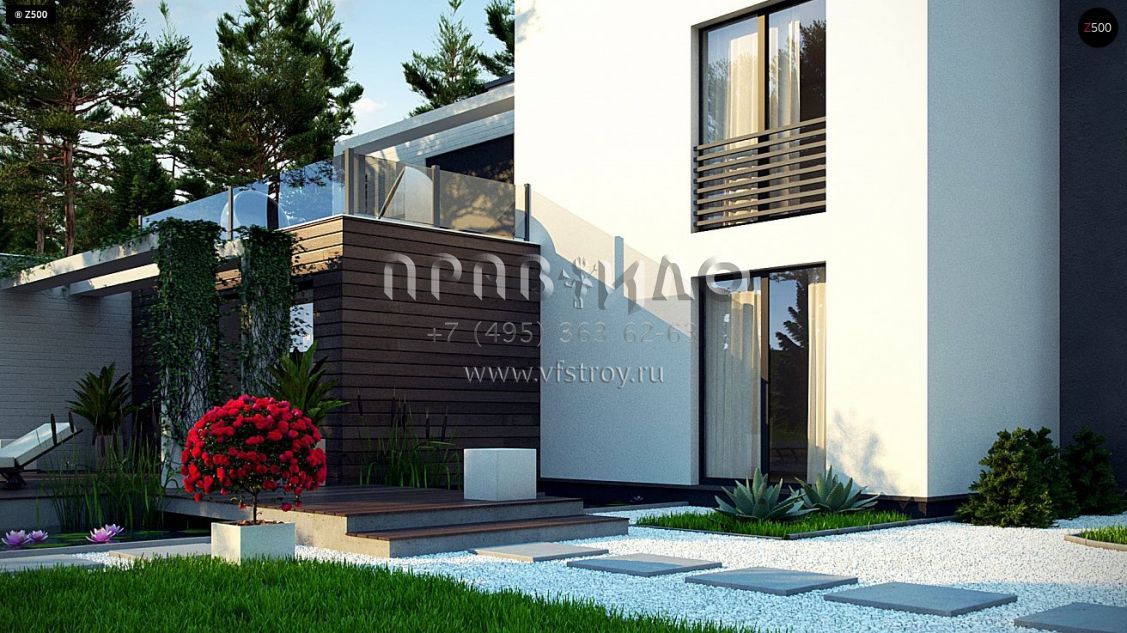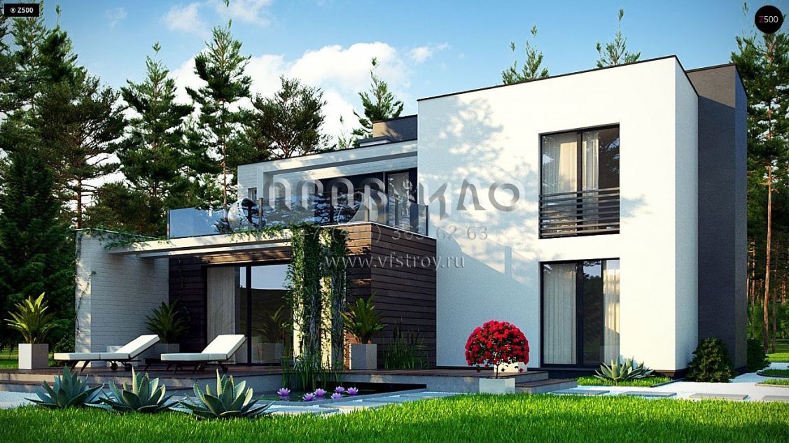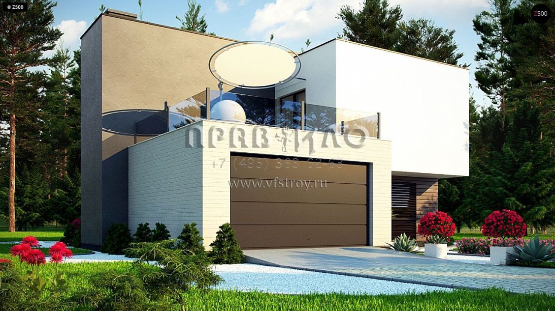 Проект двухэтажного дома в стиле хайтек с гаражом на два автомобиля и большими террасами на втором уровне s3-195-4 (Zr17 A)