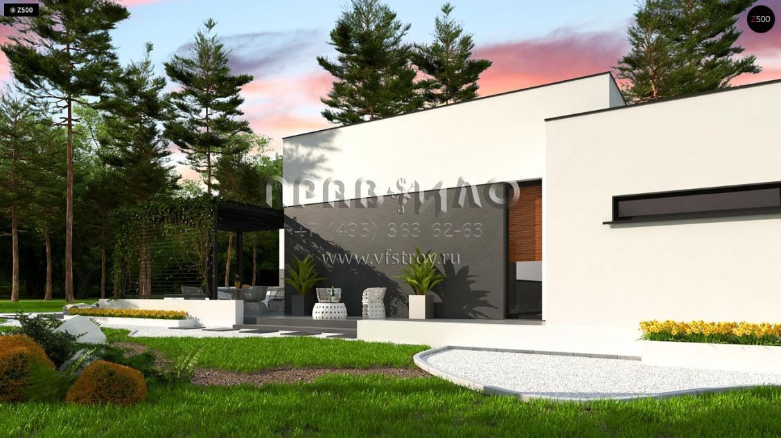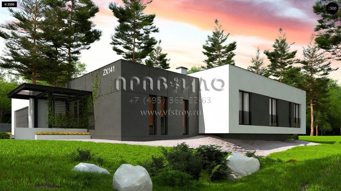 Проект одноэтажного загородного дома в стиле хайтек S3-197-3 (Zx141)
