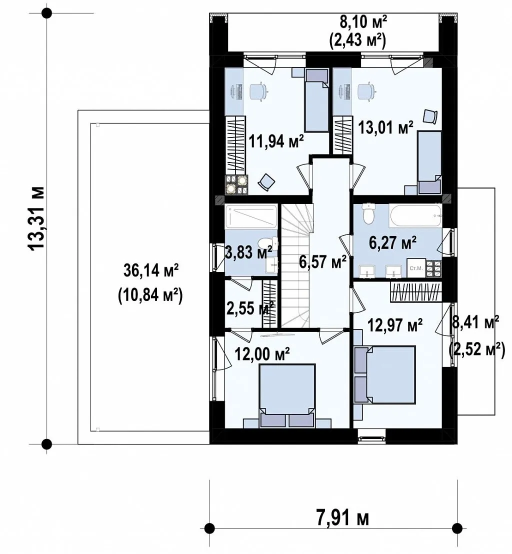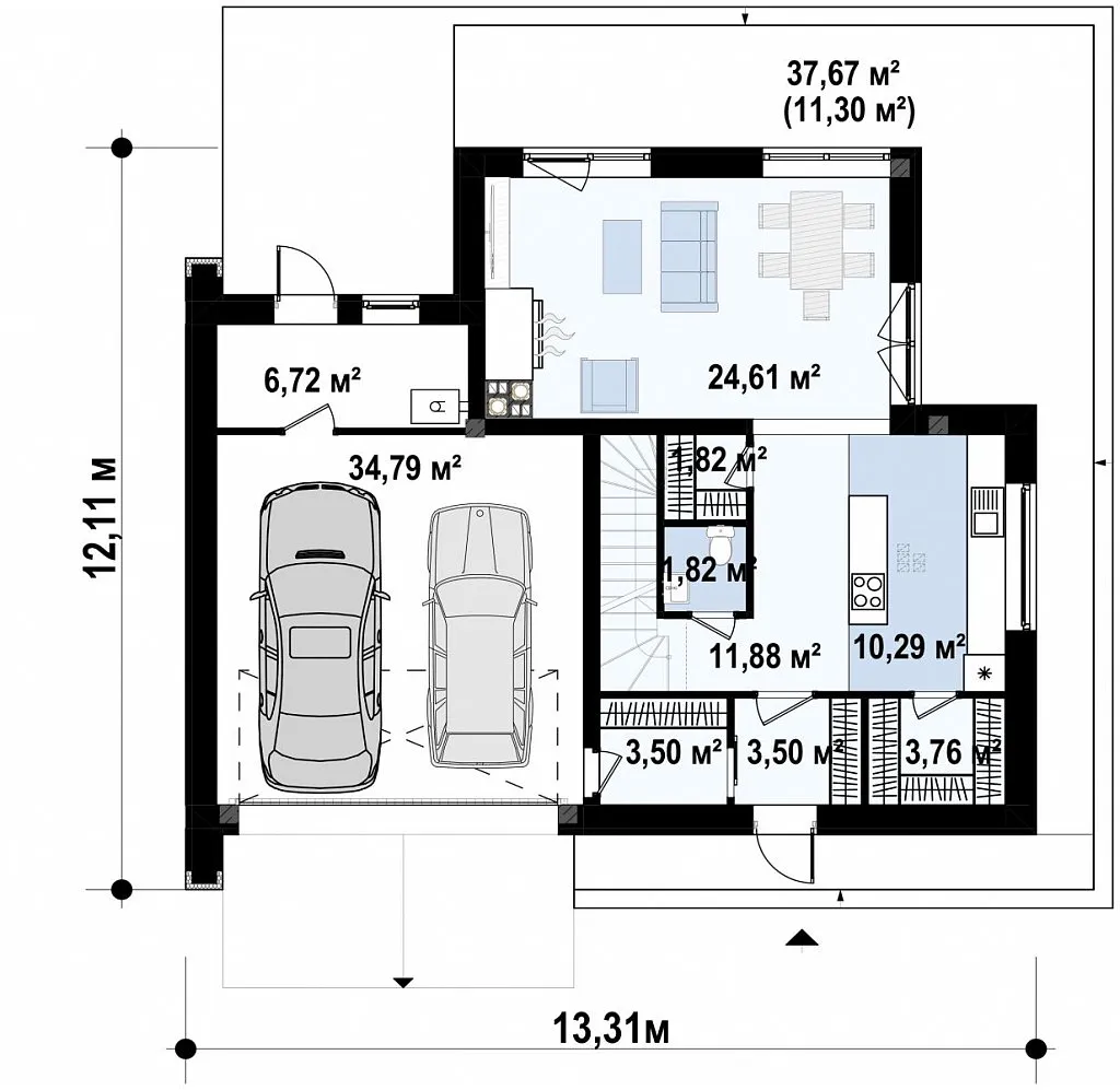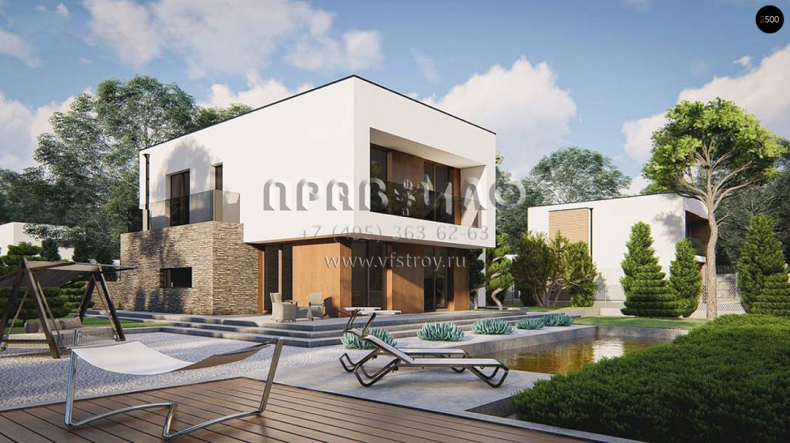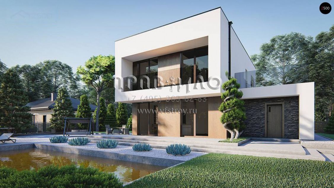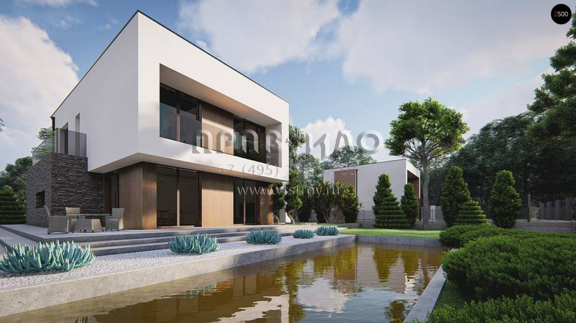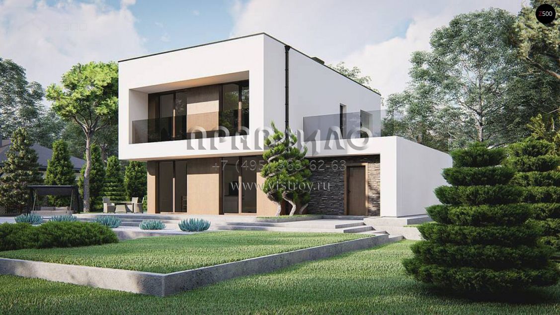 Проект двухэтажного дома в хай-тек стиле с четырьмя спальнями и гаражом на два автомобиля S3-199-5 (zx215)