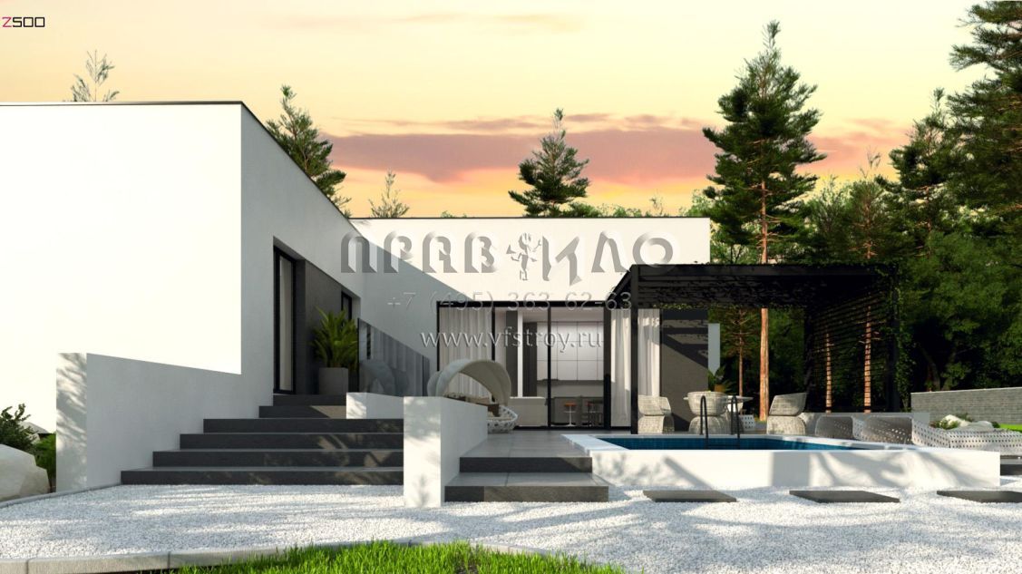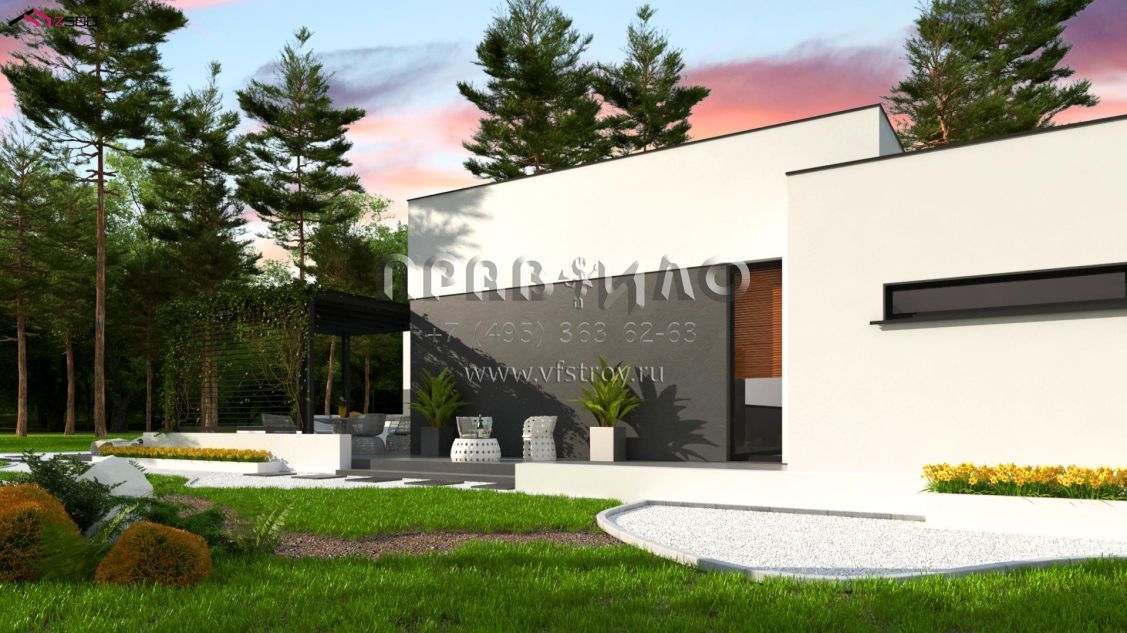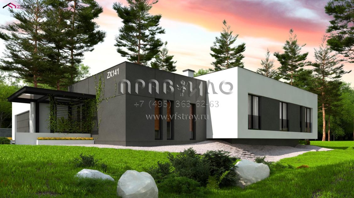 Проект пятикомнатного одноэтажного дома в стиле хайтек с большим гаражом и с террасой S3-200 (Zx141 v1)
