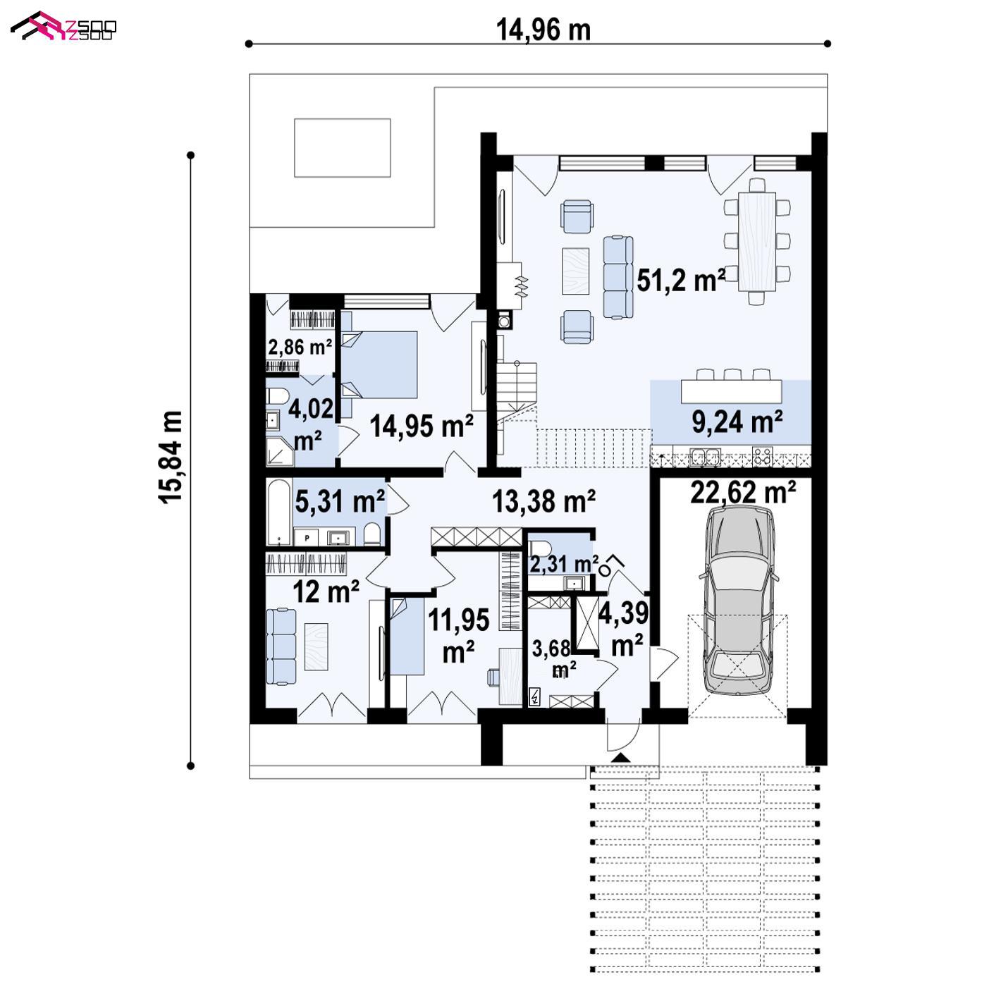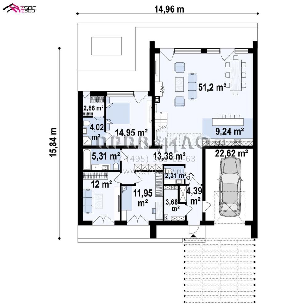 Проект красивого одноэтажного дома с обустроенным чердачным помещением S3-204-2 (Zx206)