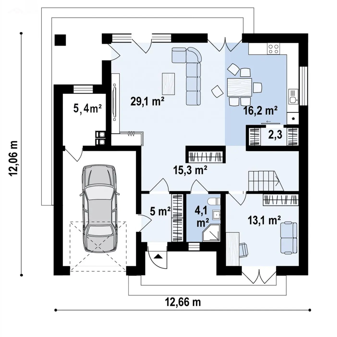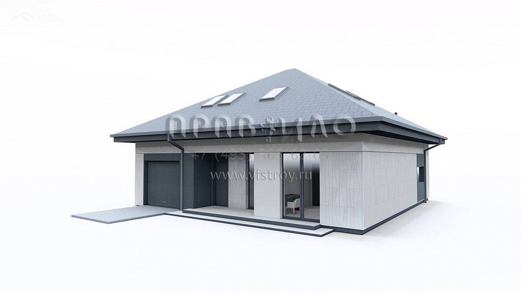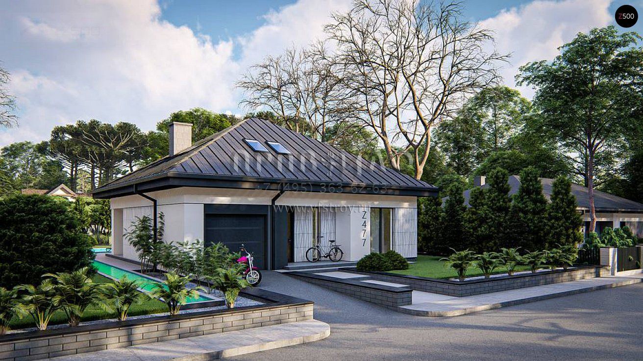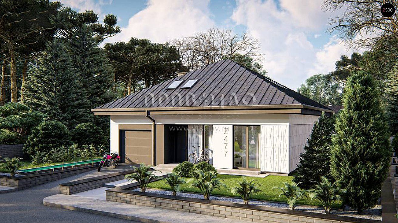 Проект современного одноэтажного мансардного дома с камином и гаражом S3-205-5 (z477)