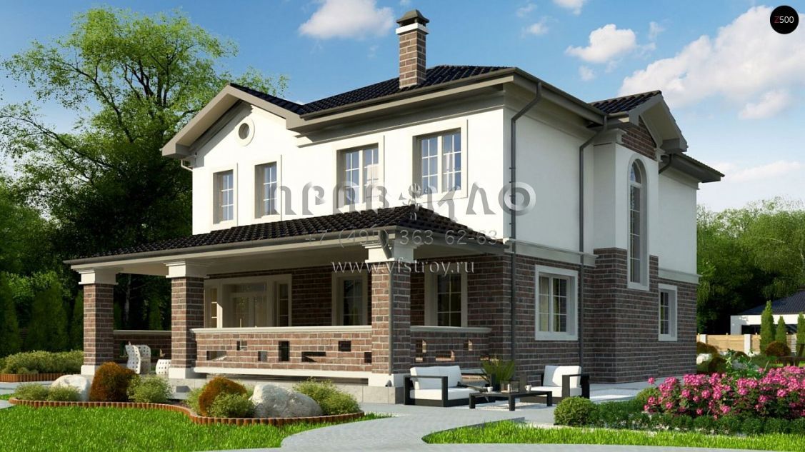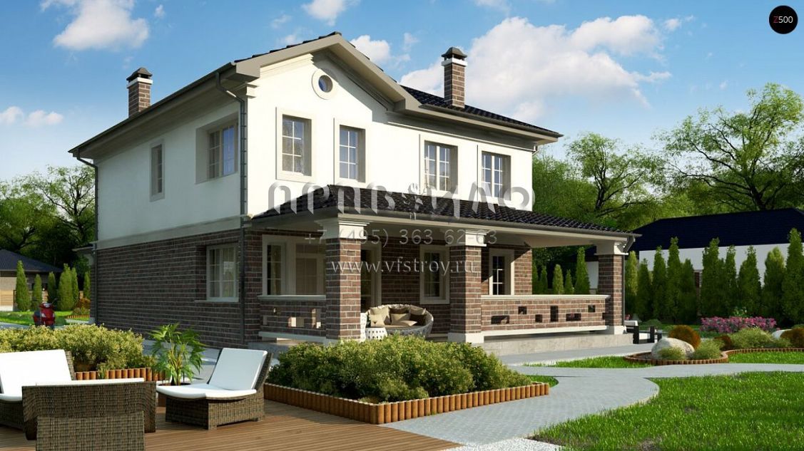 Проект классического двухэтажного дома с просторной крытой террасой S3-210-2 (Zz2 L bg)