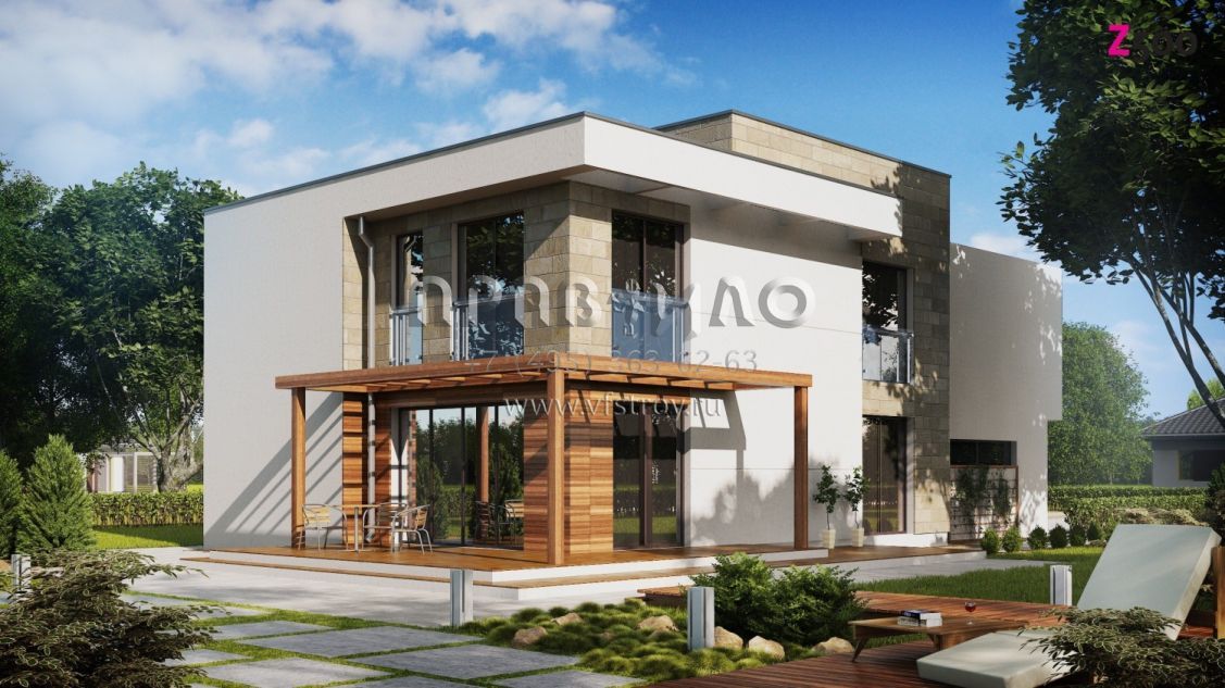 Проект особняка в стиле хай-тек с плоской крышей S3-210 (ZX114)