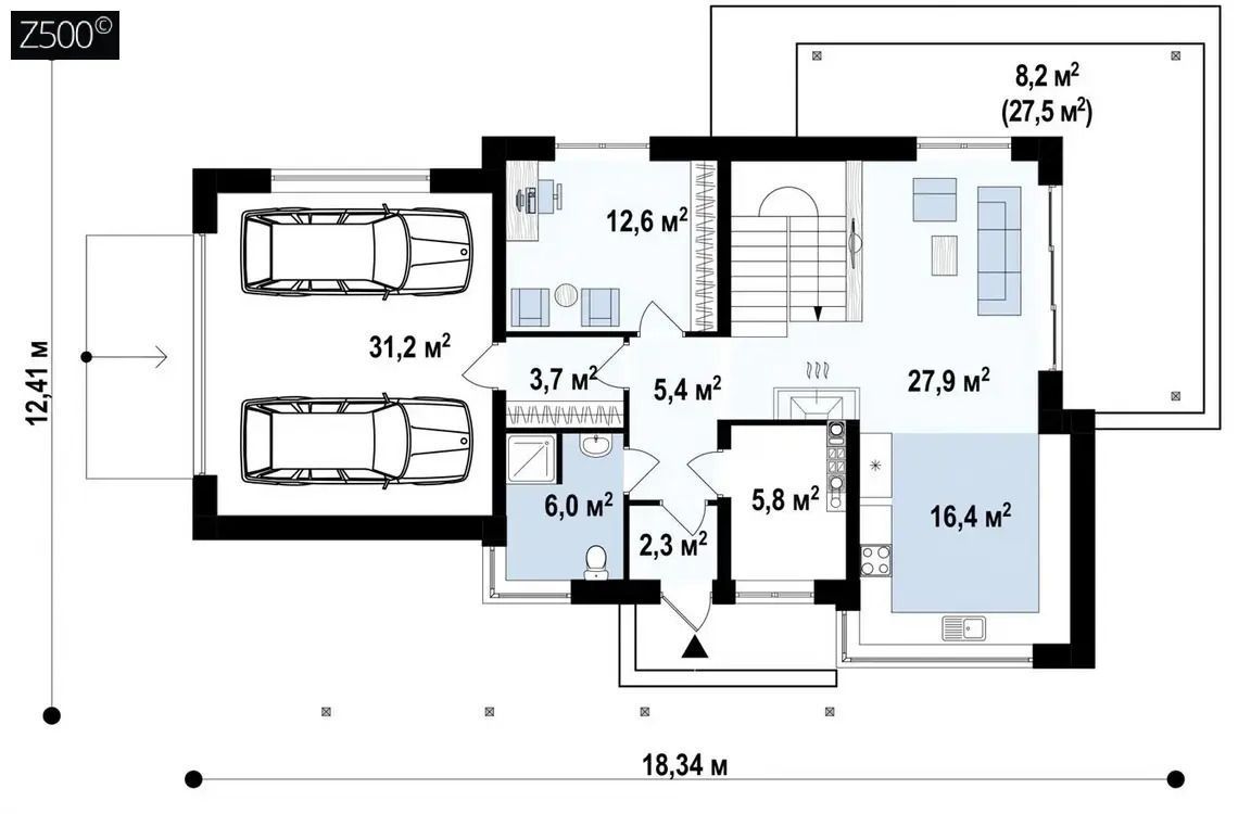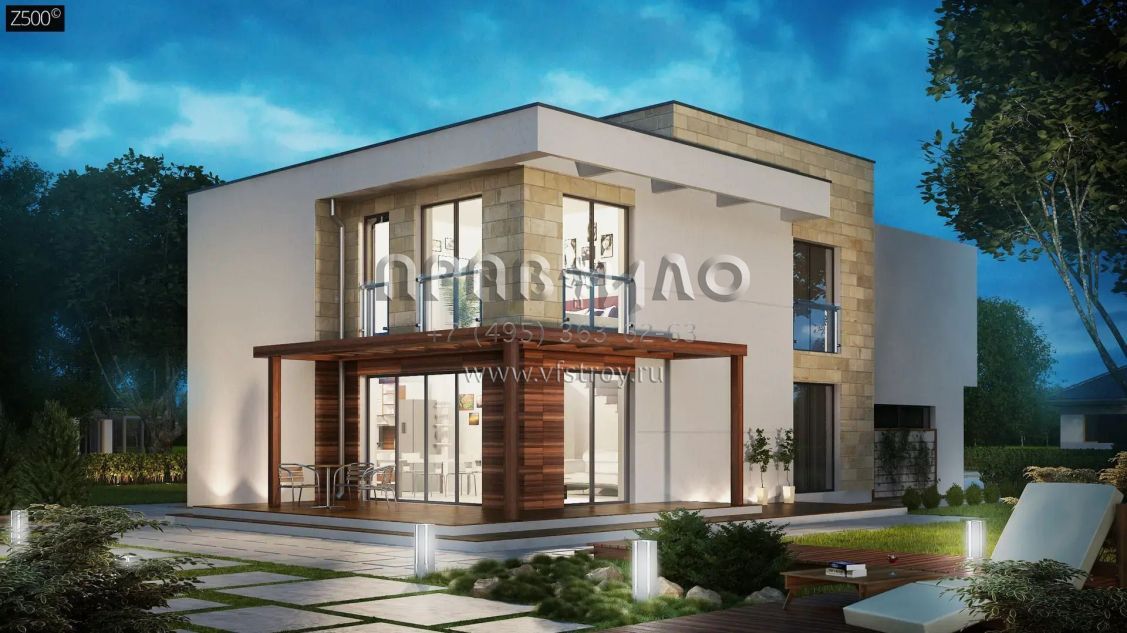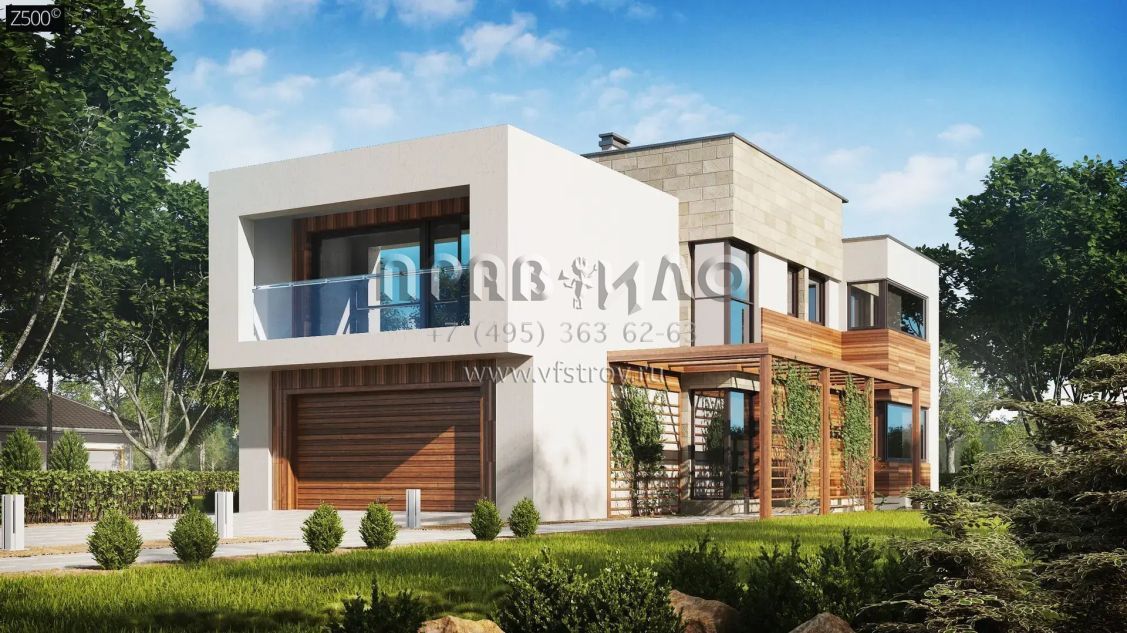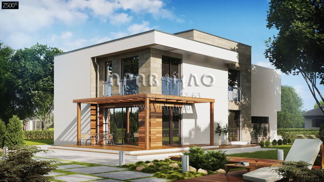 Проект двухэтажного современного дома с плитным перекрытием. S3-211 (Zx114 pk)
