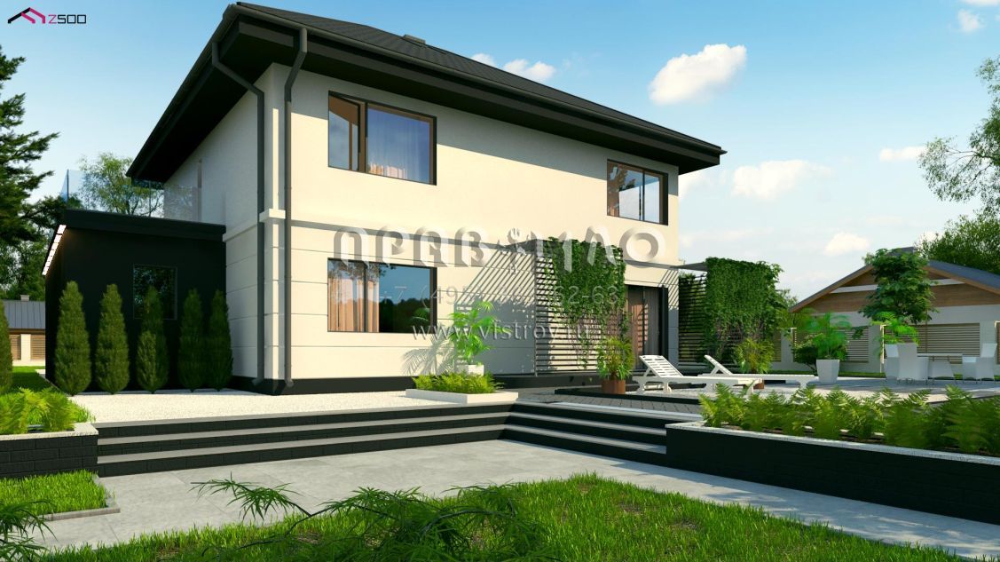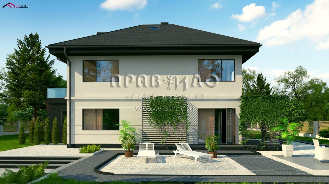 Проект современного двухэтажного дома для большой семьи, с гаражом и с террасой S3-227-2 (Zx10 v1 pk)
