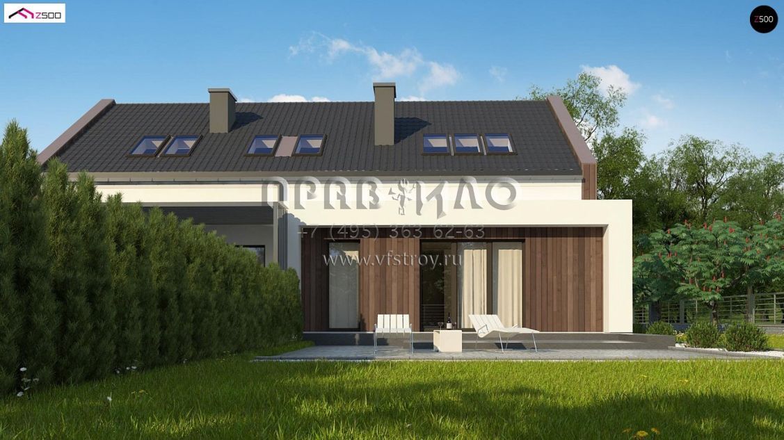 Проект стильного одноэтажного мансардного коттеджа на две семьи S3-229-1 (Z346)
