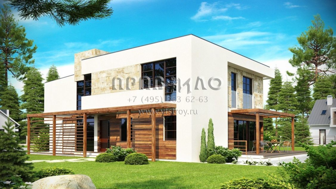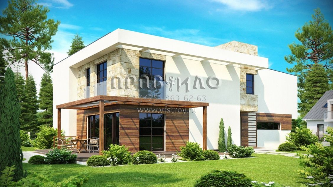 Проект коттеджа в современном стиле с плоской кровлей S3-238 (Zx14)