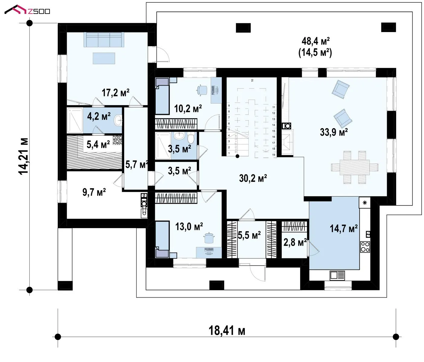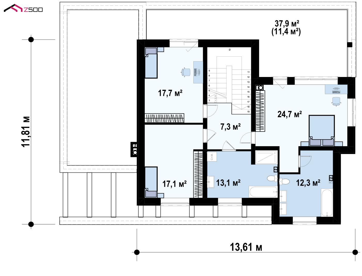 Проект современного многокомнатного загородного дома с сауной S3-252-4 (zx109 v2)