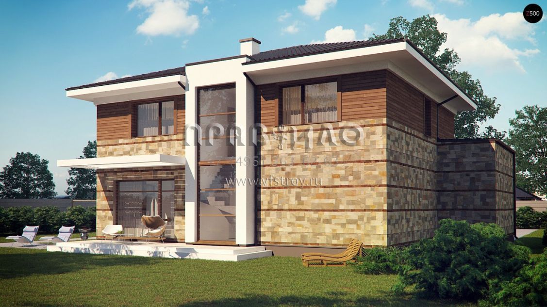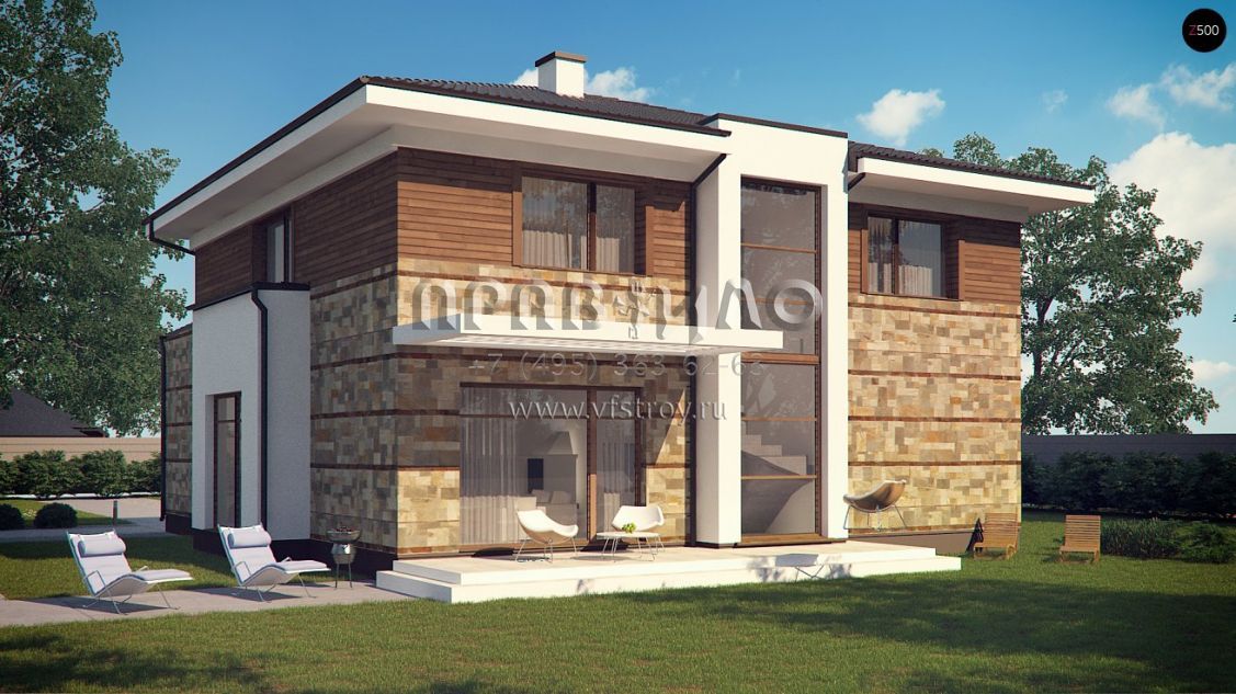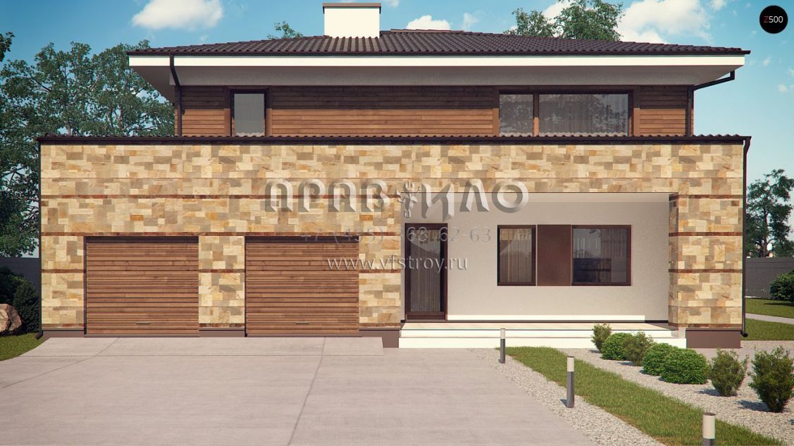 Проект двухэтажного дома с гаражом на два автомобиля и встроенной баней S3-255 (Zx62)