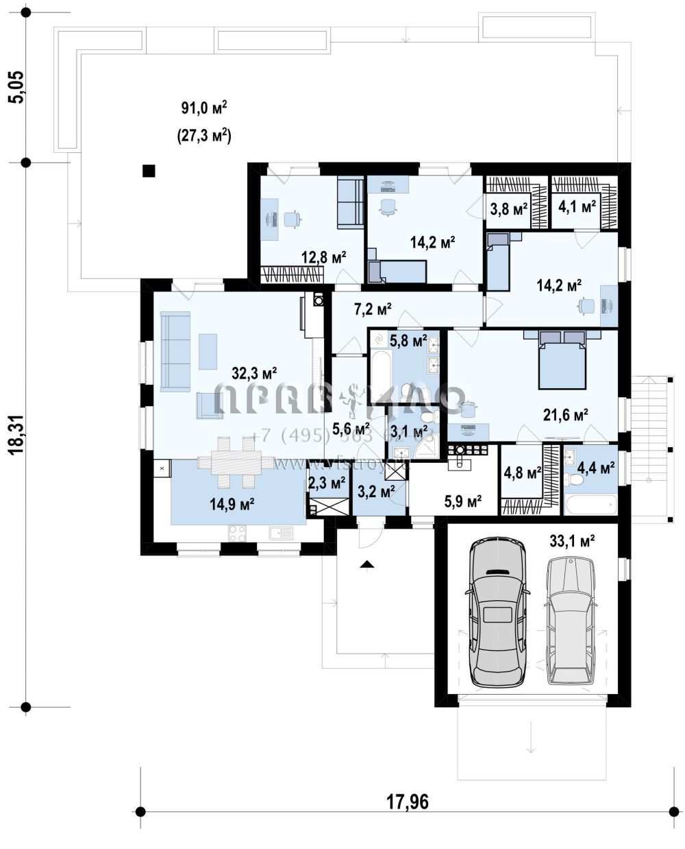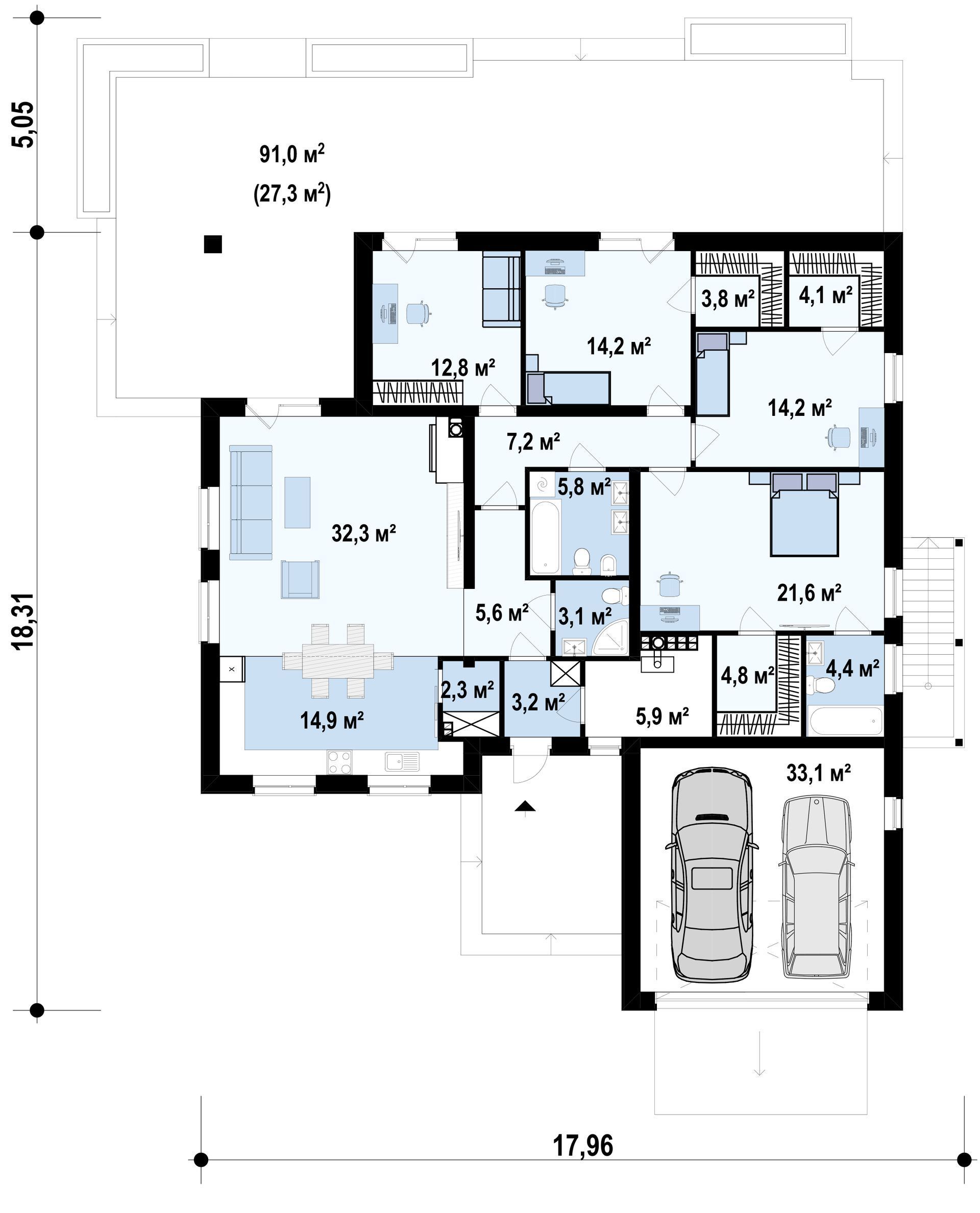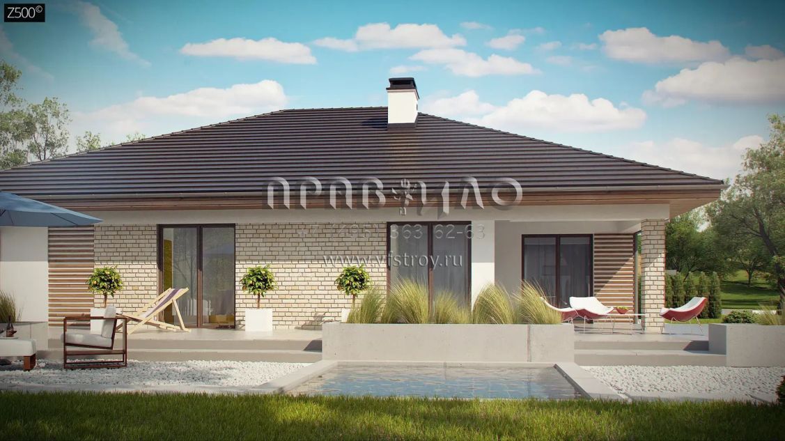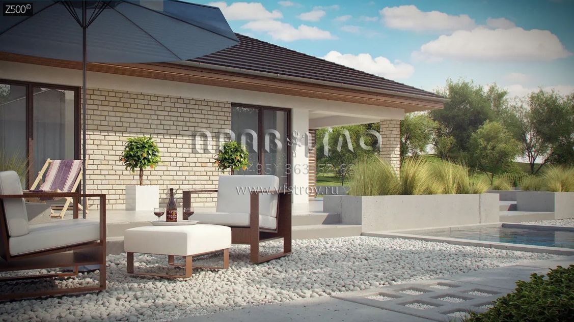 Проект комфортного одноэтажного дома с гаражом и подвалом S3-264 (Z301 P)