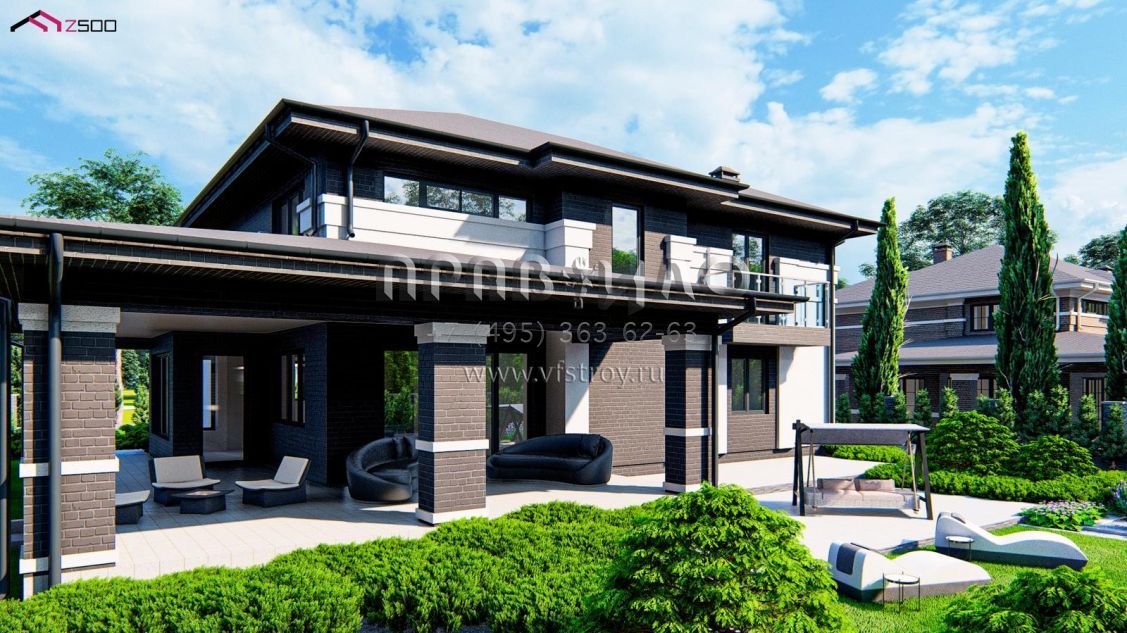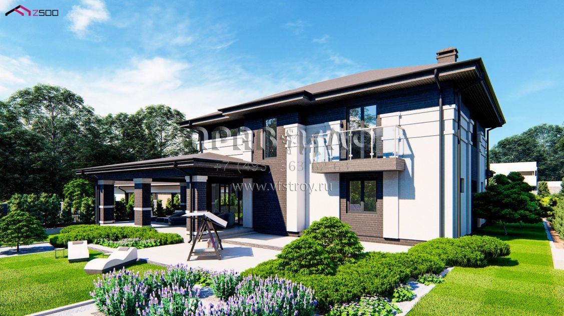 Проект современного двухэтажного дома с гаражом и большой крытой террасой S3-271-2 (Zz15)