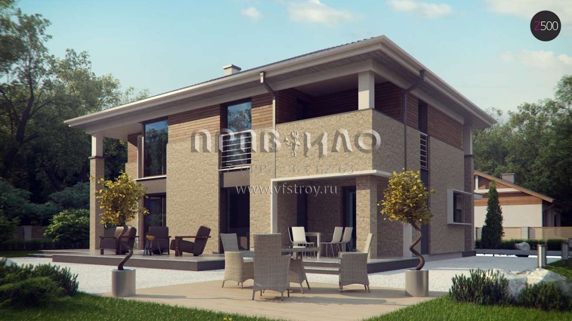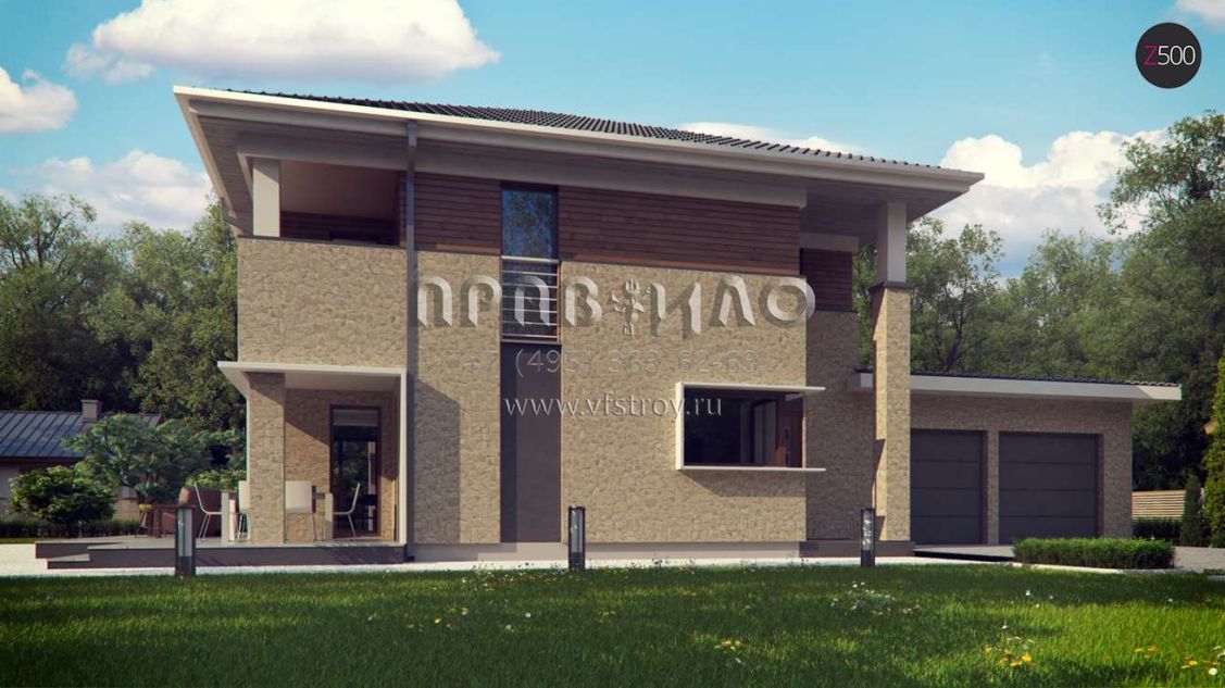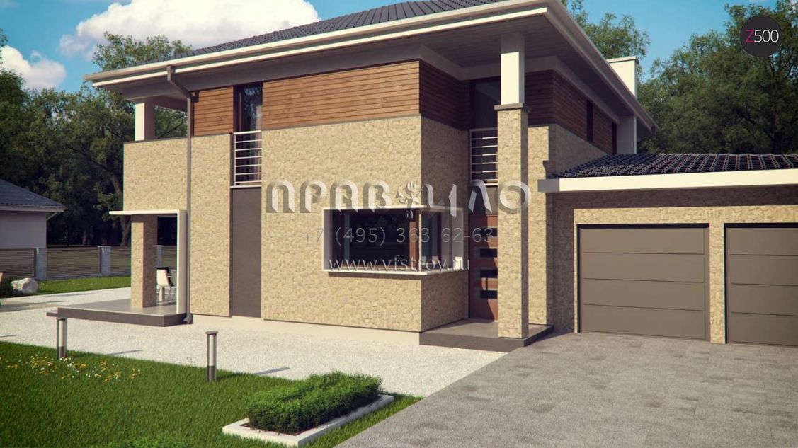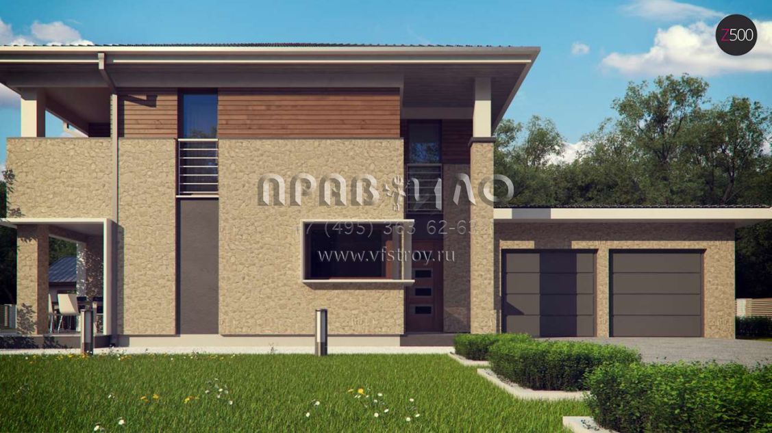 Проект комфортного двухэтажного дома с гаражом на 2 авто S3-281 (Zx122)