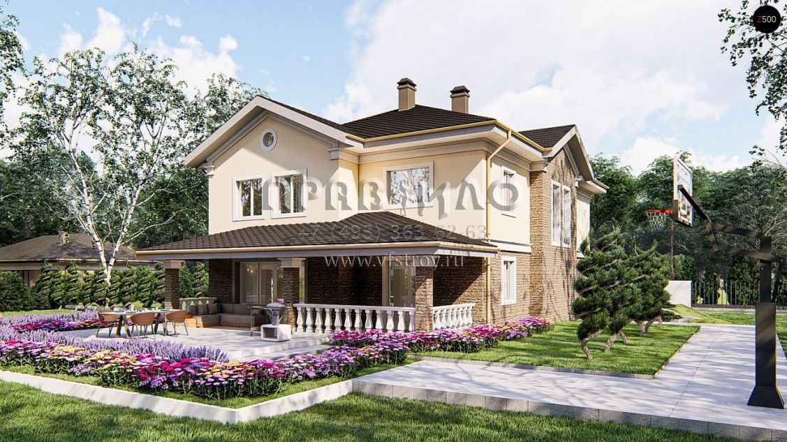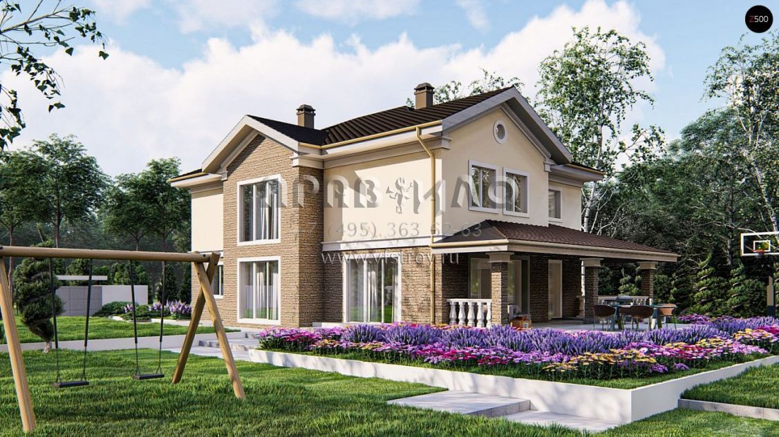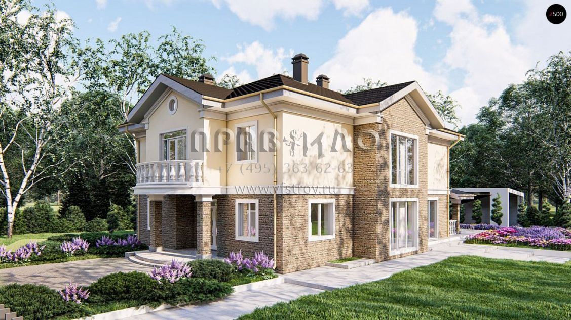 Проект элегантного классического двухэтажного дома с балконом и камином S3-285 (Zz12)