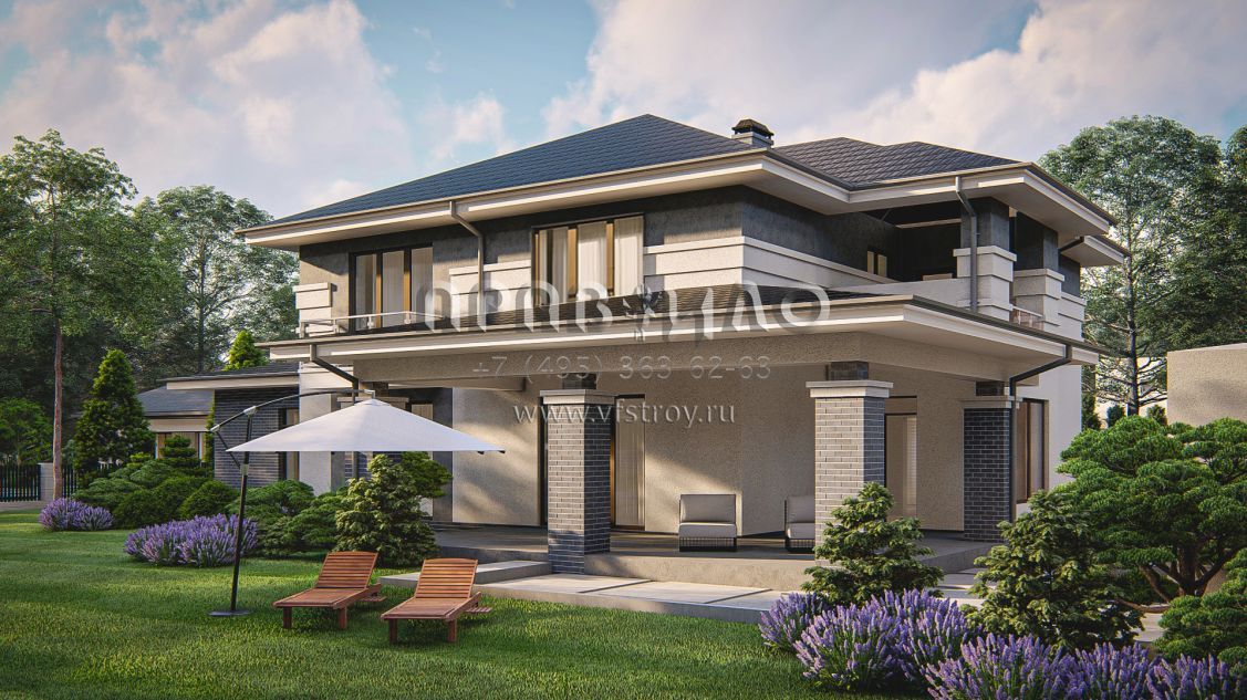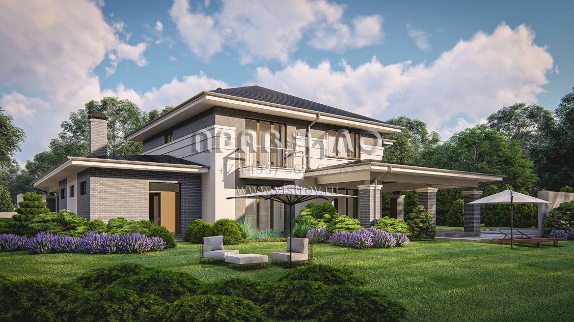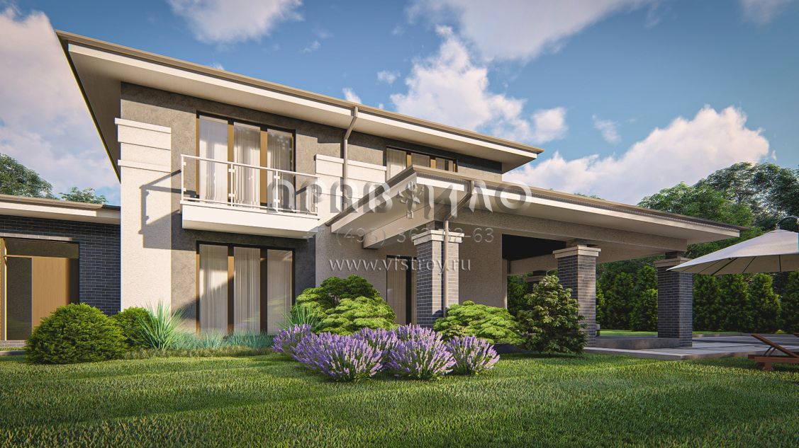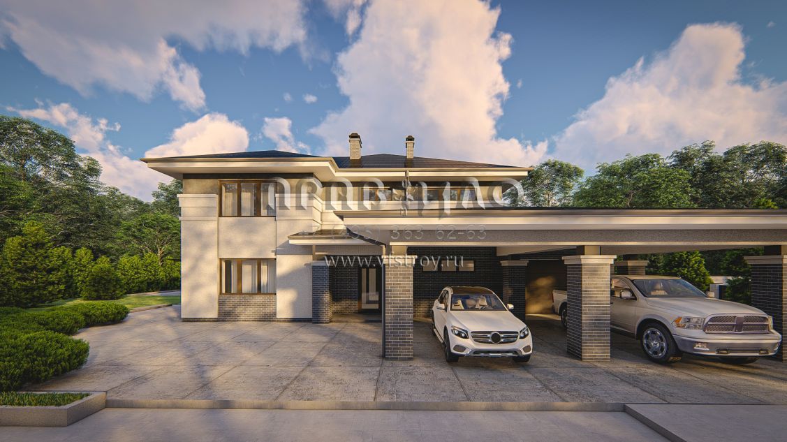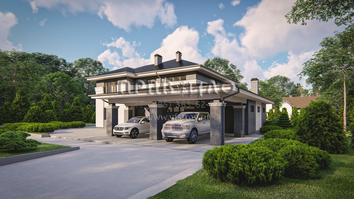 Проект cовременного двухэтажного дома с гаражом для двух машин S3-288 (Zz14)