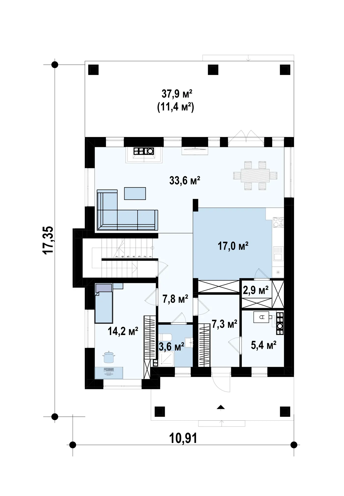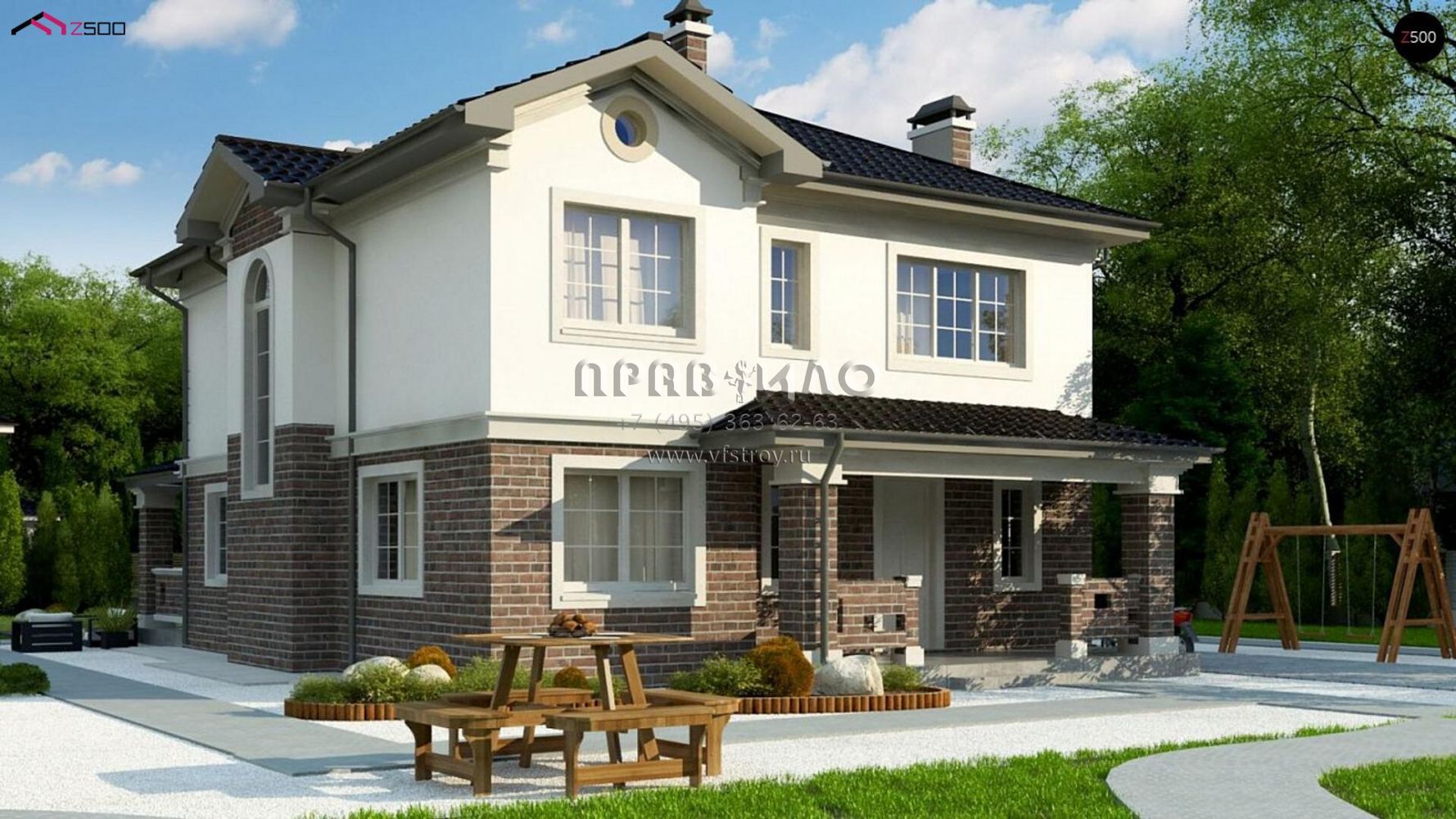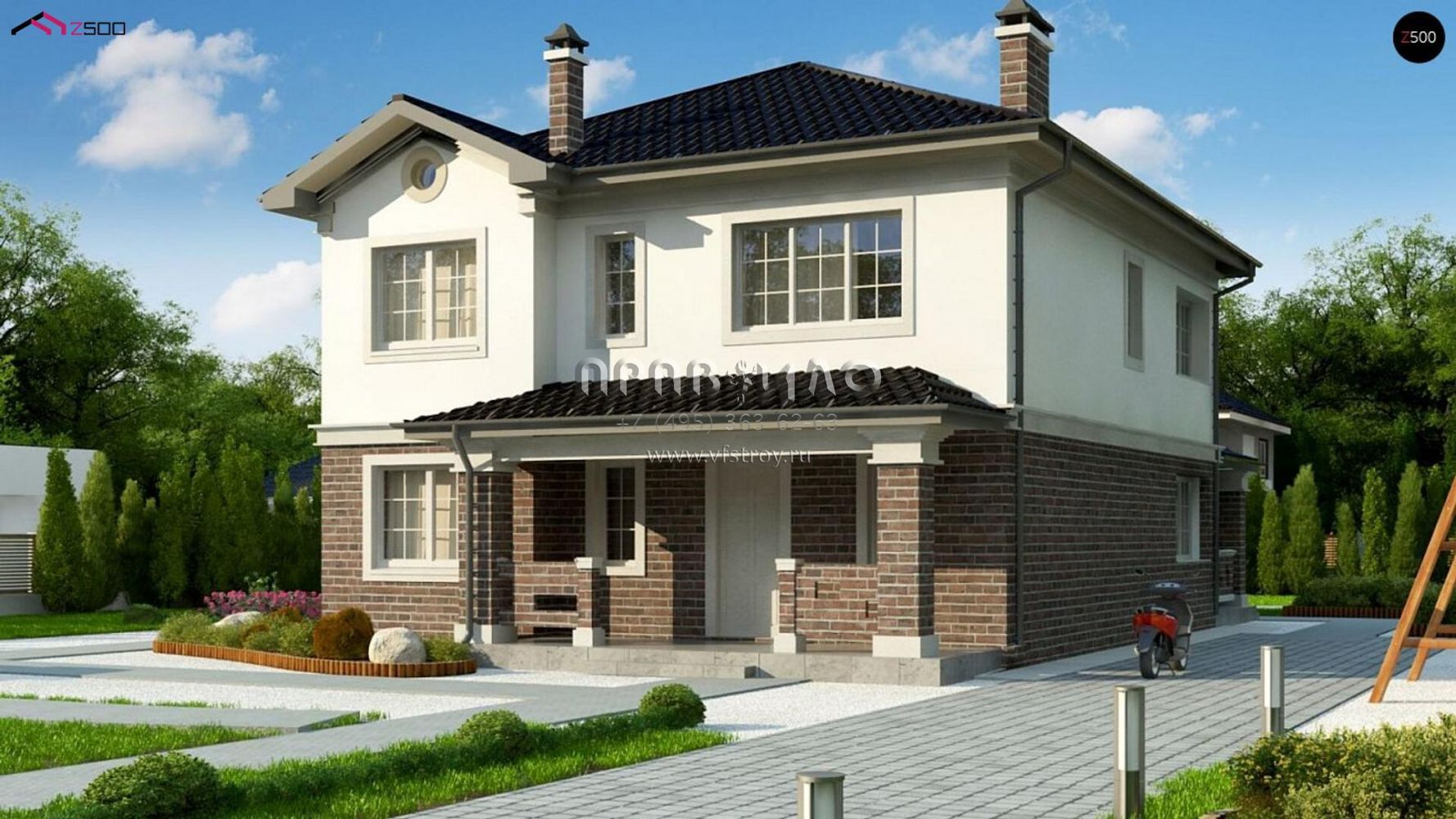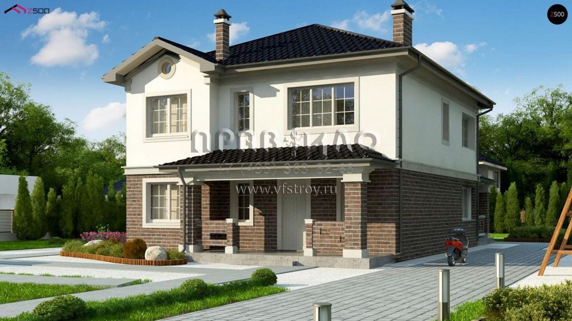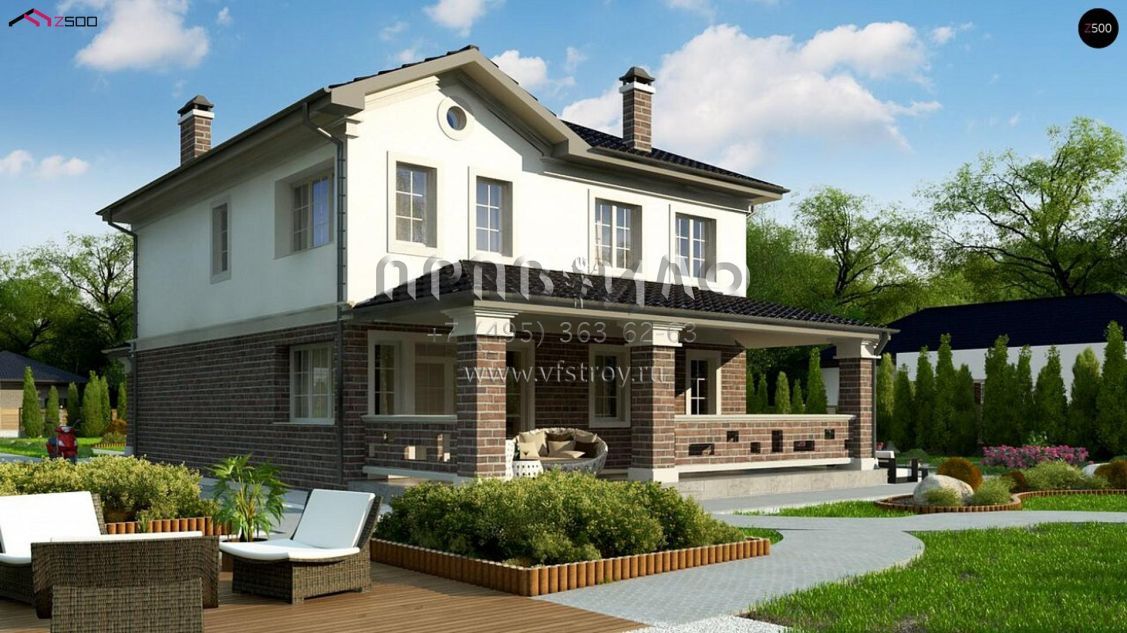 Проект шестикомнатного двухэтажного дома с большой террасой и с подвалом S3-292(Zz2 L bg p)