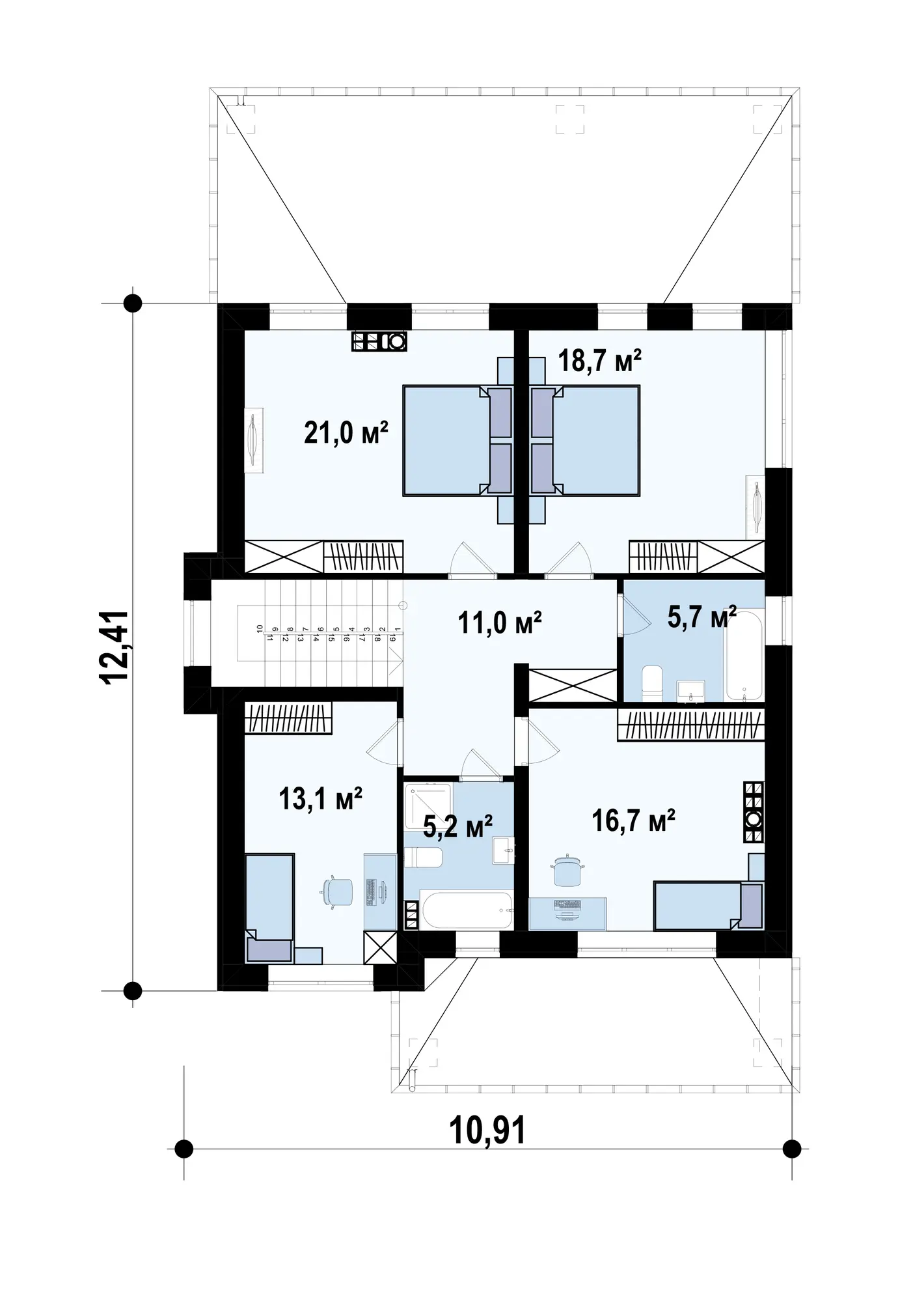 | Возможный материал кровли | металлочерепица, гибкая черепица, керамическая черепица, композитная черепица, цементно-песчаная черепица, фальцевая кровля |